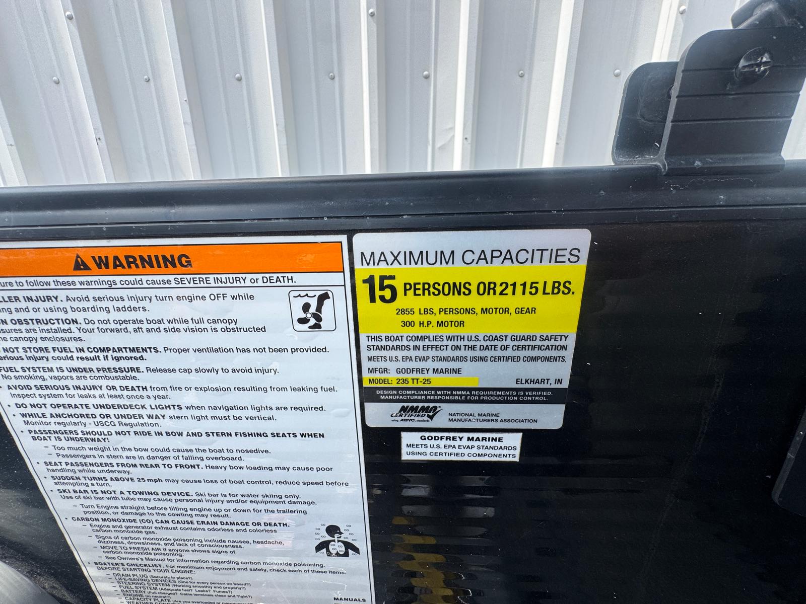 The Godfrey MC 235 SB is designed with both comfort and functionality in mind. Its 24-foot length provides ample space for passengers to spread out and enjoy the ride. The open deck layout is perfect for socializing, sunbathing, or setting up for a picnic on the water. The pontoon’s sturdy construction and quality materials ensure durability and longevity, so you can enjoy countless adventures with peace of mind.Special features of the Godfrey MC 235 SB enhance the overall boating experience. The seating is plush and ergonomically designed, offering both support and relaxation for long days on the water. The helm is thoughtfully arranged, giving the captain easy access to controls and excellent visibility. The pontoon’s design also allows for easy boarding and disembarking, making it accessible for guests of all ages.