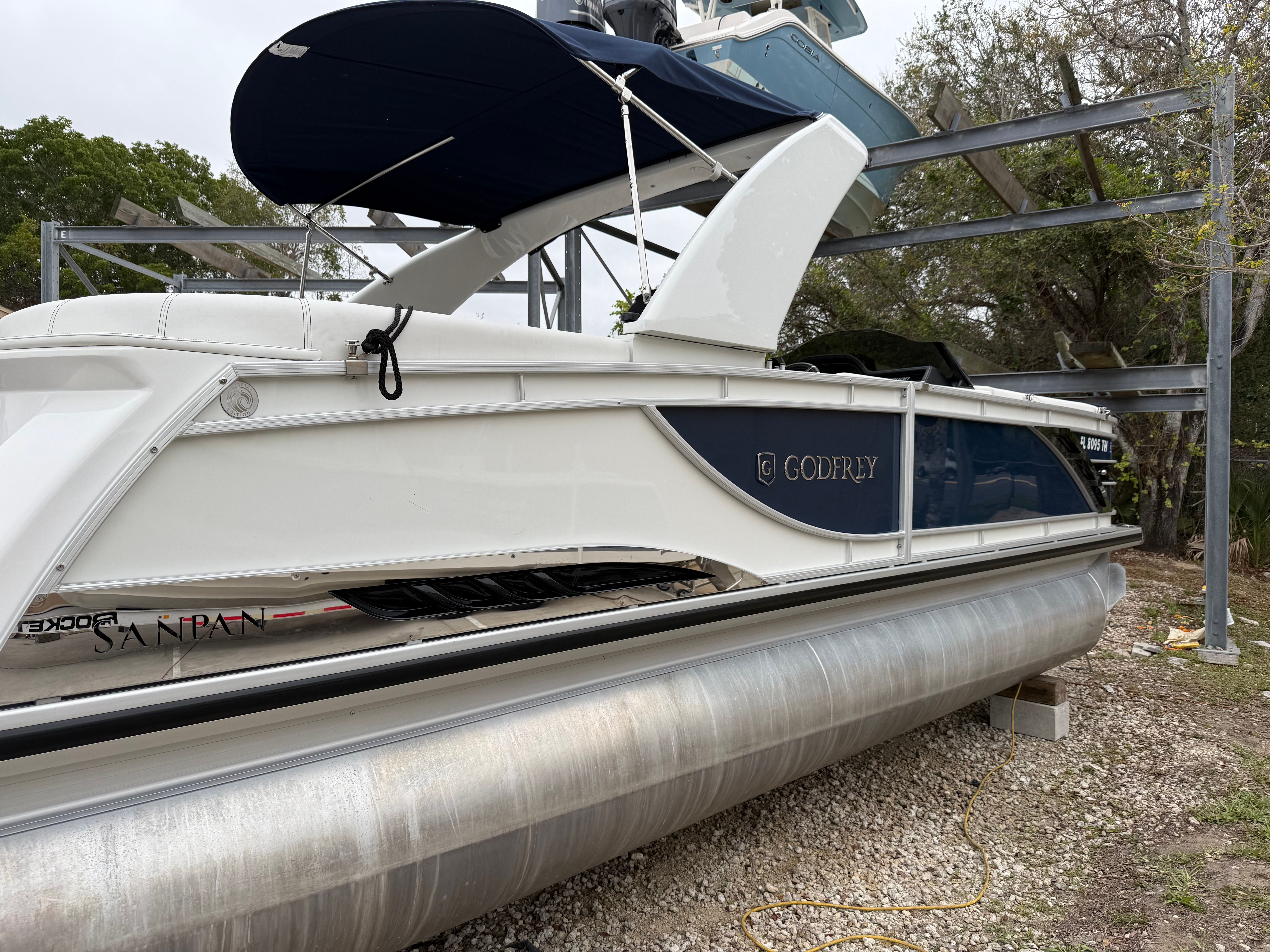 Owning a Godfrey SP 2500 SBC pontoon boat opens up a world of fun and relaxation on the water. The spacious deck allows for comfortable gatherings, making it perfect for hosting family outings, parties, or casual get-togethers with friends. The plush seating and open layout create a welcoming environment where everyone can unwind and enjoy the scenery.The powerful 300-horsepower engine ensures that every trip is filled with excitement, whether you are cruising at high speeds or exploring tranquil coves. The pontoon’s stability and smooth ride make it an excellent choice for boaters of all experience levels, providing peace of mind and confidence on the water.