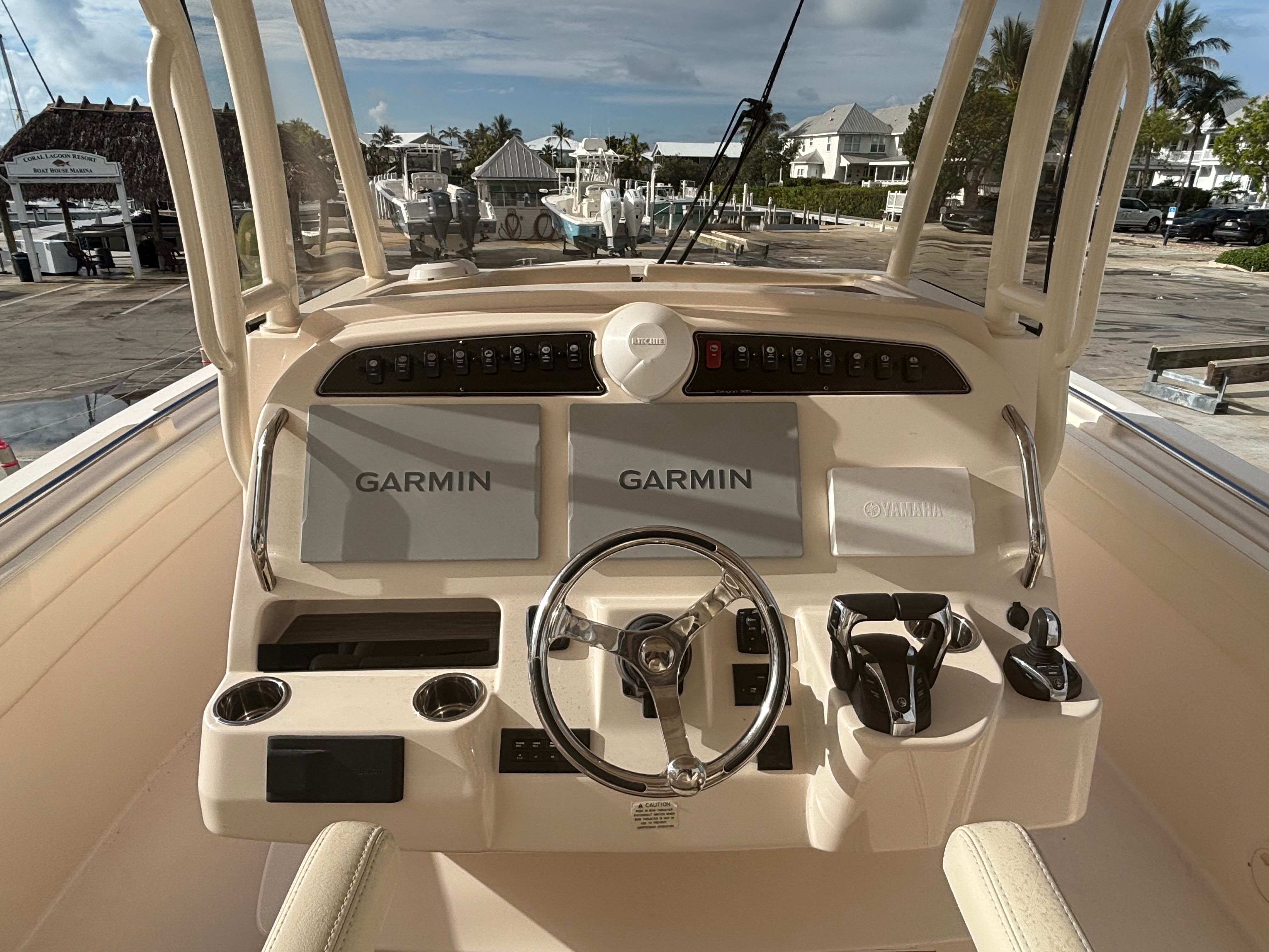 The 2021 Grady-White Canyon 326 is packed with features that cater to both serious anglers and those seeking leisure and relaxation. The spacious Center Console layout maximizes deck space, providing plenty of room for casting lines, moving around the boat, or simply soaking up the sun. The thoughtfully designed helm offers excellent visibility and ergonomic controls, ensuring a comfortable and intuitive driving experience.This Grady-White boat for sale is renowned for its high-quality construction and attention to detail. The Canyon 326 features a durable, well-finished hull and deck, with premium materials used throughout. The Center Console design includes ample storage compartments for gear, tackle, and personal items, keeping the deck clutter-free and organized.