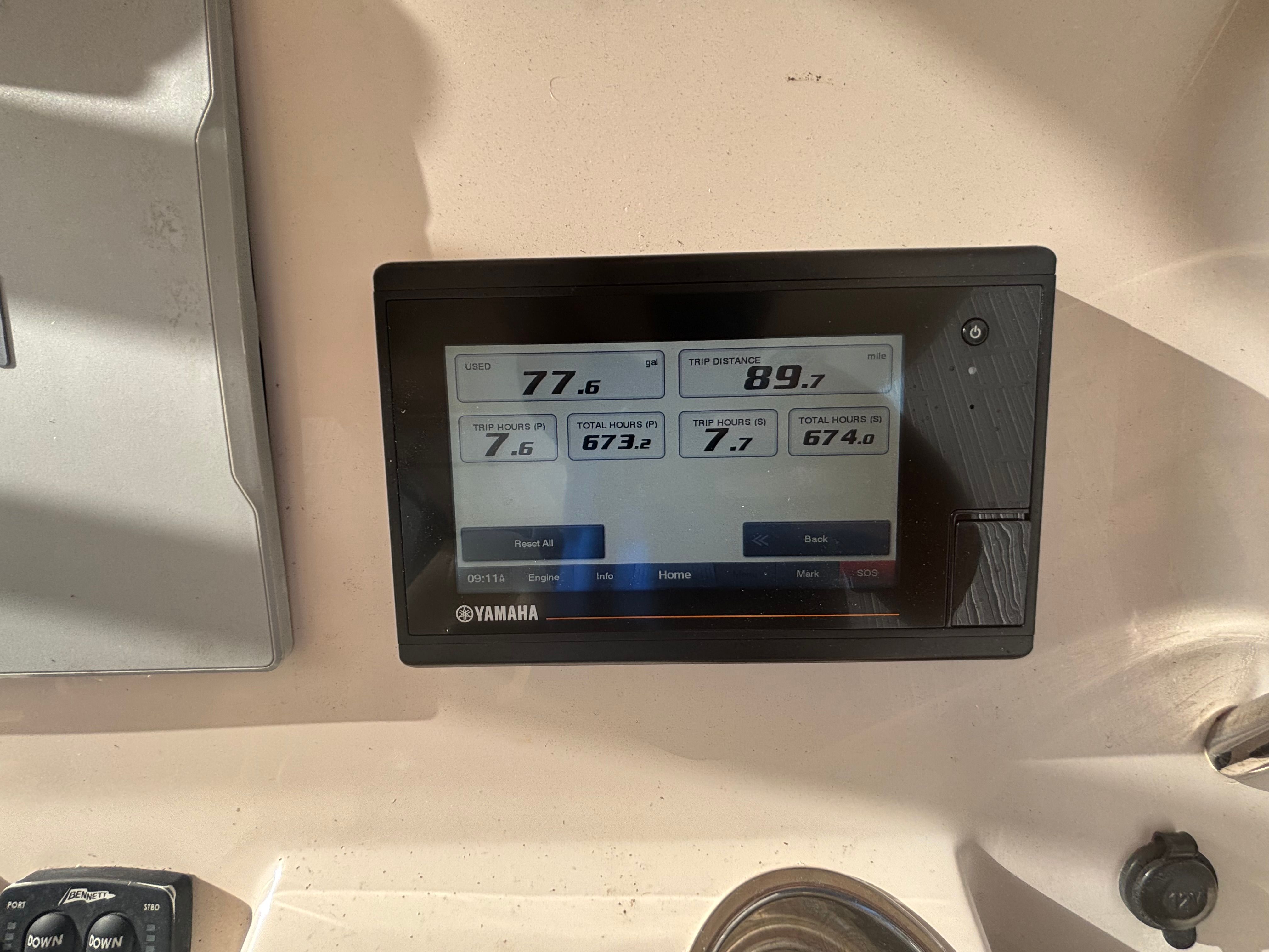 Equipped with twin engines delivering a combined 600 horsepower, the Grady-White Canyon 326 is engineered for exhilarating performance. With 675 engine hours, these reliable powerplants offer the perfect balance of speed, efficiency, and durability. Whether you are heading offshore for a day of fishing or cruising along the coastline with family and friends, this Center Console boat for sale provides the power and responsiveness you need for a smooth and enjoyable ride.The twin-engine setup not only ensures impressive acceleration and top-end speed, but also enhances maneuverability and control, making docking and navigating tight spaces a breeze. The Canyon 326’s hull design further contributes to its exceptional handling, allowing you to tackle a variety of water conditions with confidence.