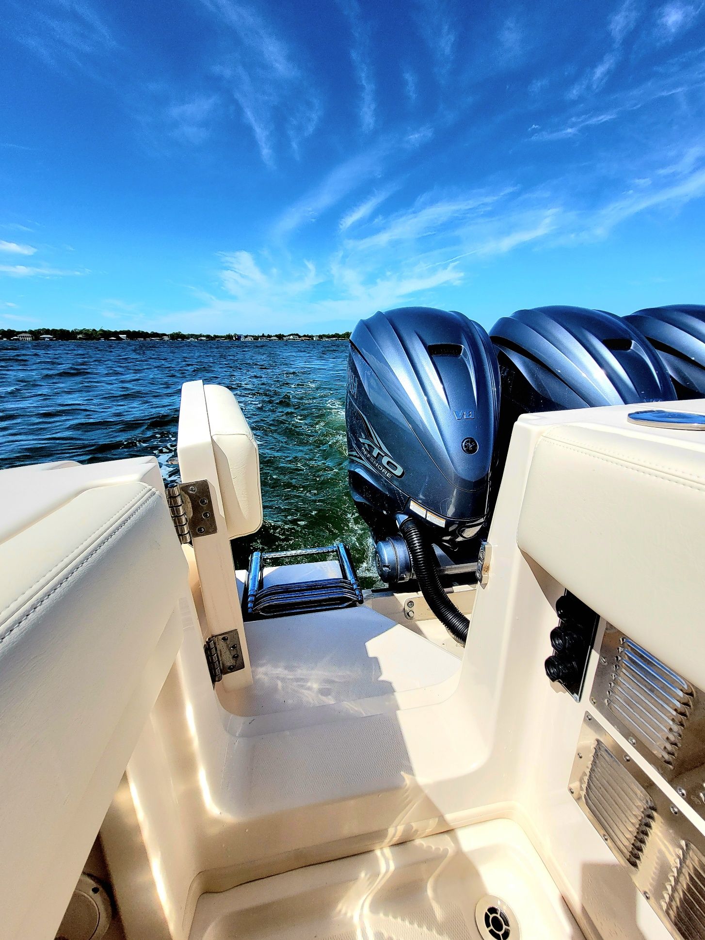 This is a superb example of the classic Grady White 370 Express. This example has been meticulously cared for by its one owner and shows extremely well. Finished in beautiful Ocean Mist Blue and powered by the reliable triple Yamaha F425XTO with Yamaha Warranty thru 10.06.27. Equipped with Helm master joystick with Stay Point and Fish point position hold makes docking and fishing effortless!