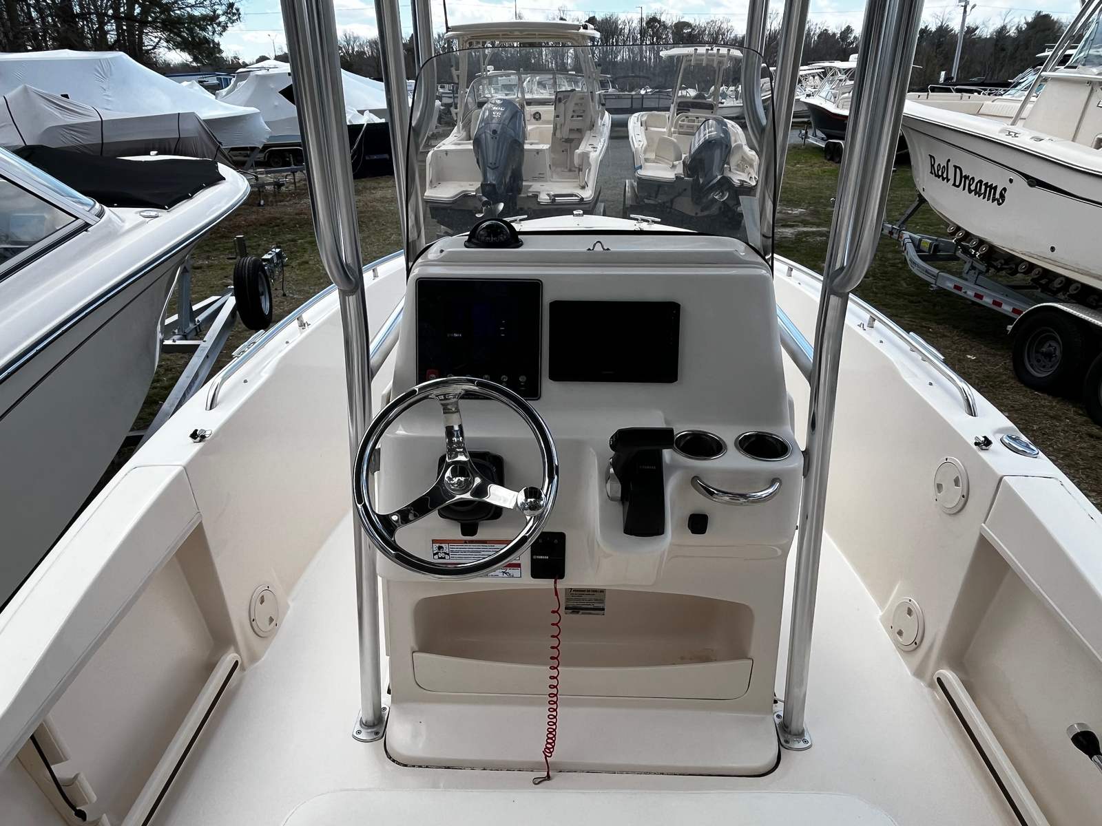 - Custom Canvas T-Top w/ Anchor Light & Aft Rocket Launcher – Provides shade, added rod storage, and improved visibility.