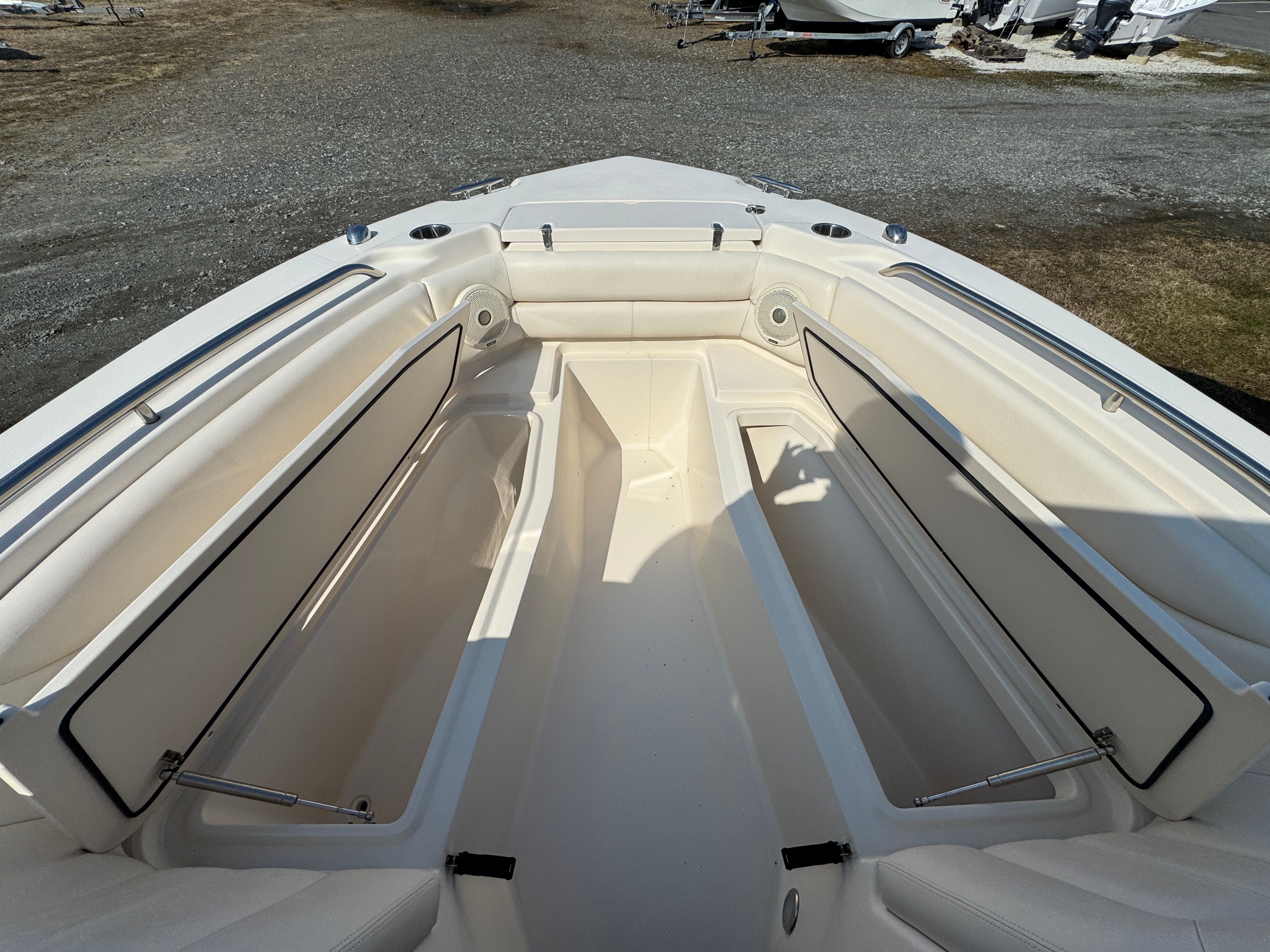 Practicality is at the heart of the Grady-White Freedom 255’s design. The ample storage compartments throughout the boat make it easy to keep your gear organized and out of the way, whether you’re bringing along fishing equipment, water toys, or picnic supplies. The Dual Console configuration offers excellent protection from wind and spray, ensuring a comfortable ride in a variety of conditions.Docking and maneuvering are made simple thanks to the responsive twin engines, allowing you to navigate marinas and tight spaces with confidence. The boat’s efficient design also contributes to better fuel economy, so you can spend more time enjoying the water and less time worrying about refueling.