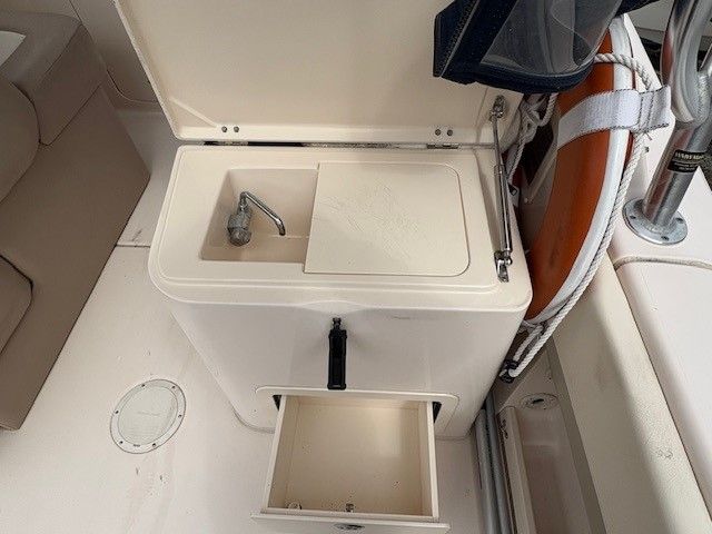 Practicality is at the heart of the Grady-White Freedom 275. The boat’s size makes it easy to dock and maneuver, even in tighter marinas or busy waterways. Thoughtful storage solutions keep your essentials organized and out of the way, ensuring a clutter-free environment for both relaxation and adventure.The dual engines not only provide impressive power but also contribute to efficient fuel consumption, helping you make the most of every outing without worrying about excessive operating costs. The Freedom 275’s robust construction and reliable systems mean less time spent on maintenance and more time enjoying the water.