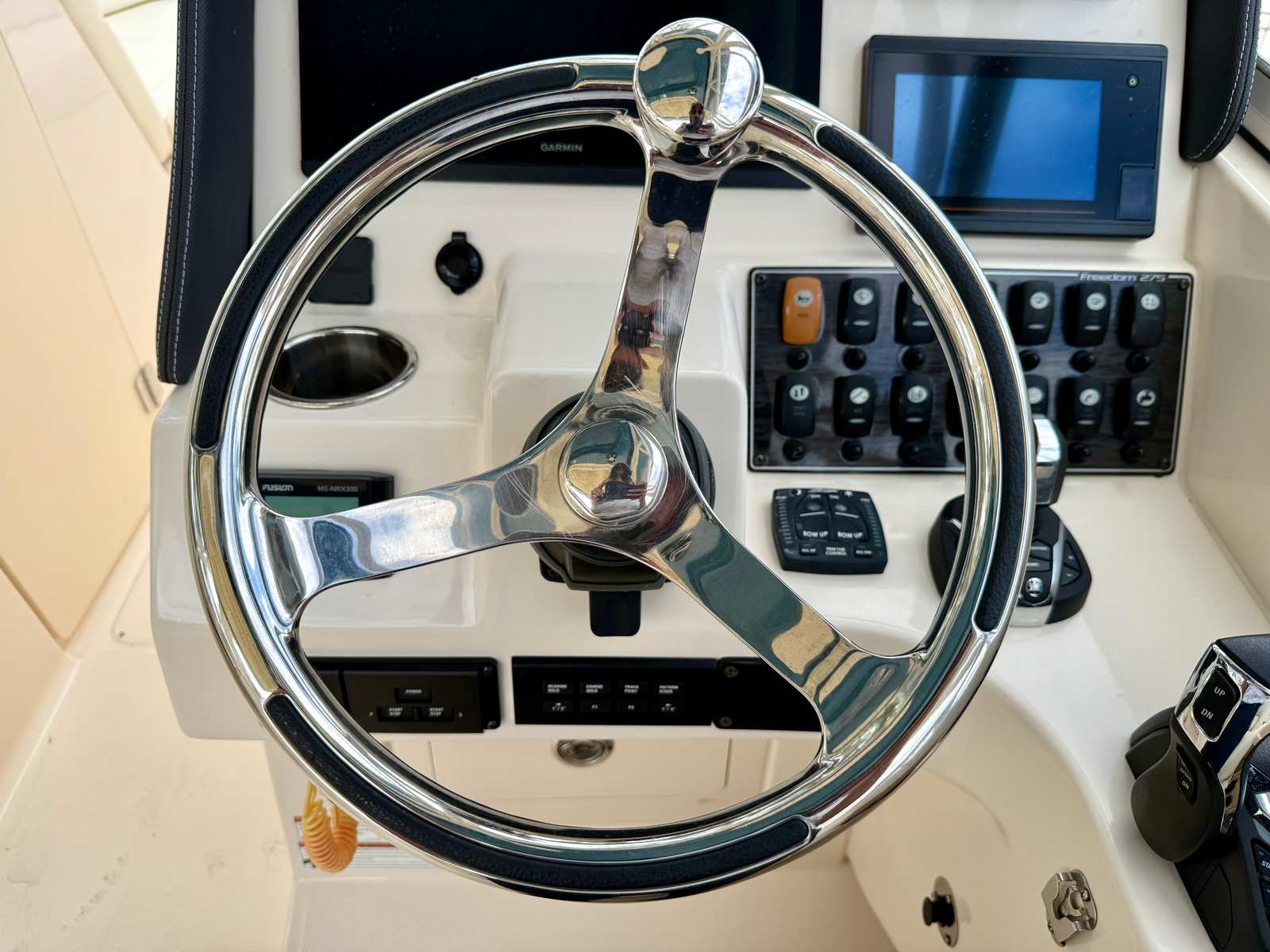The 2022 Grady-White Freedom 275 shines in a variety of scenarios. For families, it offers a safe and comfortable platform for cruising, swimming, and picnicking on the water. Anglers will appreciate the spacious cockpit and easy access to all areas of the boat, making it simple to chase after the catch of the day. If you love watersports, the powerful twin engines provide the speed and control needed for tubing, wakeboarding, or skiing.This dual console boat is also perfect for those who enjoy entertaining. The open layout and comfortable seating make it easy to host gatherings, while the quality construction and stylish design ensure you’ll turn heads wherever you go. Whether you’re exploring new waterways, relaxing at anchor, or heading out for a weekend getaway, the Freedom 275 is ready to make every outing memorable.