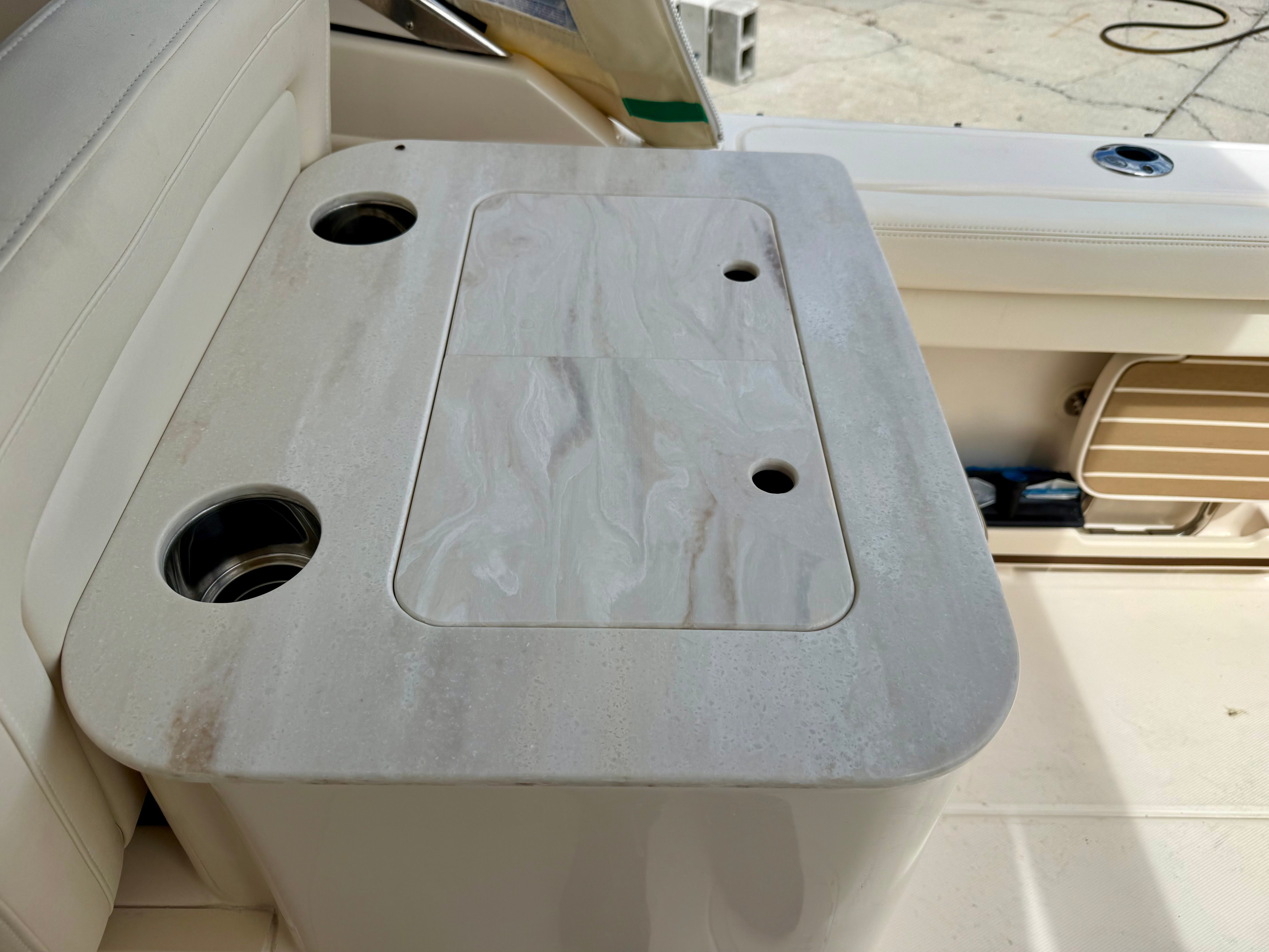 Powering the Grady-White Freedom 275 are twin engines delivering a combined 400 horsepower. This dual engine setup ensures impressive acceleration, smooth cruising, and the confidence to tackle a variety of water conditions. Whether you’re heading offshore for a day of fishing or cruising along the coastline with family and friends, the Freedom 275’s performance capabilities will not disappoint. With only 93 engine hours, these engines have plenty of life left, offering reliable power and efficiency for years to come. The responsive handling and stability of this dual console boat make it a pleasure to operate, even for those new to boating.