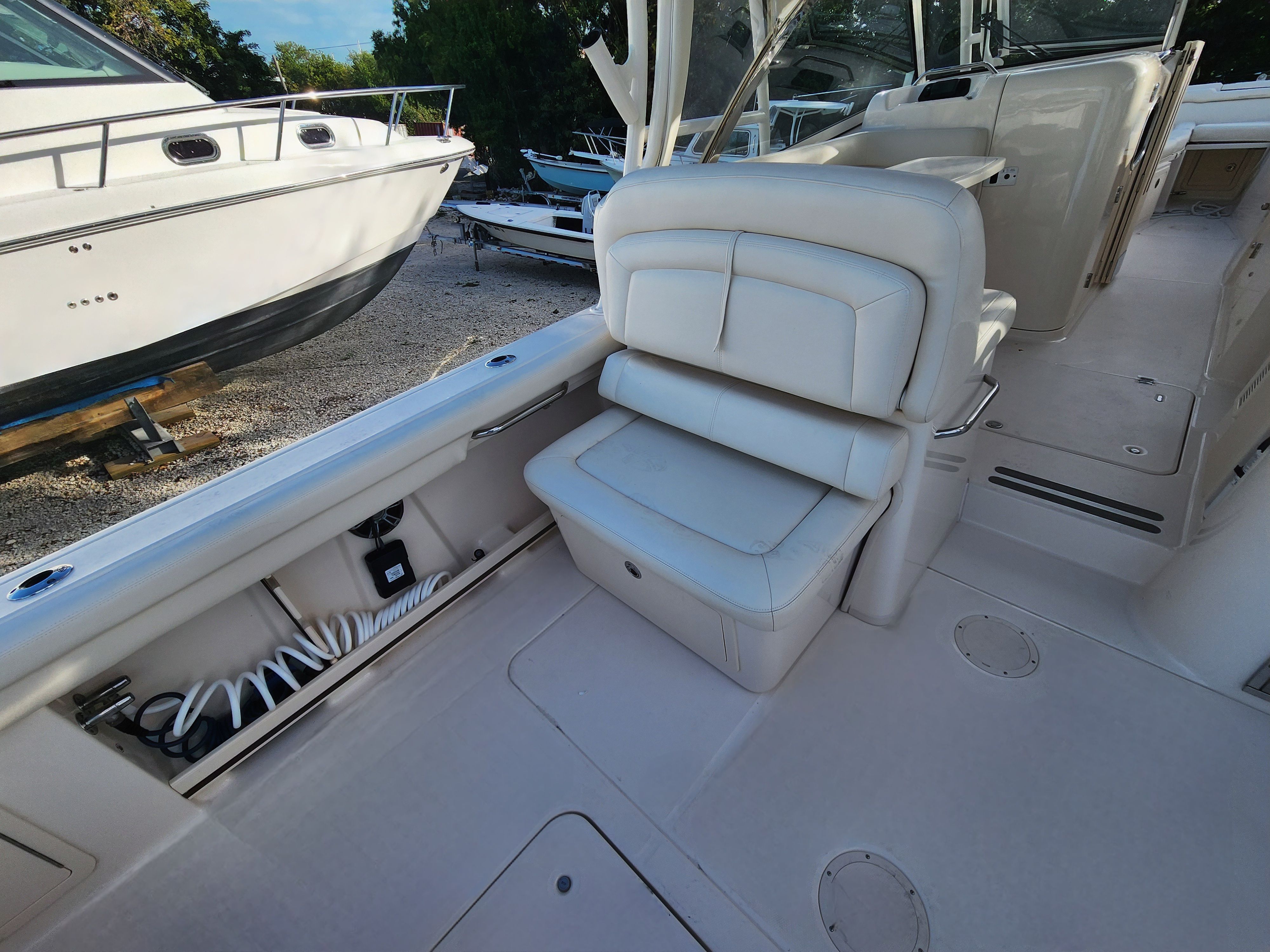 Owning a Grady-White Freedom 335 means enjoying the best of both worlds: thrilling performance and unparalleled comfort. The Dual Console configuration is perfect for socializing, offering open spaces for conversation and relaxation. The plush seating and spacious deck make it easy to host family gatherings, celebrate special occasions, or simply enjoy a peaceful day on the water. The boat’s robust engines provide the power needed for water sports and fast cruising, while the stable hull design ensures a smooth and safe ride. With its combination of luxury and practicality, this Grady-White boat for sale is an investment in fun, adventure, and lasting memories.