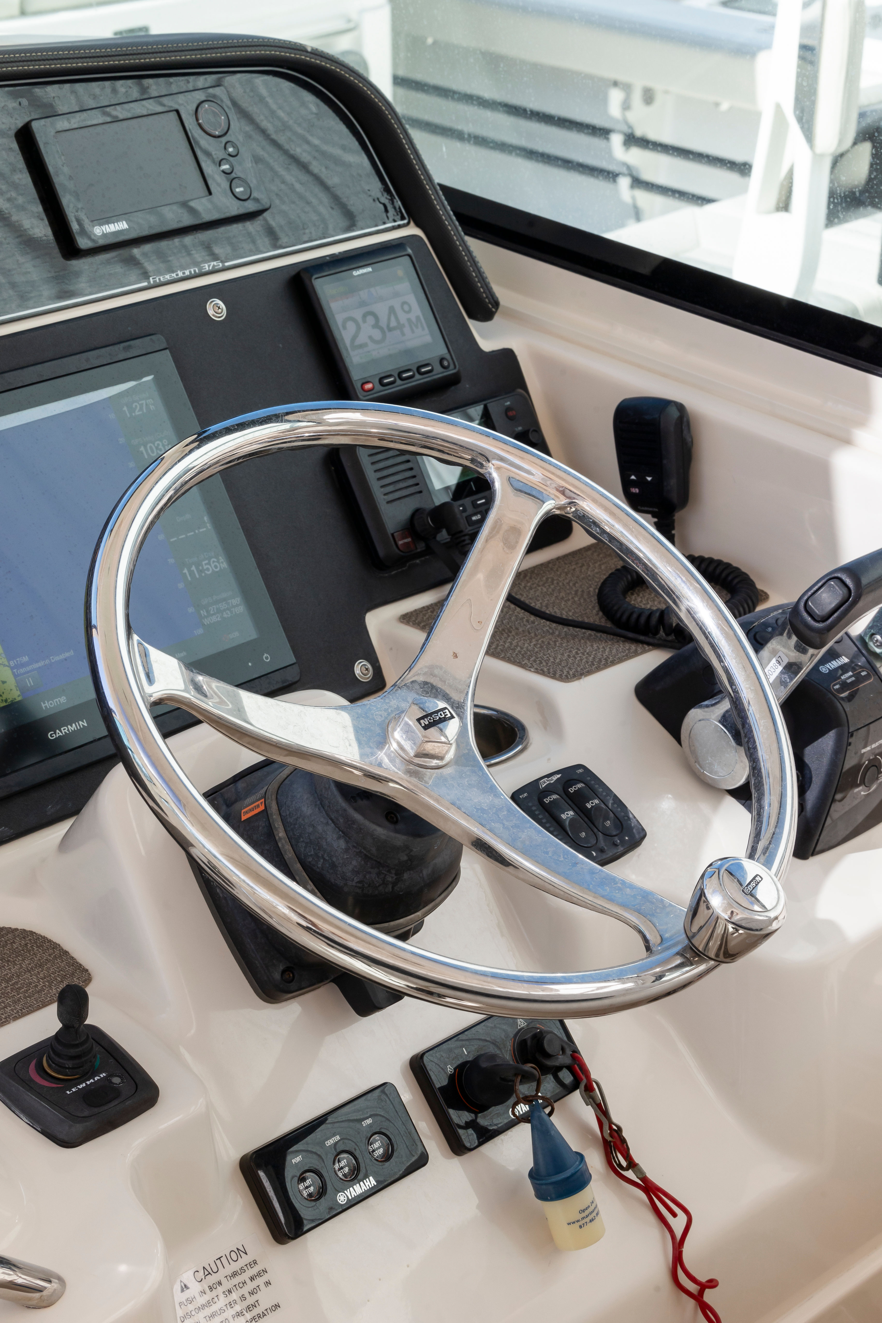 The Grady-White Freedom 375 shines in a variety of scenarios, making it the ideal choice for boaters with diverse interests. For families, the spacious layout and comfortable seating provide the perfect setting for day trips, picnics, and water sports. The boat’s stability and safety features ensure a worry-free experience, even with young children on board.Fishing enthusiasts will appreciate the Freedom 375’s ample deck space and thoughtful storage solutions, making it easy to pursue your passion without compromise. The boat’s powerful engines and advanced hull design allow you to reach prime fishing spots quickly and efficiently.For those seeking luxury getaways, the Freedom 375 offers all the comforts of home, with plenty of room to relax, unwind, and enjoy the beauty of the open water. Whether you are hosting a sunset cruise or embarking on a weekend adventure, this Grady-White boat for sale is your ticket to unforgettable experiences.