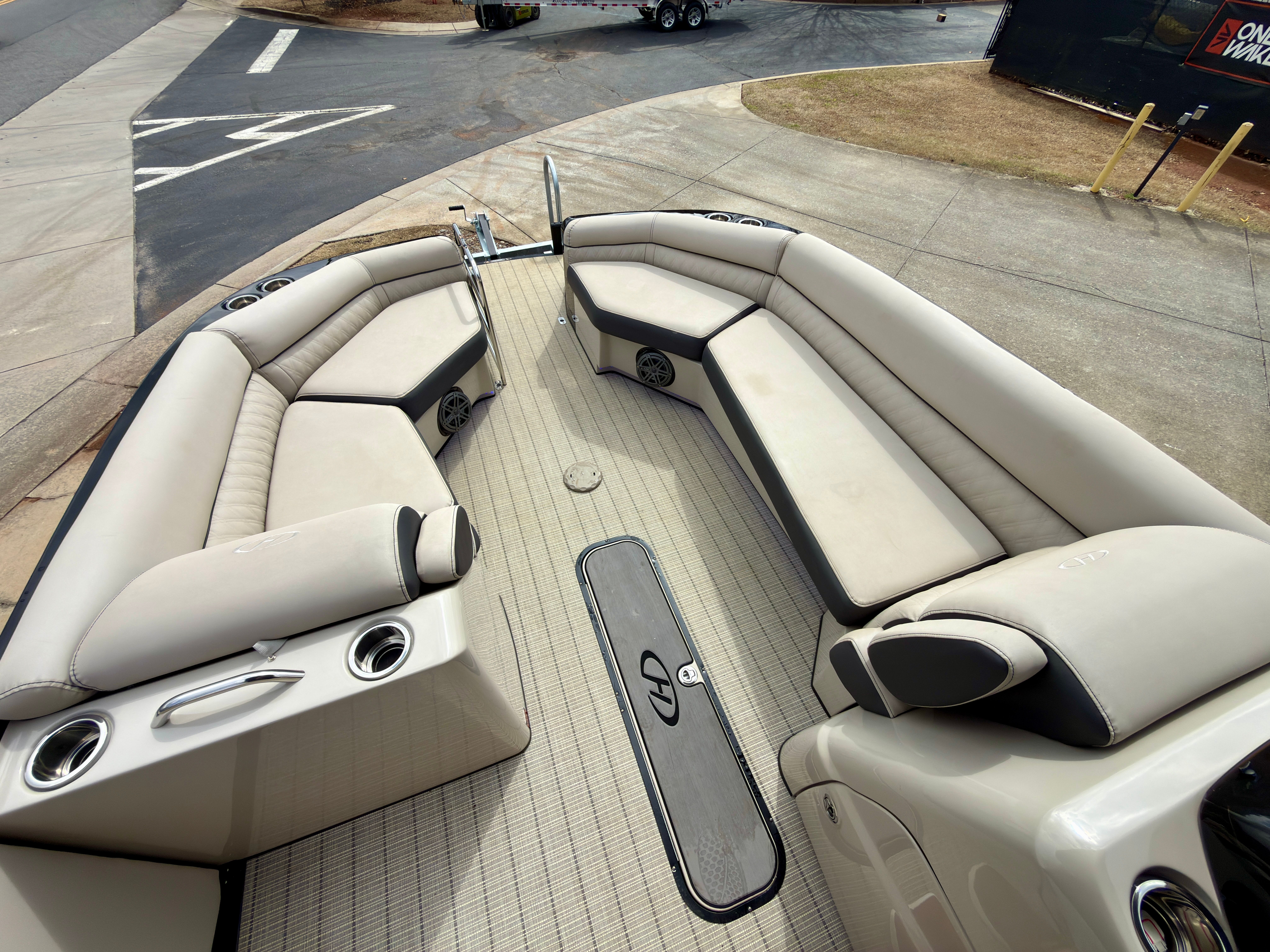 In summary, the 2019 Harris Crowne 250 is a premier pontoon boat for sale that combines luxury, performance, and versatility in one stunning package. With its powerful 350-horsepower engine, spacious 25-foot layout, and renowned Harris craftsmanship, this used pontoon is designed to deliver years of enjoyment on the water. Whether you are seeking a family-friendly cruiser, a platform for fishing and water sports, or a stylish venue for entertaining, the Crowne 250 exceeds expectations at every turn.Don’t miss your chance to own this exceptional Harris boat for sale. Experience the perfect blend of comfort, performance, and fun—contact the dealer today to learn more about the 2019 Harris Crowne 250 and make your boating dreams a reality.