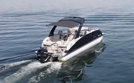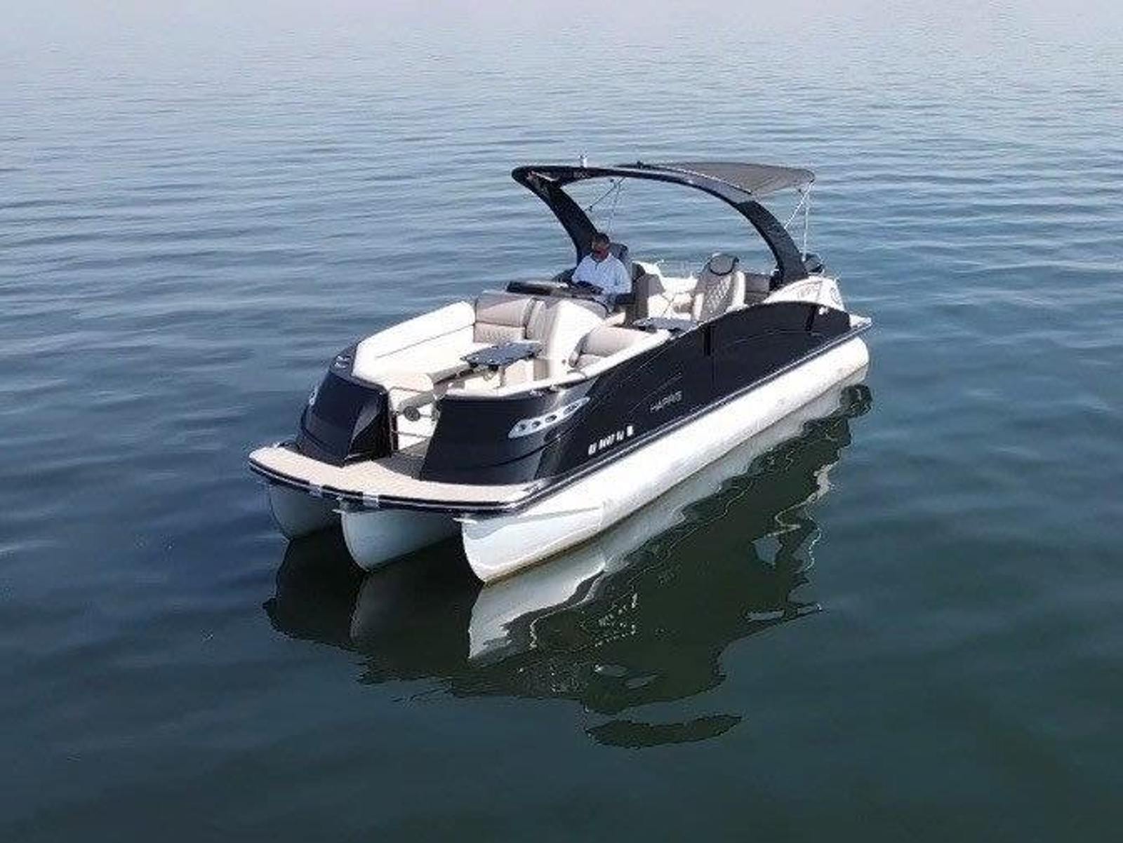 This 2017 Harris 250 Crowne delivers the perfect balance of sport-boat styling and pontoon comfort—an eye-catching, versatile, high-end platform built for relaxation and entertainment.
