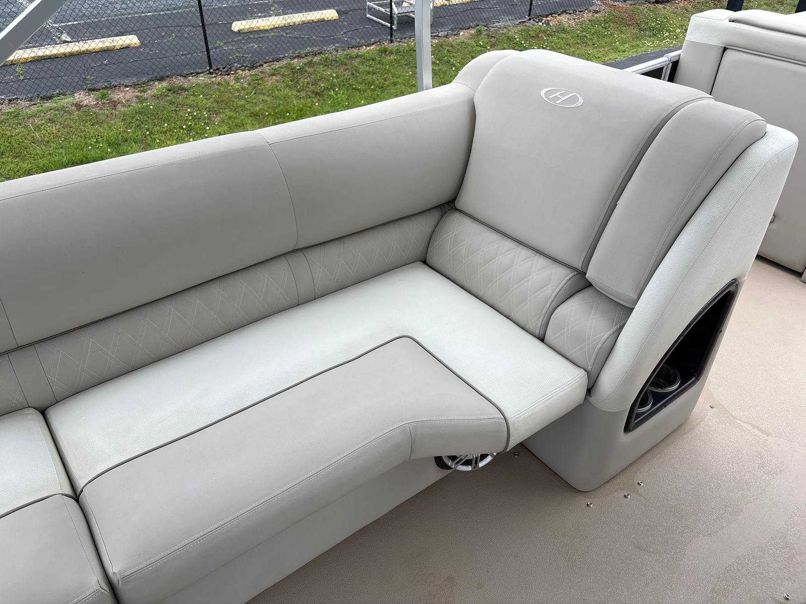 This Harris pontoon boat is not only about luxury and entertainment—it also offers practical advantages that enhance your boating experience. The expansive deck provides plenty of storage options for gear, coolers, and water toys, keeping everything organized and within reach. The pontoon’s design makes docking and maneuvering a breeze, even for those new to boating. Its efficient engine ensures you can enjoy longer days on the water without worrying about frequent refueling stops. Every detail of the Grand Mariner 250 SL is crafted to make ownership as enjoyable and hassle-free as possible.