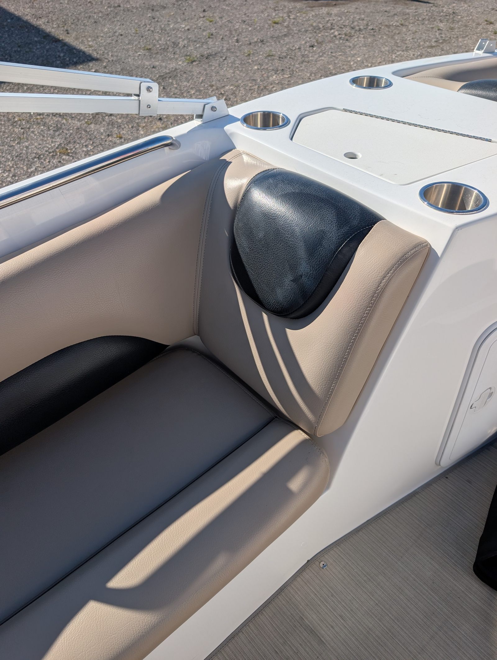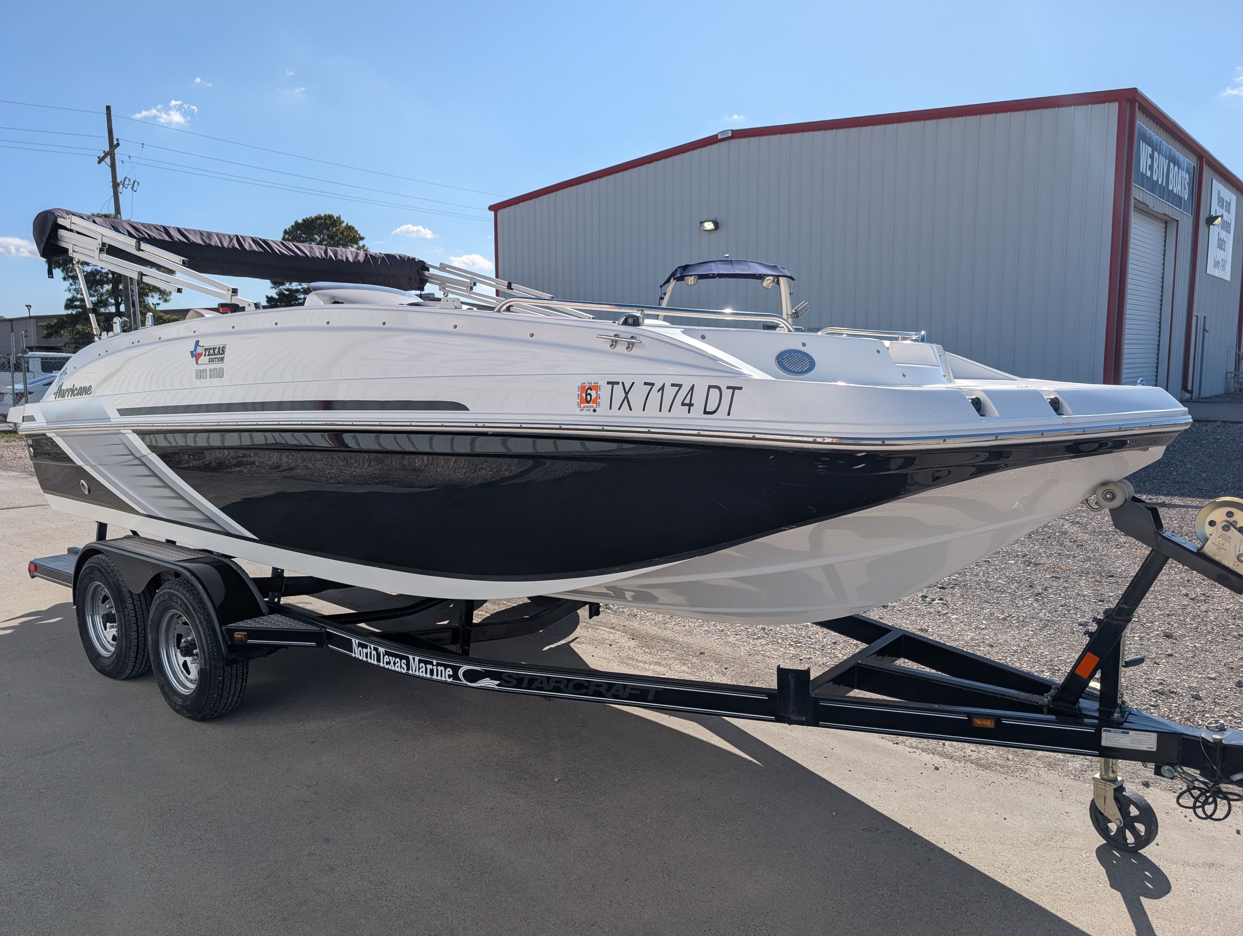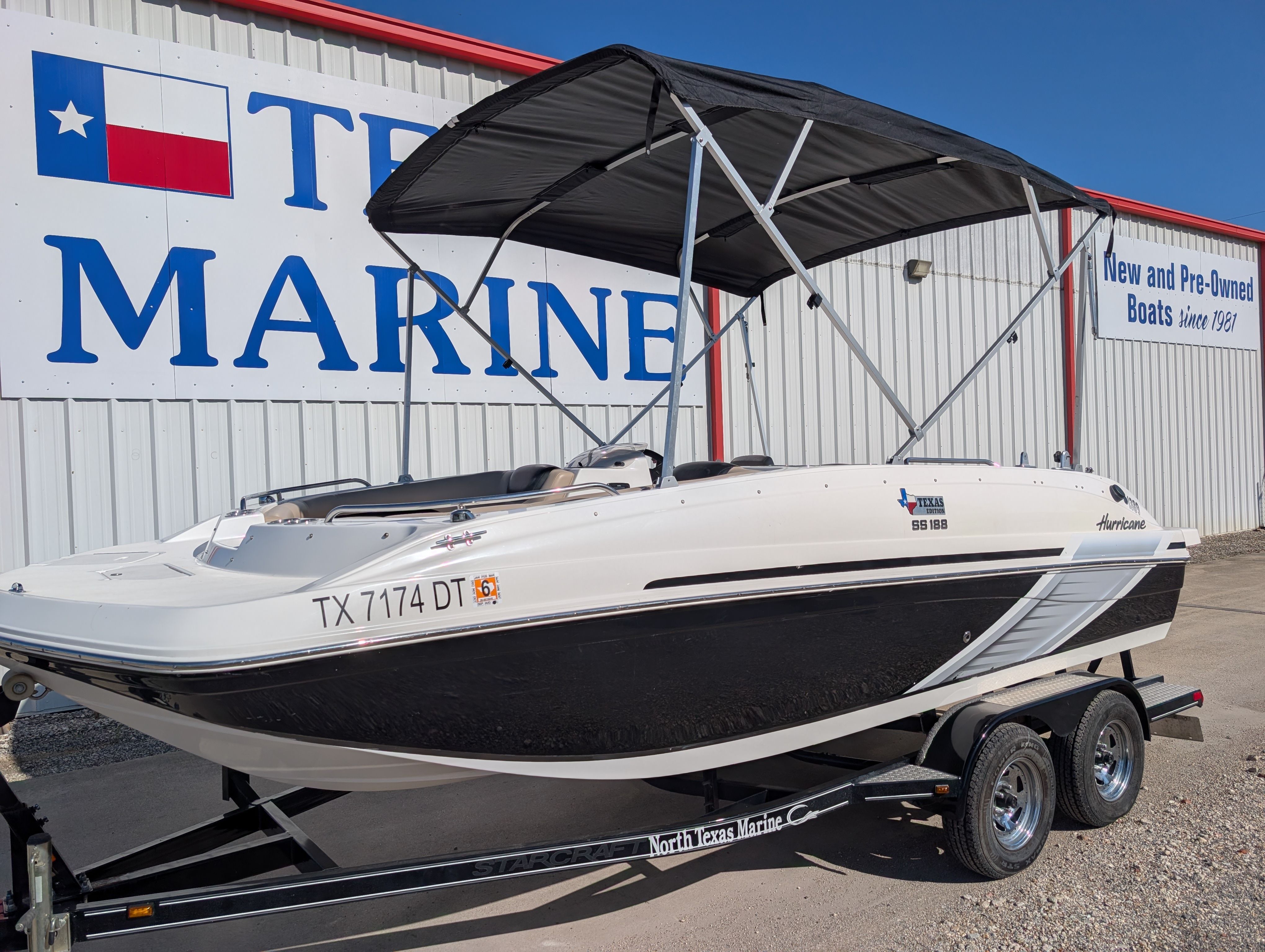 This Hurricane boat for sale is loaded with special features that enhance both its recreational and practical appeal. The wake tower is a standout addition, perfect for wakeboarding, waterskiing, or tubing. It provides a sturdy and elevated tow point, ensuring smooth rides and big air for thrill-seekers. The bimini top offers essential shade and protection from the sun, allowing you to stay cool and comfortable during long summer outings. For anglers, the fish finder is a valuable tool, helping you locate the best fishing spots with ease and precision. These features make the Hurricane 188 SS a true multi-purpose vessel, ready for whatever adventure you have in mind.