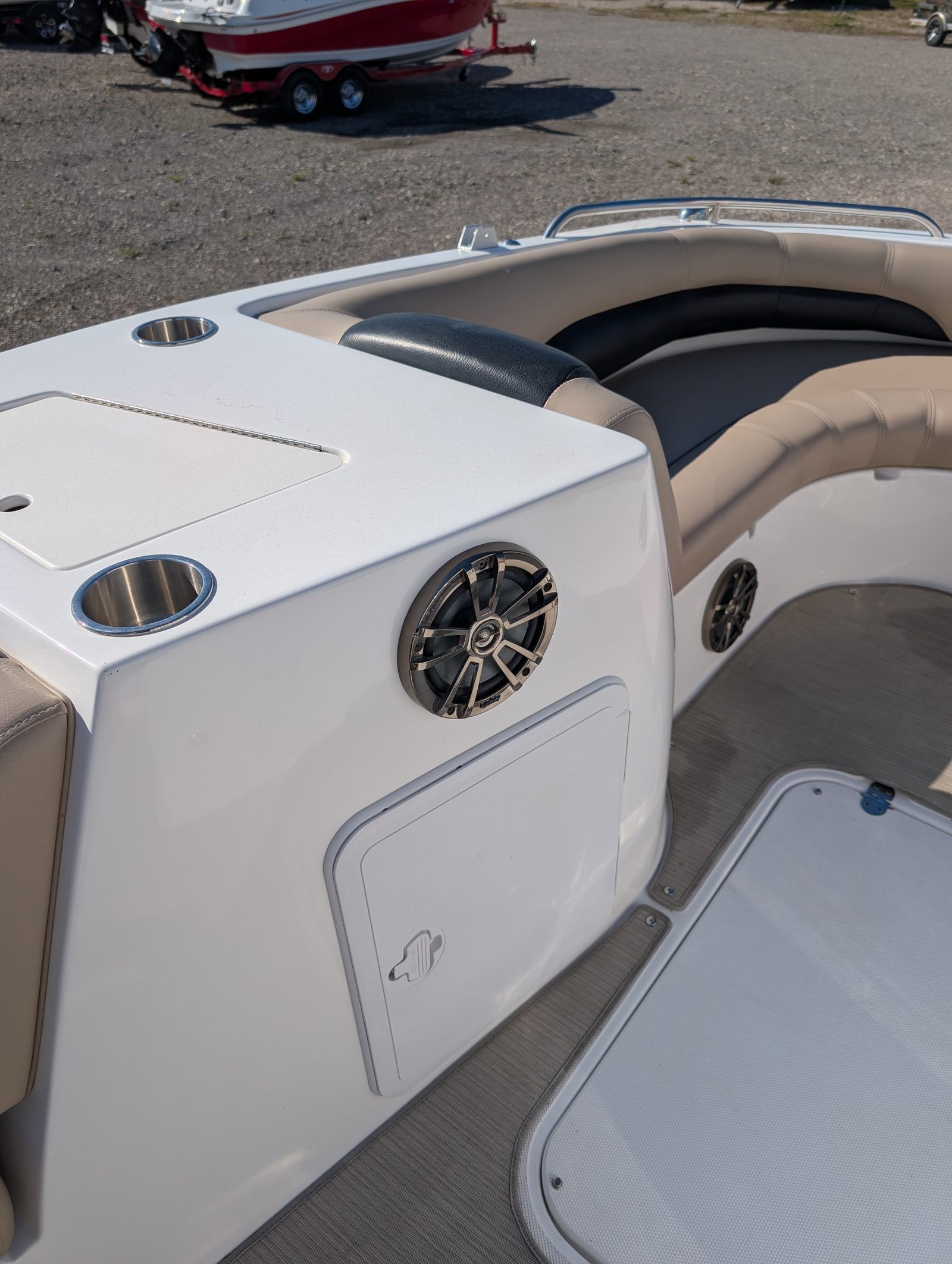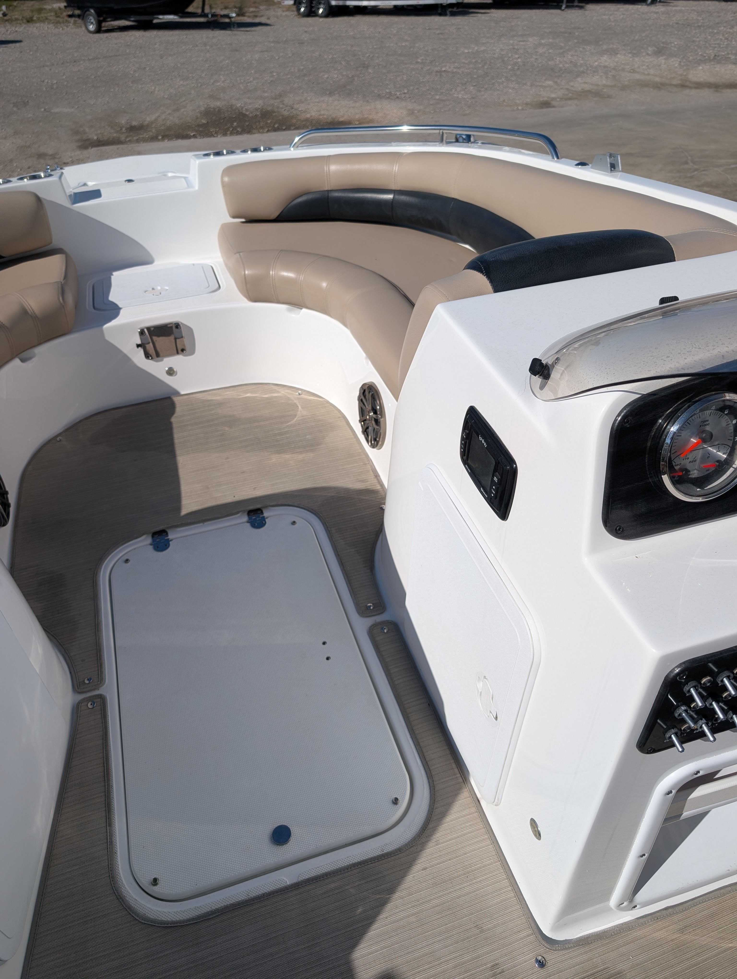 Powering the Hurricane 188 SS is a robust single engine boasting an impressive 250 horsepower. This setup ensures exhilarating acceleration, smooth handling, and reliable performance whether you’re towing water toys, heading out for a fishing expedition, or simply enjoying a leisurely ride. The engine’s power allows for quick planing and responsive maneuverability, making docking and navigating tight spaces a breeze. With this much horsepower at your fingertips, you’ll enjoy the confidence to explore new waters and tackle a variety of boating activities.