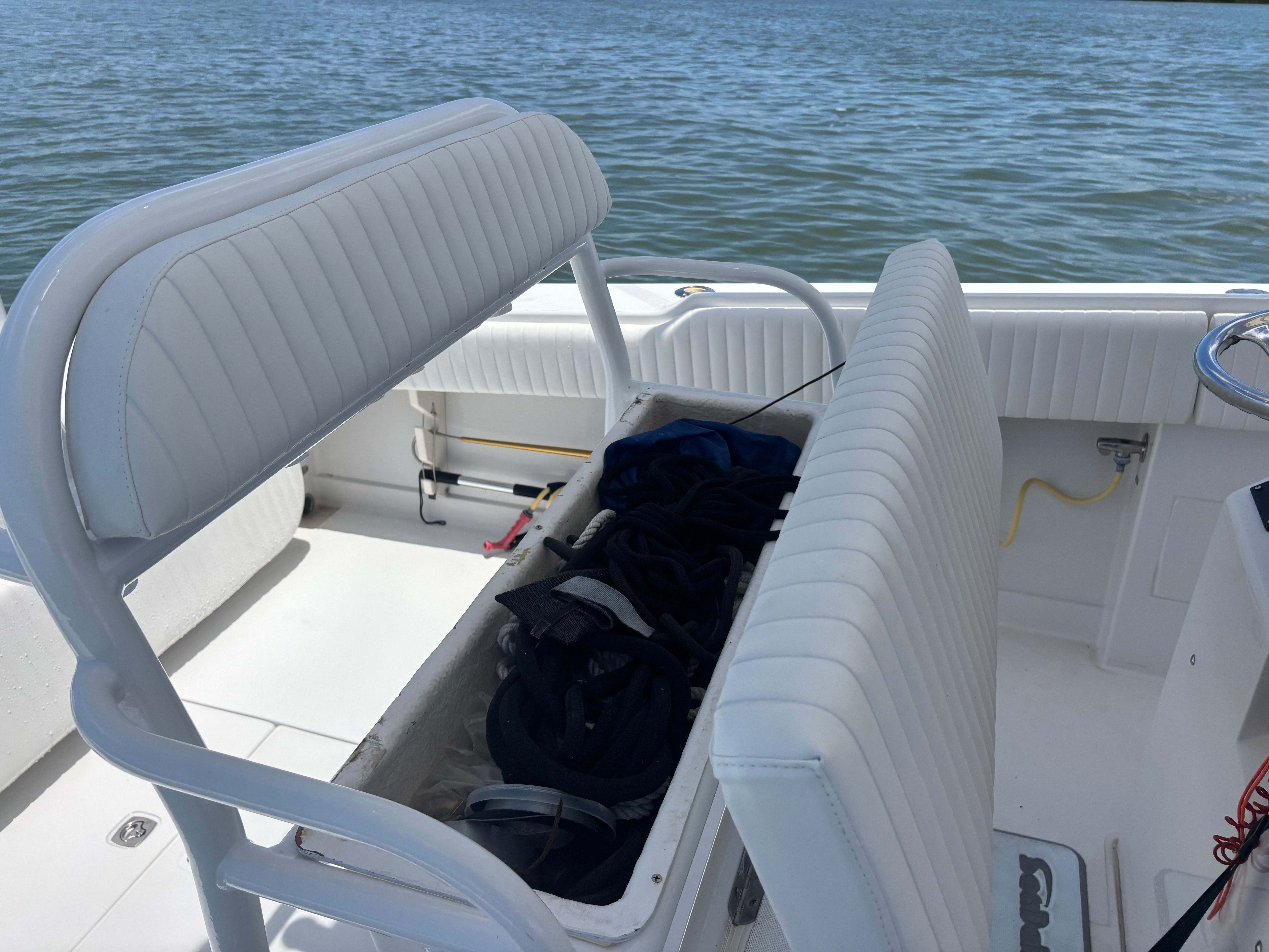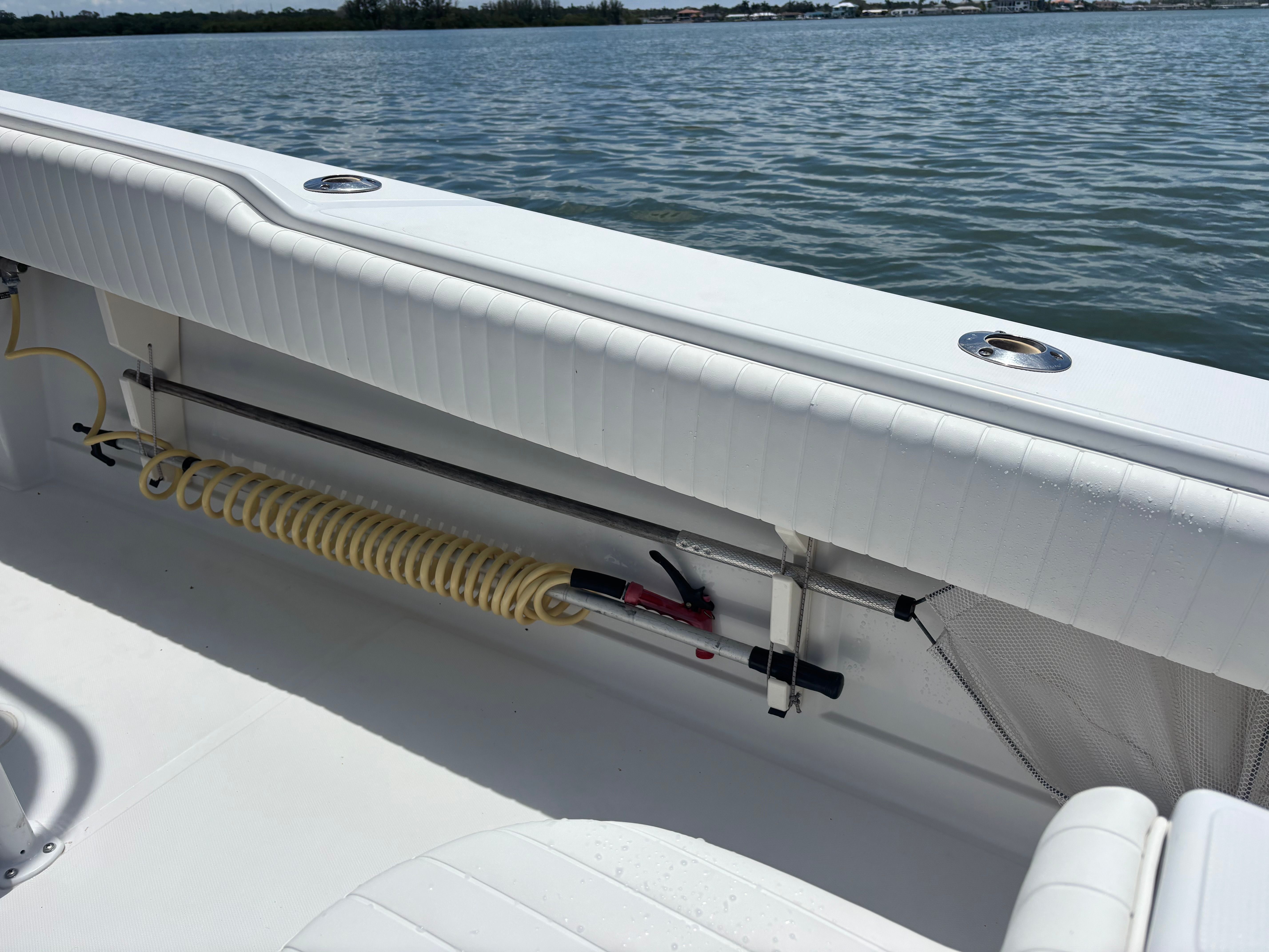 Powering the Jupiter 27 FS are two robust engines, delivering a combined 500 horsepower. With only 250 engine hours, these motors promise plenty of life and reliable performance for years to come. The twin-engine setup ensures not only impressive speed and acceleration but also enhanced maneuverability and safety, especially in challenging conditions. Whether you're cruising along the coastline, heading offshore for a day of fishing, or simply enjoying a leisurely ride, the Jupiter 27 FS responds with agility and confidence. The power and efficiency of this center console boat make it a top contender for those seeking a Jupiter boat for sale that can handle a variety of marine environments.