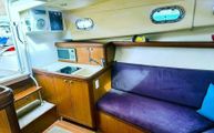 Featuring a spacious cabin with air conditioning, a full galley, enclosed head, and a folding queen berth, she offers cruising comfort rarely found in this size. Recent maintenance, service records, and turnkey condition make her ready for your next adventure.
