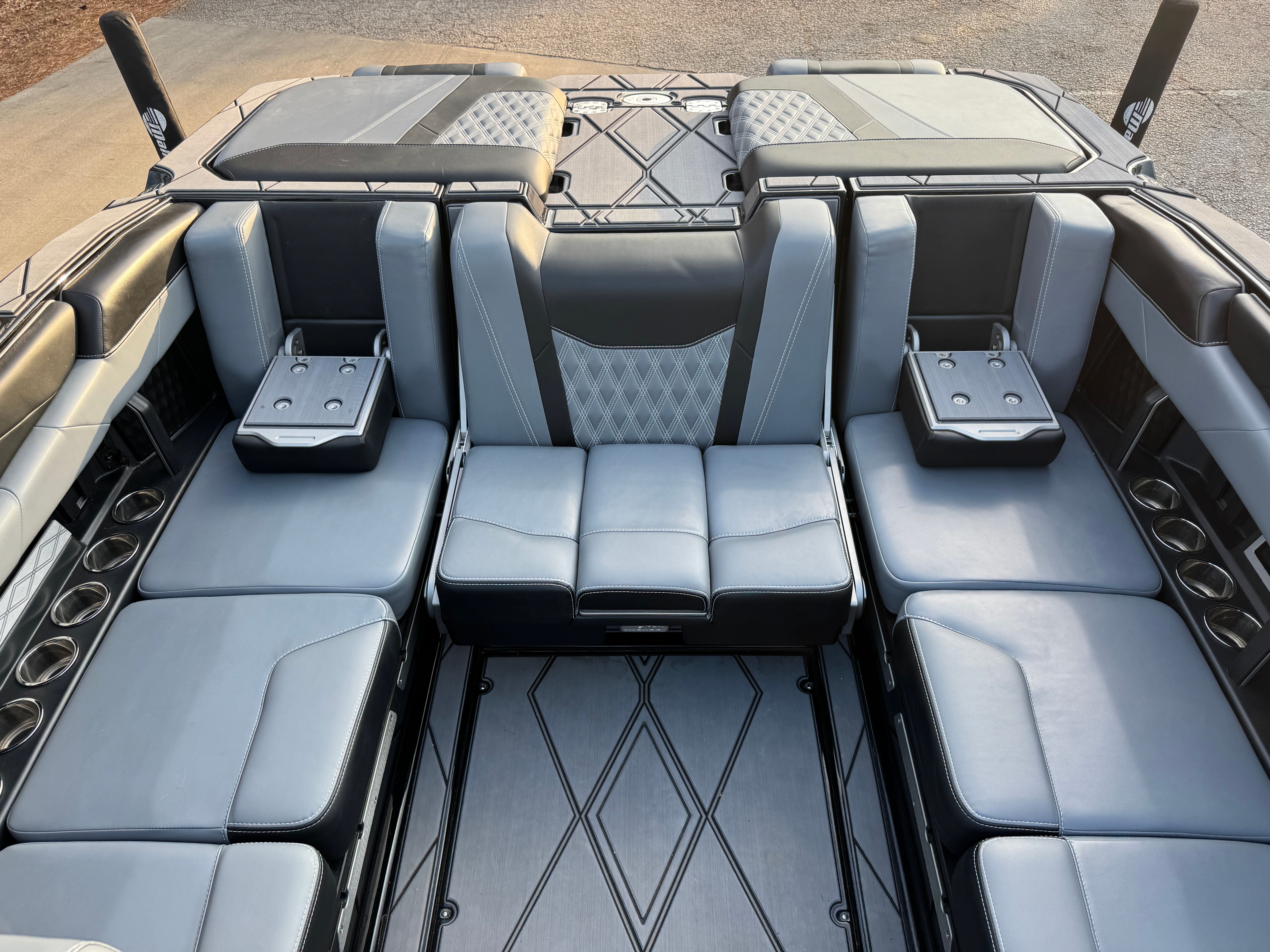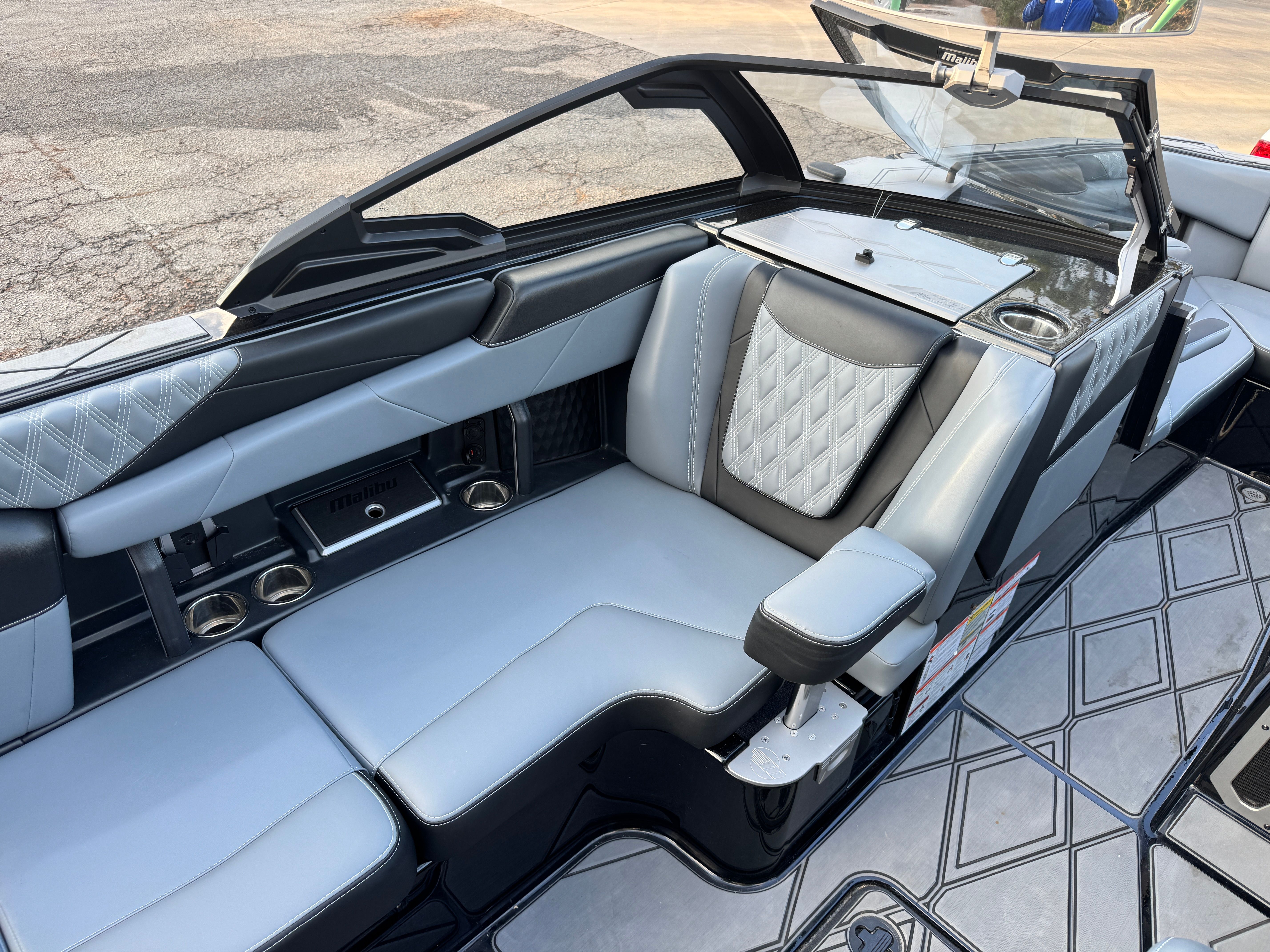 The Malibu M230 is packed with features designed to enhance your time on the water. Its spacious 23-foot layout provides plenty of room for friends, family, and all your gear, ensuring everyone can relax and enjoy the ride. The boat’s advanced hull design creates the perfect wake for skiing, wakeboarding, or wakesurfing, making it a favorite among water sports enthusiasts. The intuitive helm puts all controls at your fingertips, allowing for easy operation and precise adjustments to suit your activity and skill level. Every detail of the M230 is crafted to maximize comfort, convenience, and fun, from the plush seating to the ample storage options for boards, ropes, and life jackets.