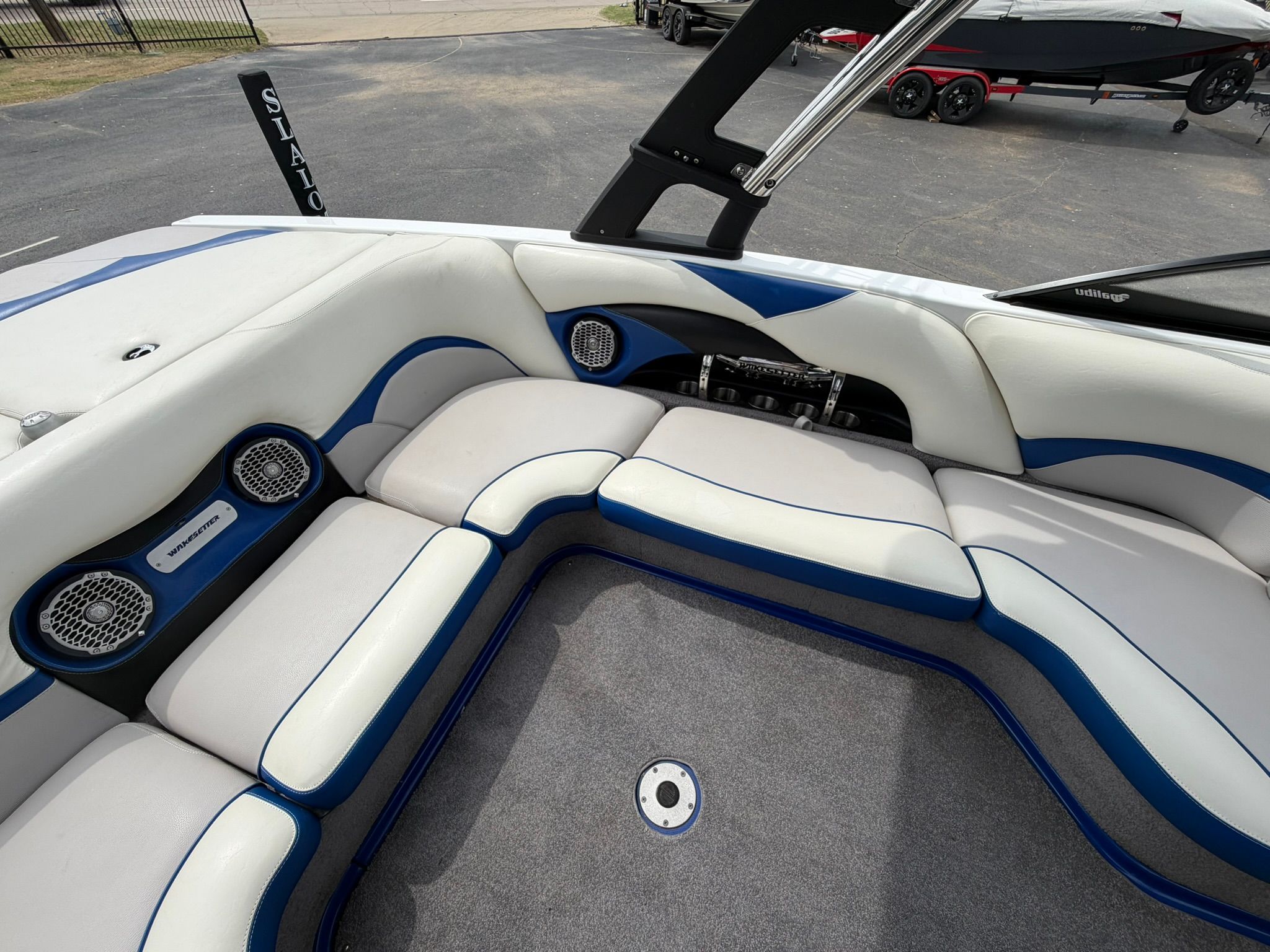 Now available at our Used Boat Super Center in Lewisville, this 2012 Malibu Wakesetter 21 VLX is one of the most proven wake boats ever built. Known for its versatile wake and surf performance, this VLX is finished in a sharp black and blue gelcoat and powered by a Monsoon 5.7L V8 producing 350 horsepower with only 227 hours and digital throttle.