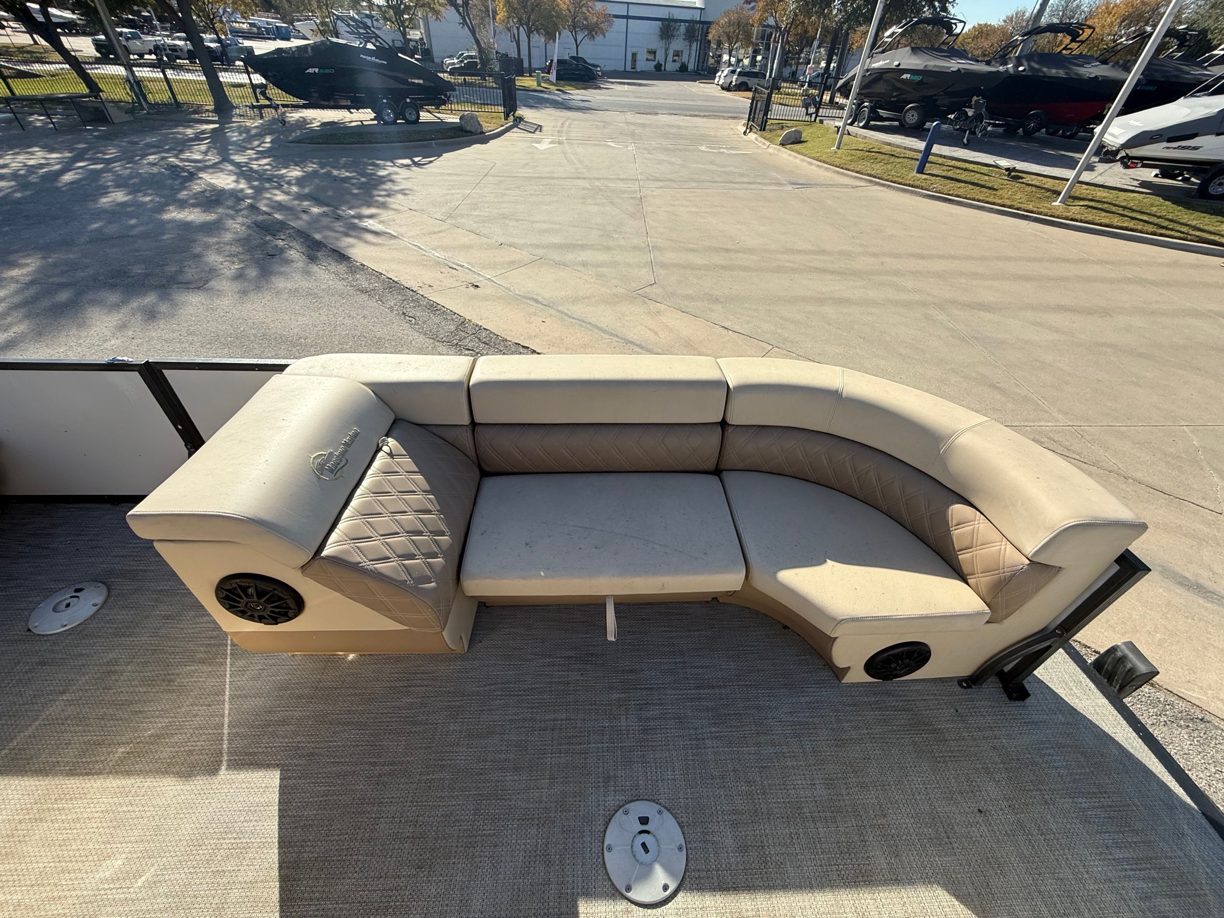 The 2024 Massimo P24 Limited stands out as a top choice among pontoon boats for sale, offering a perfect blend of comfort and capability. Measuring an impressive 24 feet in length, this pontoon provides ample space for friends and family to spread out and enjoy the ride. Its contemporary styling and attention to detail make it a head-turner at any marina or lake. As a used boat, the P24 Limited offers exceptional value, allowing you to enjoy high-end features and performance at a competitive price.