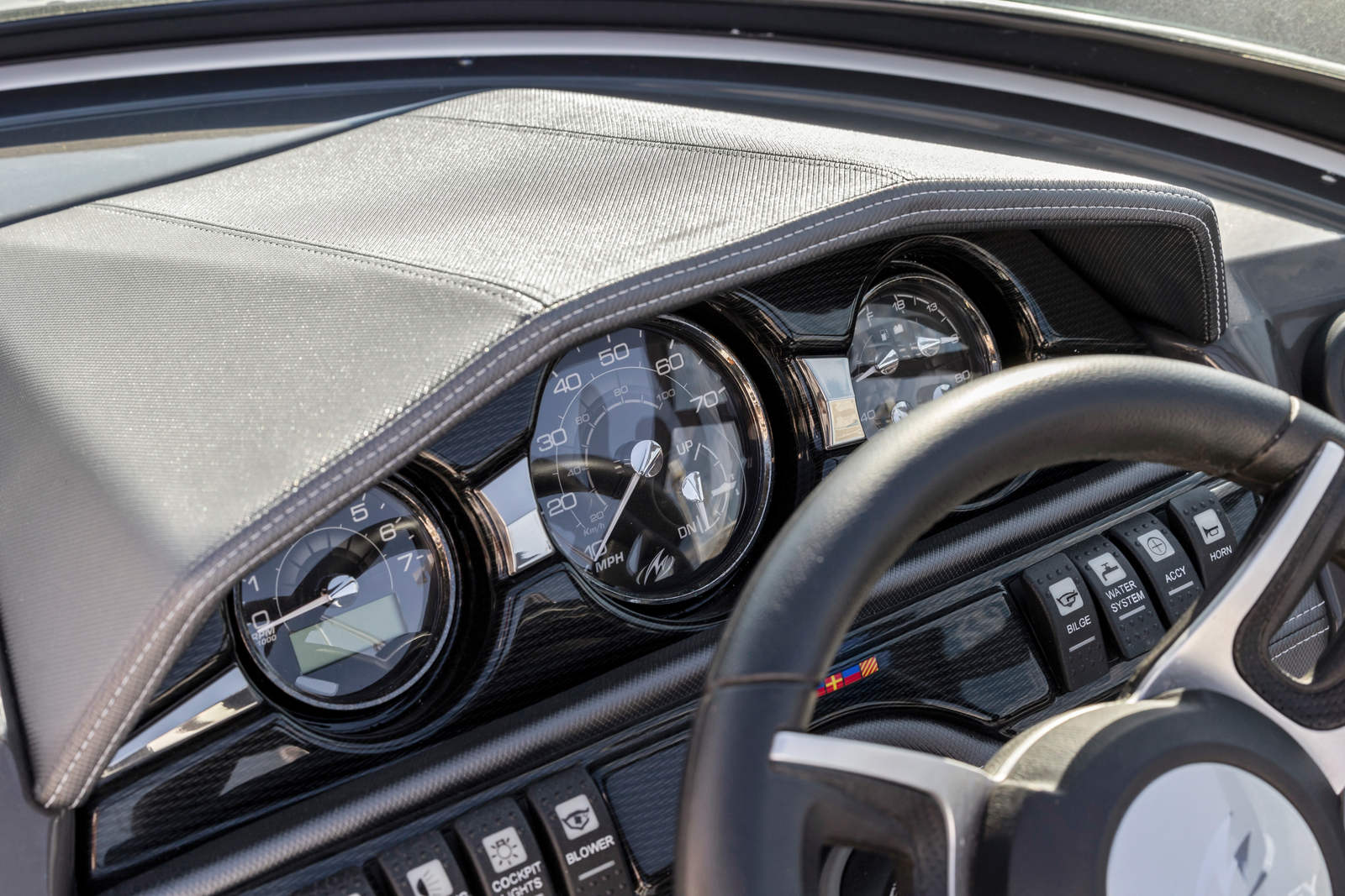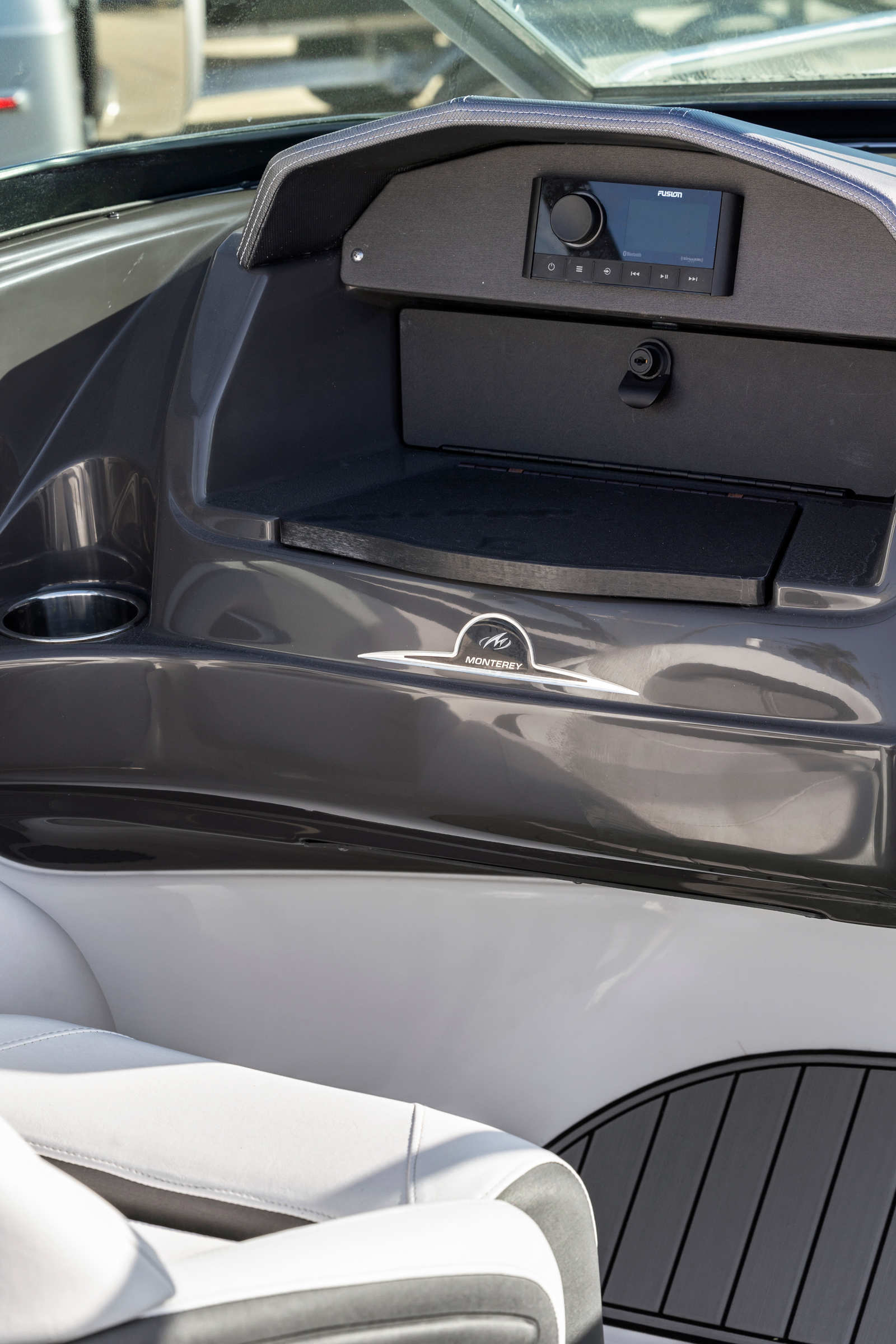 The Monterey 224FS Bowrider is packed with features that enhance both comfort and convenience. Its spacious cockpit and bow seating areas are thoughtfully designed to maximize passenger comfort, providing ample room for relaxation and socializing. The ergonomic helm station offers intuitive controls and excellent visibility, ensuring a stress-free boating experience. High-quality materials and attention to detail are evident throughout, from the plush seating to the stylish accents that define the Monterey brand.This Bowrider’s 22-foot length provides a generous amount of onboard space without sacrificing agility or ease of handling. The open bow design invites guests to stretch out and soak up the sun, while the wraparound windshield offers protection from the elements. Storage compartments are strategically placed to keep gear organized and out of the way, allowing you to make the most of your time on the water.