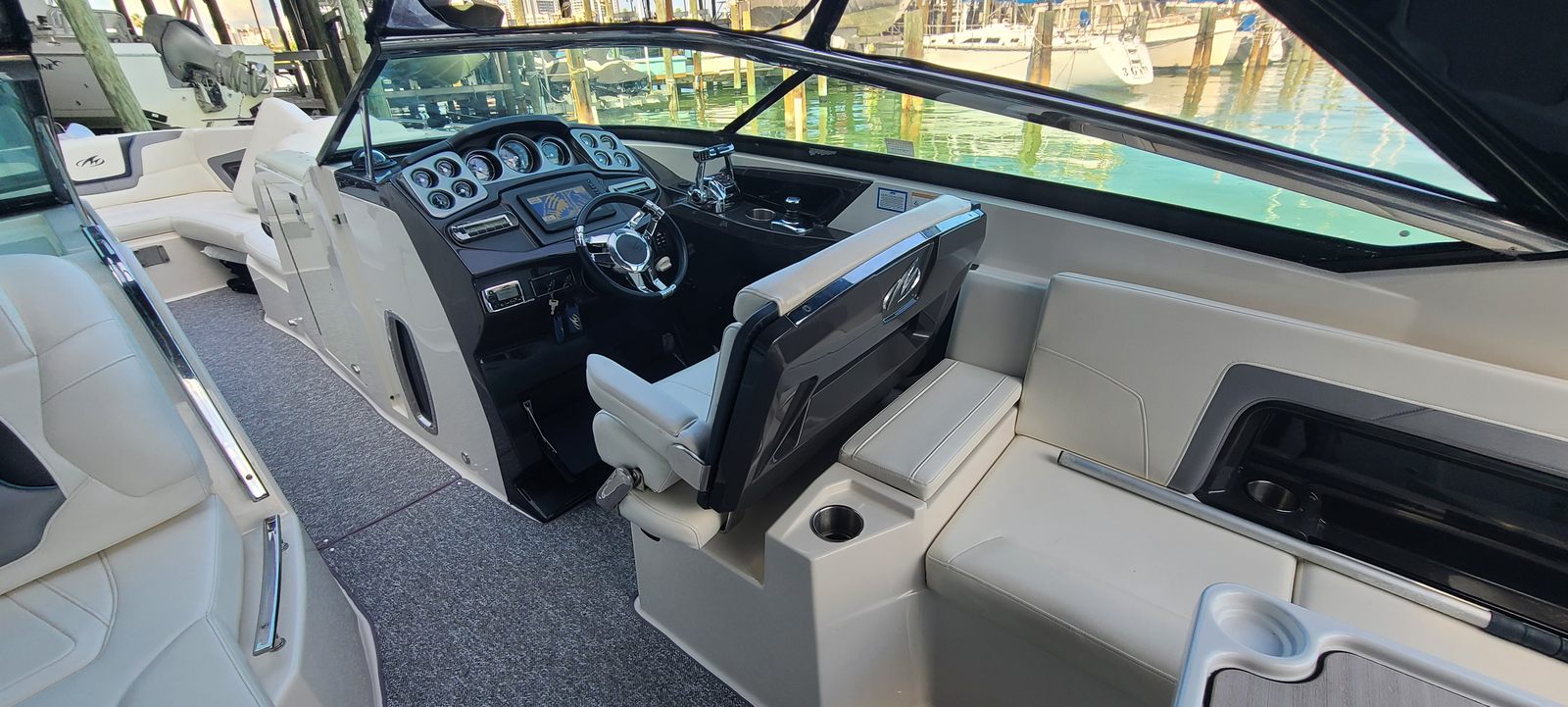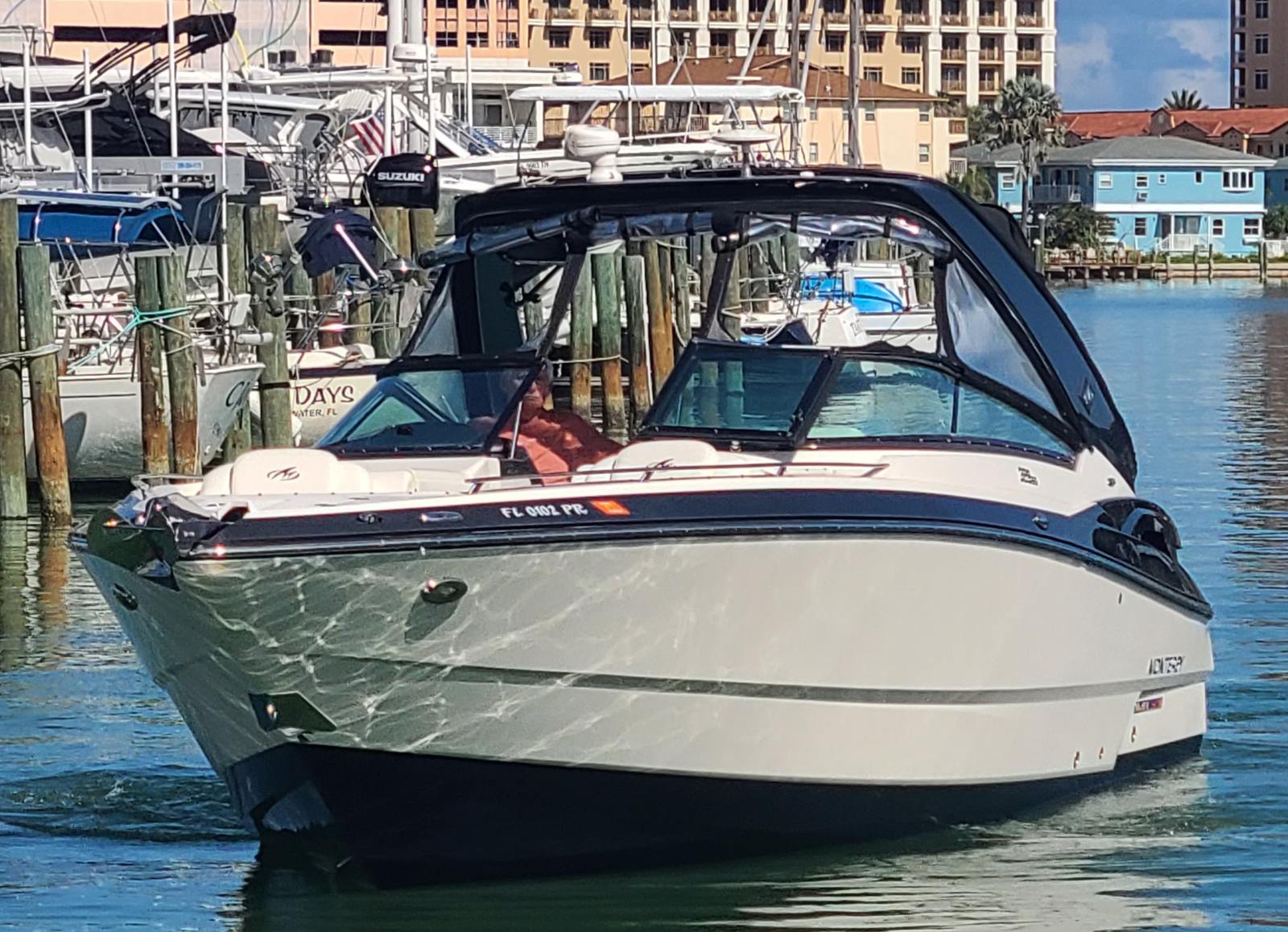 Practicality is a hallmark of the Monterey 328SS. The thoughtful storage options allow you to keep the deck clutter-free, making it easy to move around and enjoy every inch of space. Docking is a breeze thanks to the responsive handling and dual engines, giving you confidence in tight marinas or busy docks. The efficient design helps maximize fuel economy, so you can spend more time on the water and less time refueling.The durable construction and quality materials ensure that this bowrider boat for sale is built to last, providing peace of mind for years to come. Whether you are planning a weekend getaway, a day trip with friends, or a spontaneous adventure, the 328SS is ready to deliver a memorable experience every time.