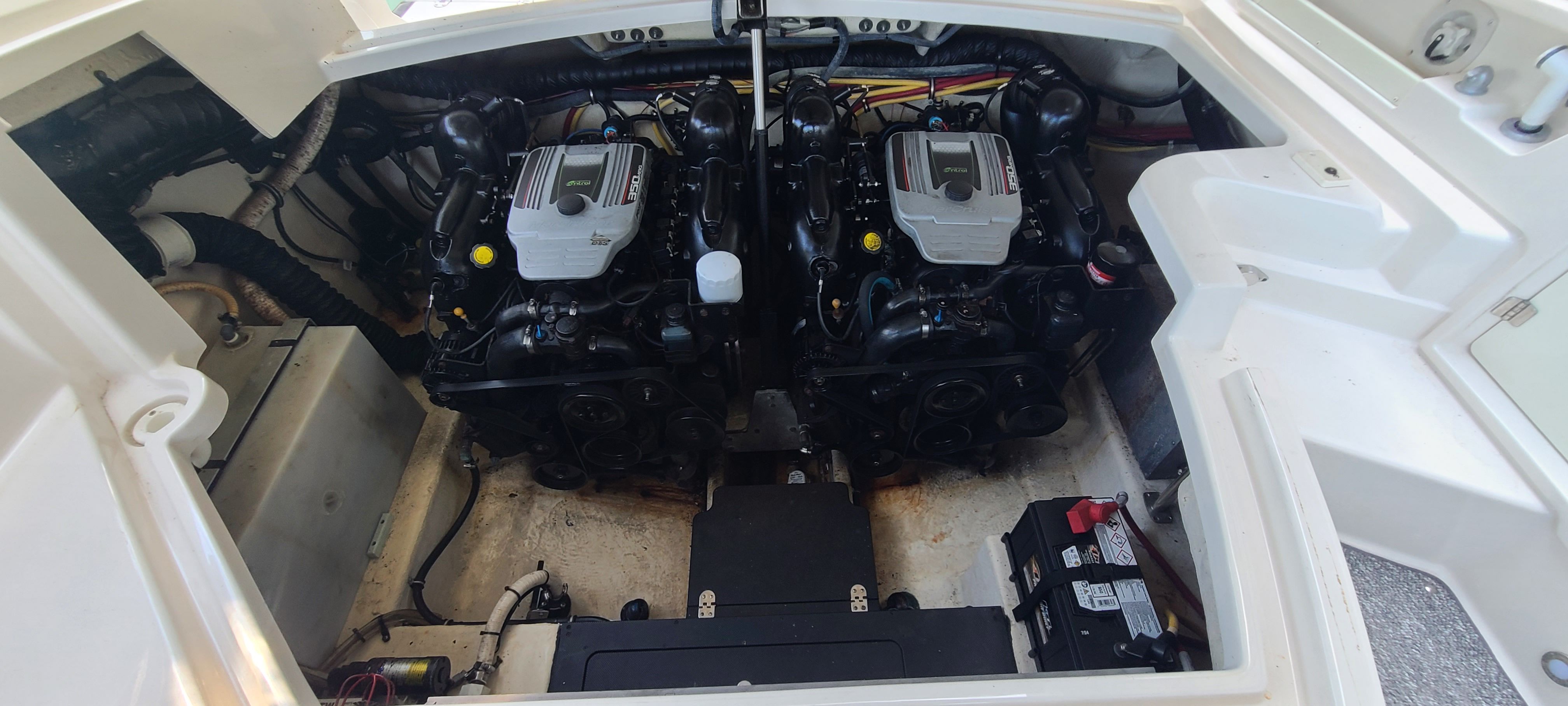 Power and performance are at the heart of the Monterey 328SS. Equipped with twin engines delivering a combined 600 horsepower, this bowrider is built to impress. Whether you are cruising along the coastline, pulling water toys, or making quick trips between destinations, the 328SS offers exhilarating acceleration and smooth handling. With 710 engine hours, these engines have been well-maintained and are ready to provide many more seasons of reliable service. The dual engine setup not only enhances speed and agility but also offers added confidence and control, making every outing a pleasure.