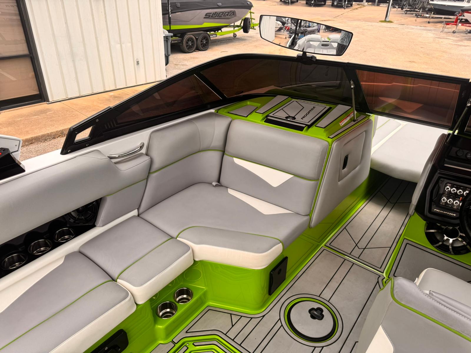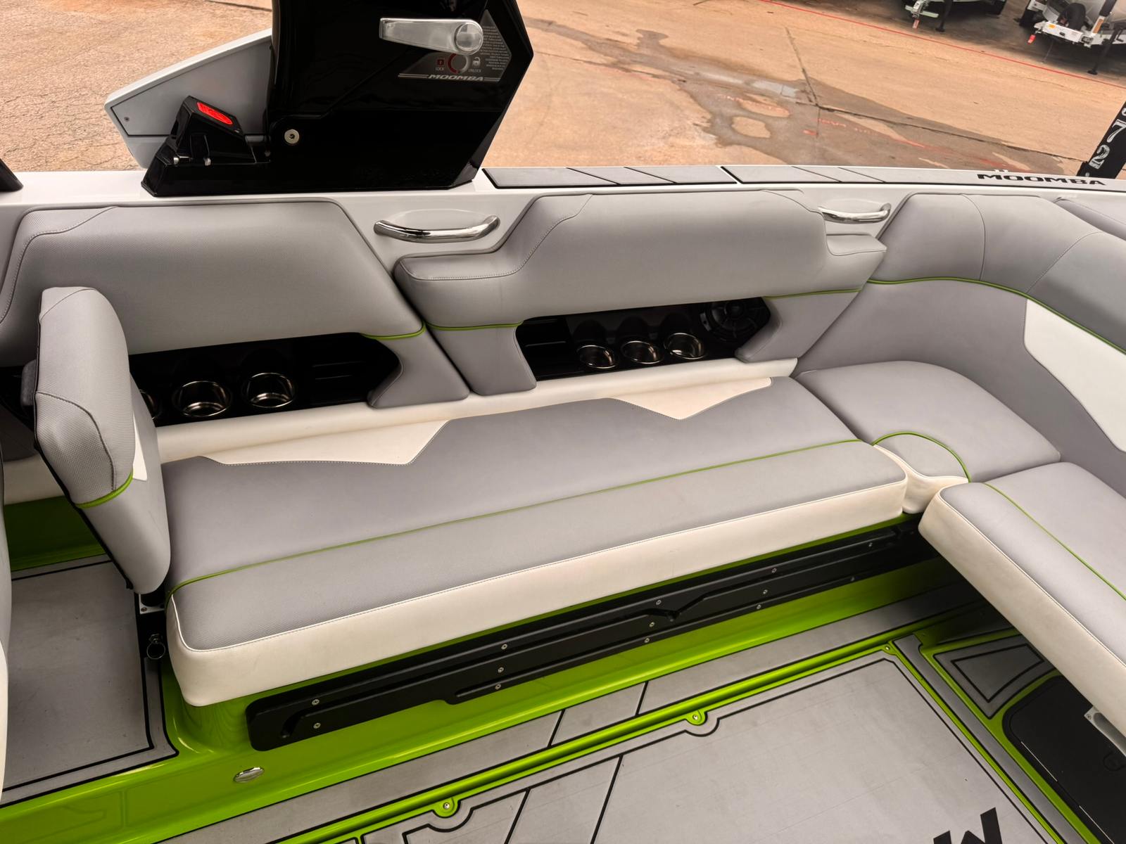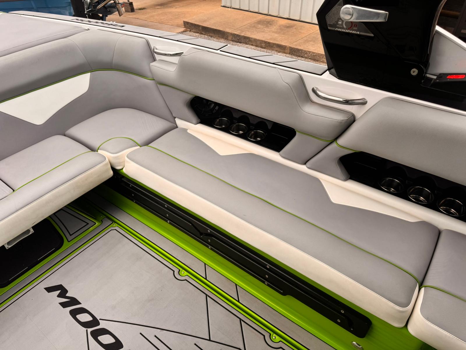 Now available on consignment at our New Used Boat Super Center in Lewisville, this 2019 Moomba Makai delivers high-performance wakesurfing and watersports with luxury features and cutting-edge technology. Finished in Intense Green & White Gelcoat, this Makai is powered by an Indmar 6.2L Raptor Direct Injected V8 Engine and has 378 hours of run time.