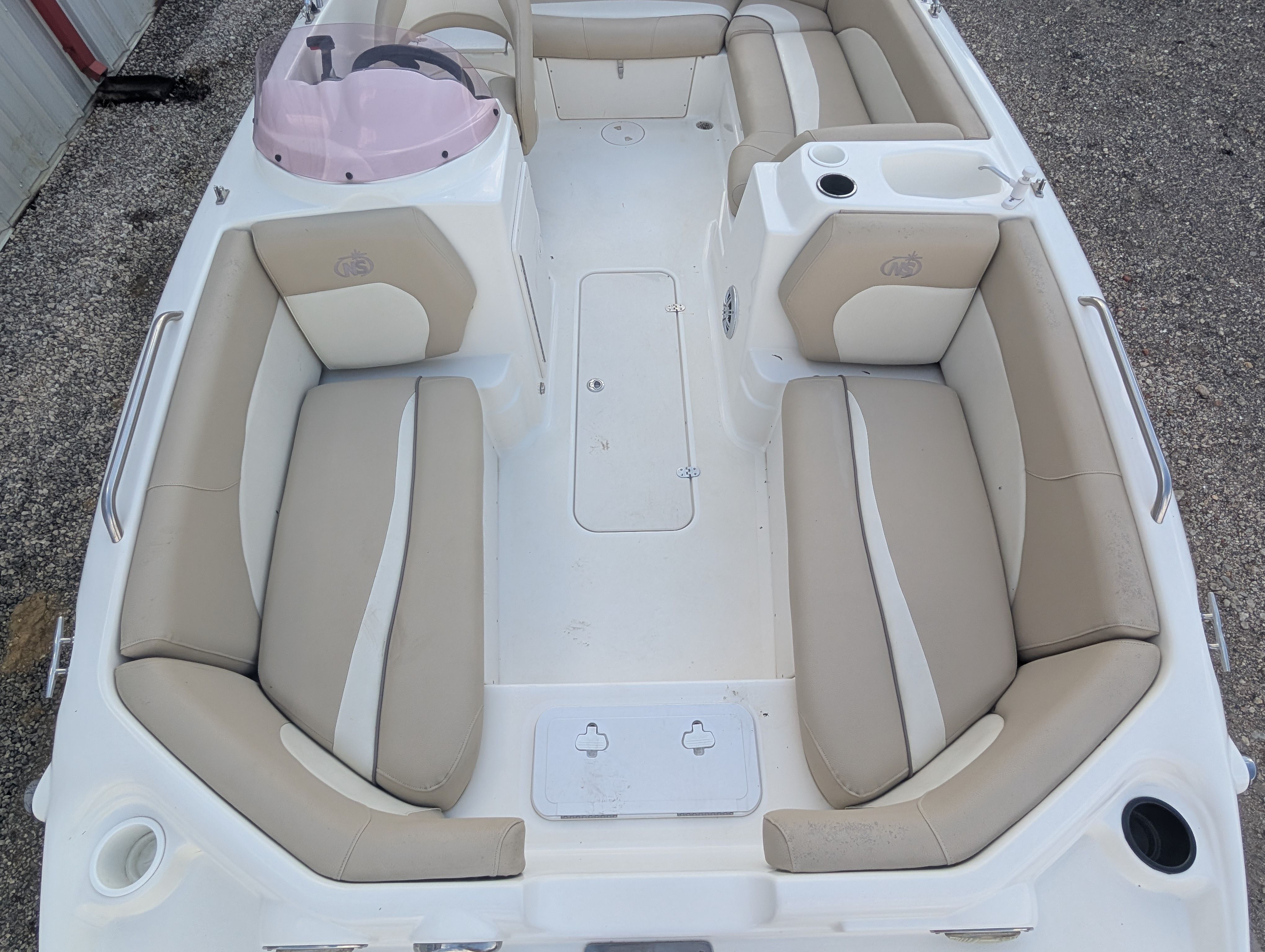 The 2019 Nauticstar 193 SC deckboat is designed with the needs of today’s boaters in mind. Its spacious deck layout maximizes seating and movement, allowing everyone on board to relax and enjoy the ride. The open bow area is perfect for sunbathing or socializing, while the cockpit provides comfortable seating and easy access to all controls. The deckboat’s thoughtful design ensures that every inch of space is utilized for comfort and convenience.Special features of this Nauticstar boat for sale include a user-friendly helm, ample storage compartments for gear and personal items, and a versatile seating arrangement that adapts to your group’s needs. The boat’s durable construction and quality materials ensure longevity and low maintenance, so you can spend more time enjoying the water and less time worrying about upkeep.