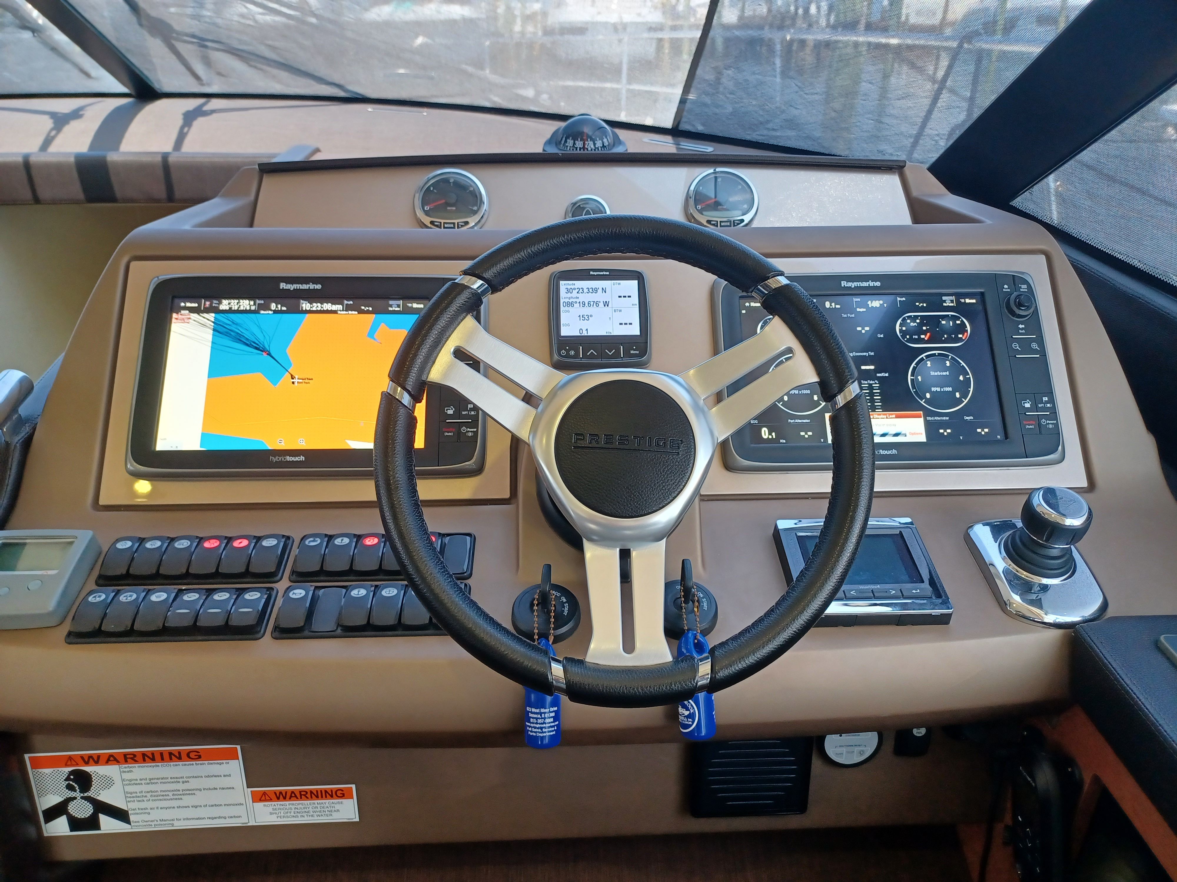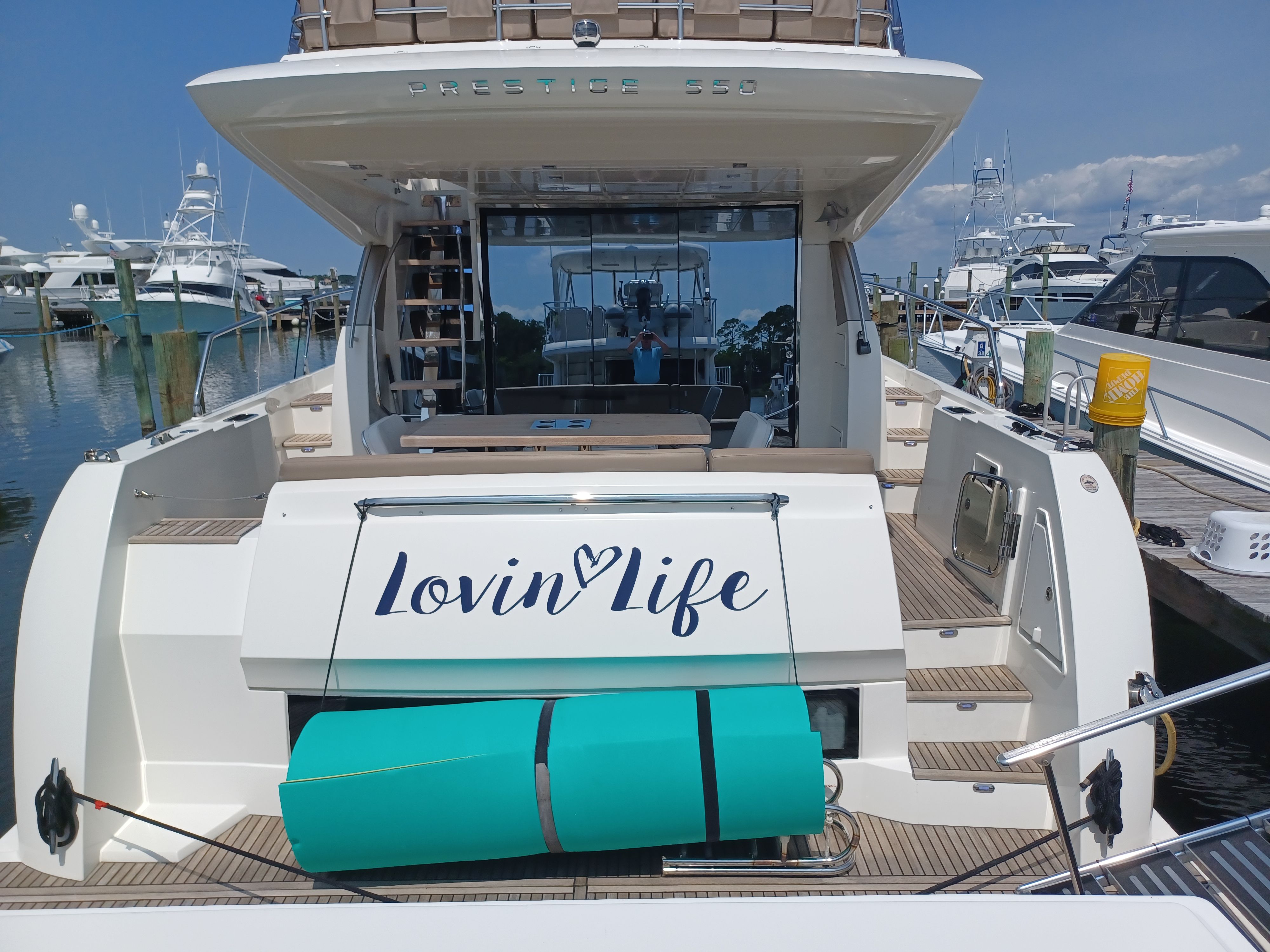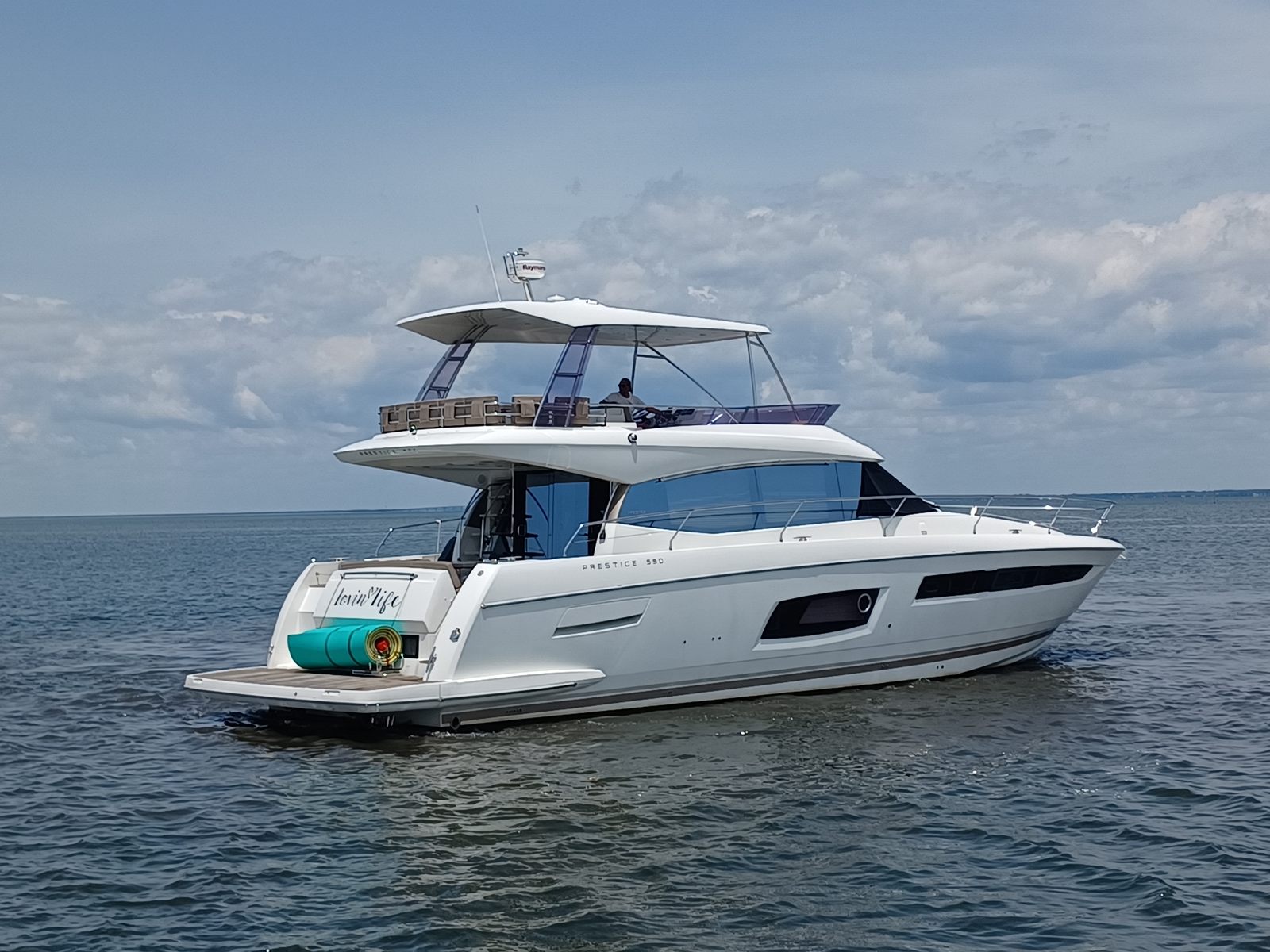 “Lovin Life” is a lightly used, Captain maintained yacht that has been thoughtfully cared for by her current Owners. The boat previously spent much of its life in freshwater on the Great Lakes. This particular Prestige 550 Flybridge is one of the few that has a hardtop rather than a canvas bimini making the spacious flybridge area the place to be underway complete with a wet bar, sink, electric grill and two refrigerators.