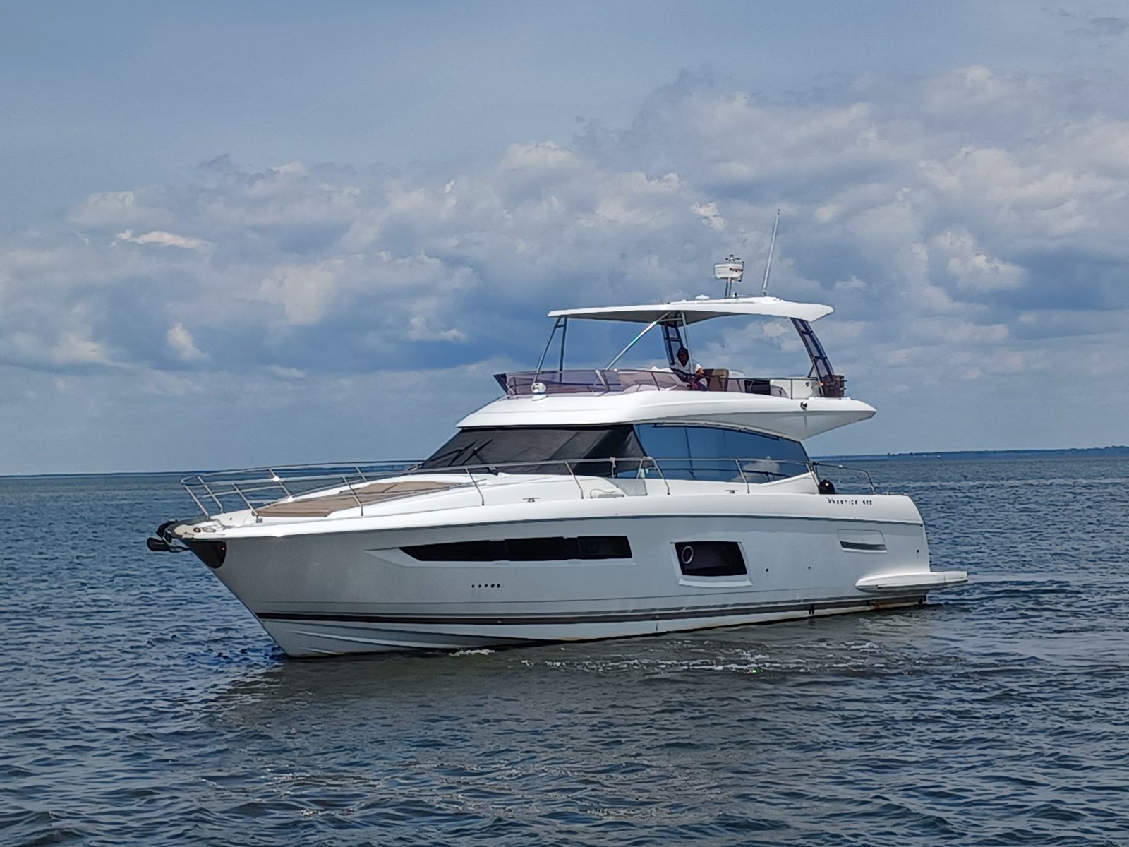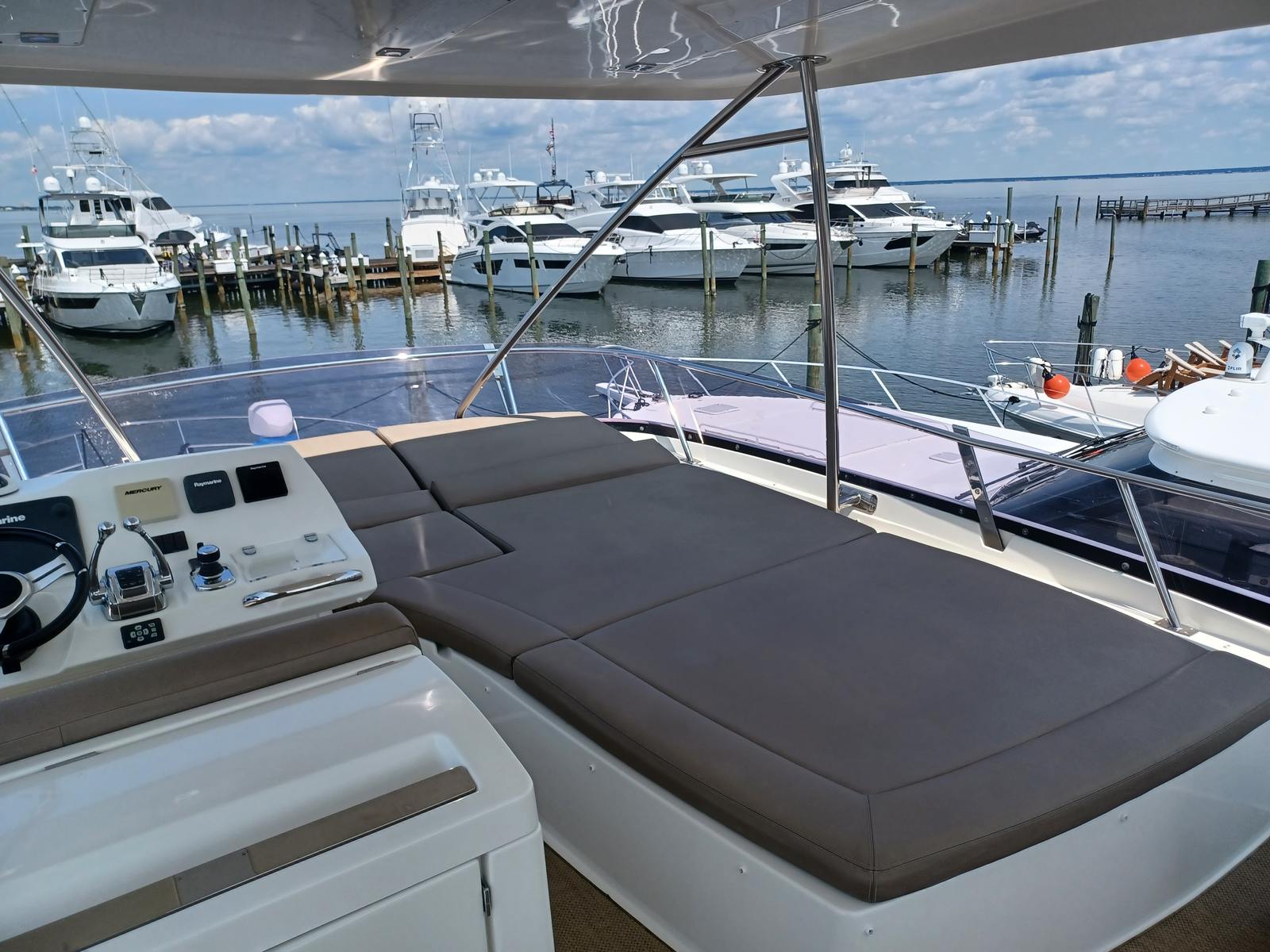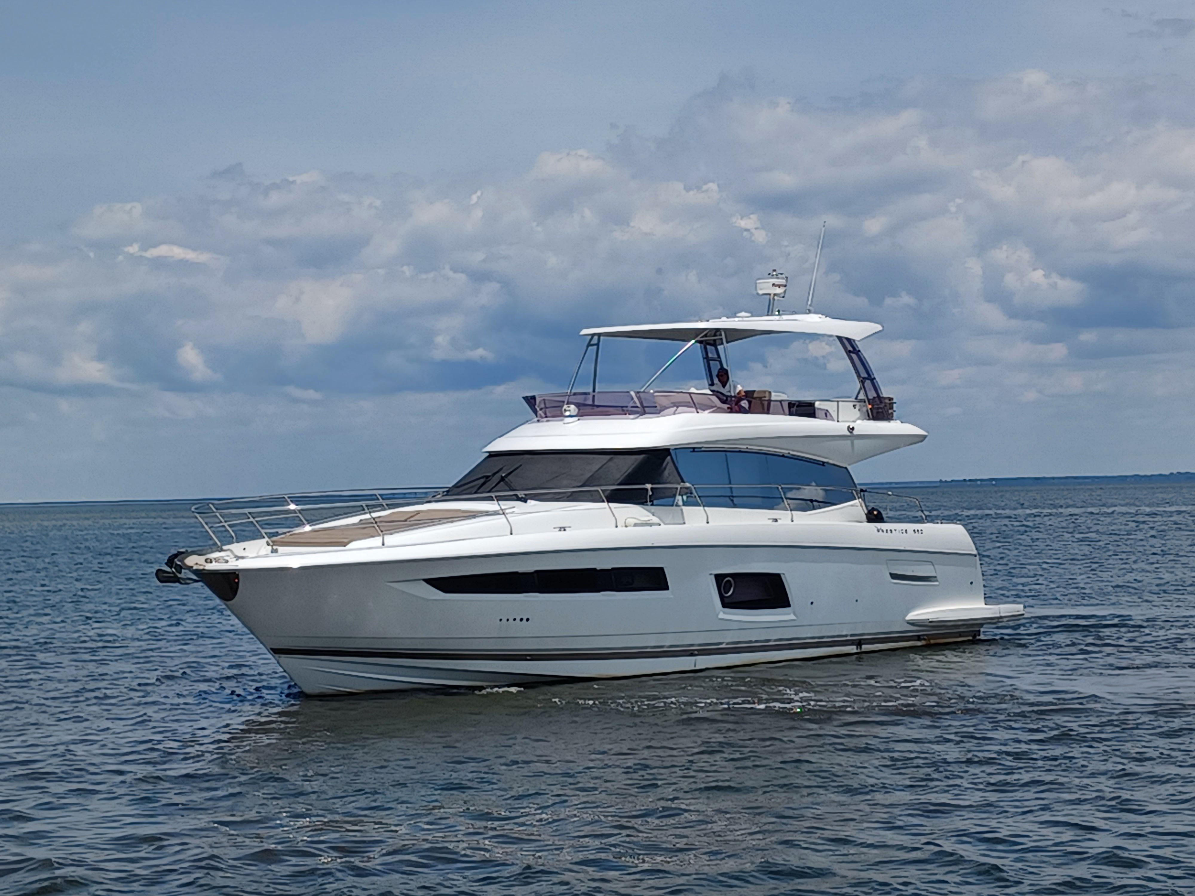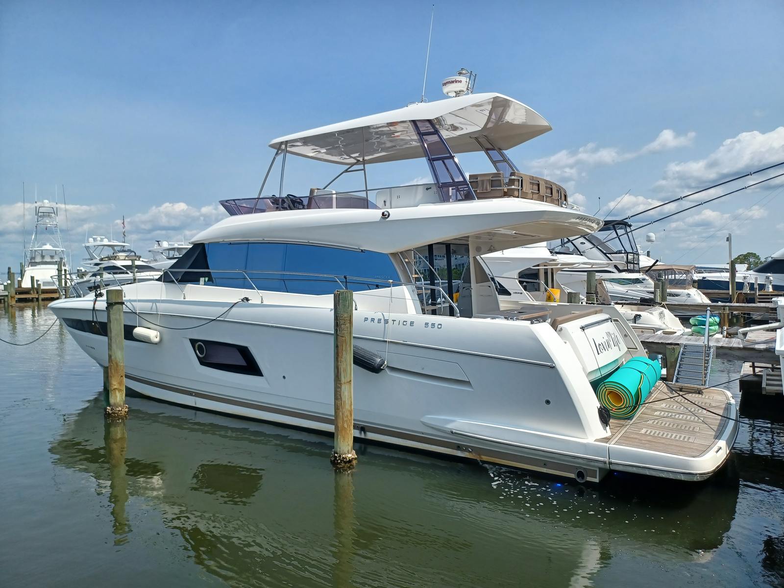 “Lovin Life” is a lightly used, Captain maintained yacht that has been thoughtfully cared for by her current Owners. The boat previously spent much of its life in freshwater on the Great Lakes. This particular Prestige 550 Flybridge is one of the few that has a hardtop rather than a canvas bimini making the spacious flybridge area the place to be underway complete with a wet bar, sink, electric grill and two refrigerators.