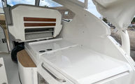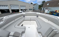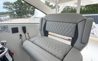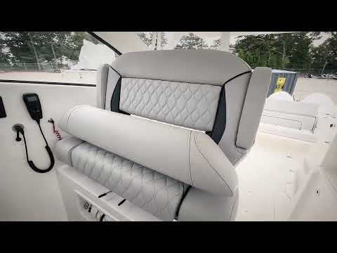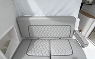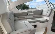 The stylish dual console boat line that has been perfected by Pursuit now includes the DC 365. More comfort, innovation and features have been engineered to bring your sport utility experience to the next level. Forward bow and port side lounge seating, a swivel seat at the helm and patent-pending fold away seating at the transom and under the gunwale give your crew a comfortable place to enjoy whatever type of water activities you choose. Features include a large tempered glass windshield with walkthrough, wide walkways from bow to stern and plenty of large storage compartments. Instrumentation and controls at the helm are ergonomically engineered and an optional Garmin electronics suite makes the DC 365 a joy to operate. The cabin is easily accessible with a fiberglass door and features solid wood accents with modern finishes, a full berth forward and a comfortable aft berth. A small family or couple may overnight with basic amenities for the weekend. Hull side windows reveal plenty of natural light below. Foldaway seating quickly transforms a social venue to a wide-open, fish-ready cockpit with hull side door, livewell, gunwale mounted rod holders and insulated fish-boxes in the floor. The DC 365 dual console boat can do it all with room to spare and style that is Pure. Pursuit.