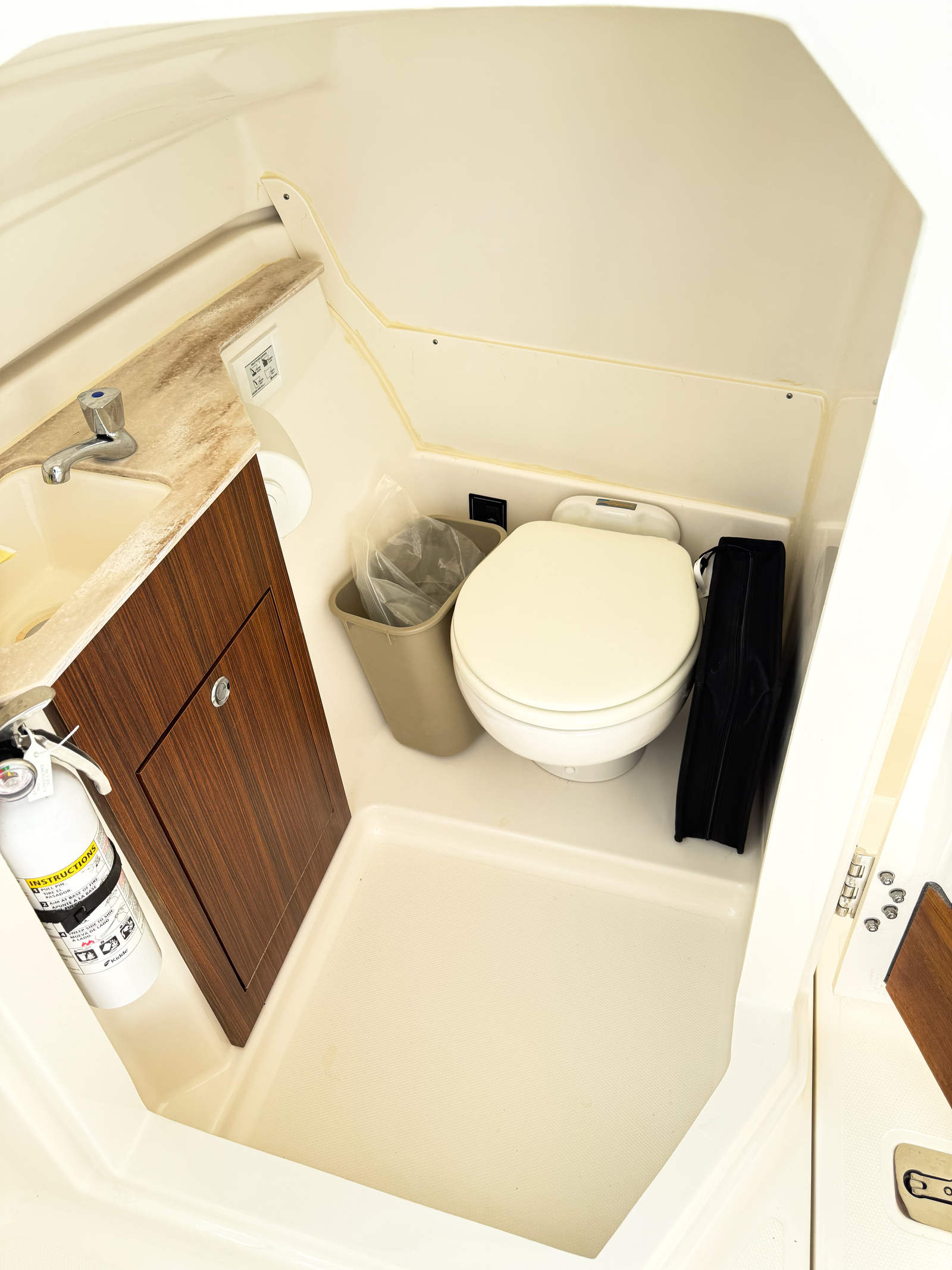 The 2024 Pursuit DC 246 is loaded with special features that enhance both functionality and enjoyment on the water. At the bow, you will find a versatile table that easily converts into a sun pad with a cushion, creating the perfect spot for lounging or socializing. The forward Mediterranean-style sunshade provides ample protection from the sun, allowing you to relax in comfort during those long summer days. A fiberglass hardtop without enclosure offers shade and shelter, while maintaining an open, airy feel throughout the cockpit.For added convenience, the DC 246 is equipped with an electric fresh water head, making longer outings more comfortable for everyone on board. The helm features a sleek carbon finish, complemented by the interior's elegant Sea Salt color scheme, creating a modern and inviting atmosphere. Boarding from the beach is effortless thanks to the deluxe bow beach boarding ladder, while the anchor windlass system with remote ensures easy and secure anchoring wherever your journey takes you.