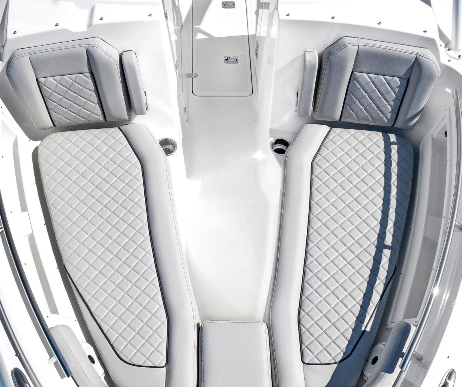 The 2025 Pursuit DC 246 measures an impressive 25.67 feet in length, offering ample space for friends and family to enjoy the water together. As a new addition to the Pursuit lineup, this Dual Console model showcases the brand’s commitment to quality craftsmanship and attention to detail. The Neptune Gray hull, accented by a striking Scarlet bootstripe, gives the boat a modern and sophisticated appearance, while the Carbon helm and Sea Salt upholstery add a touch of elegance to the interior. The Coastal Sunrise Interior Package further enhances the ambiance, making every outing feel like a special occasion.