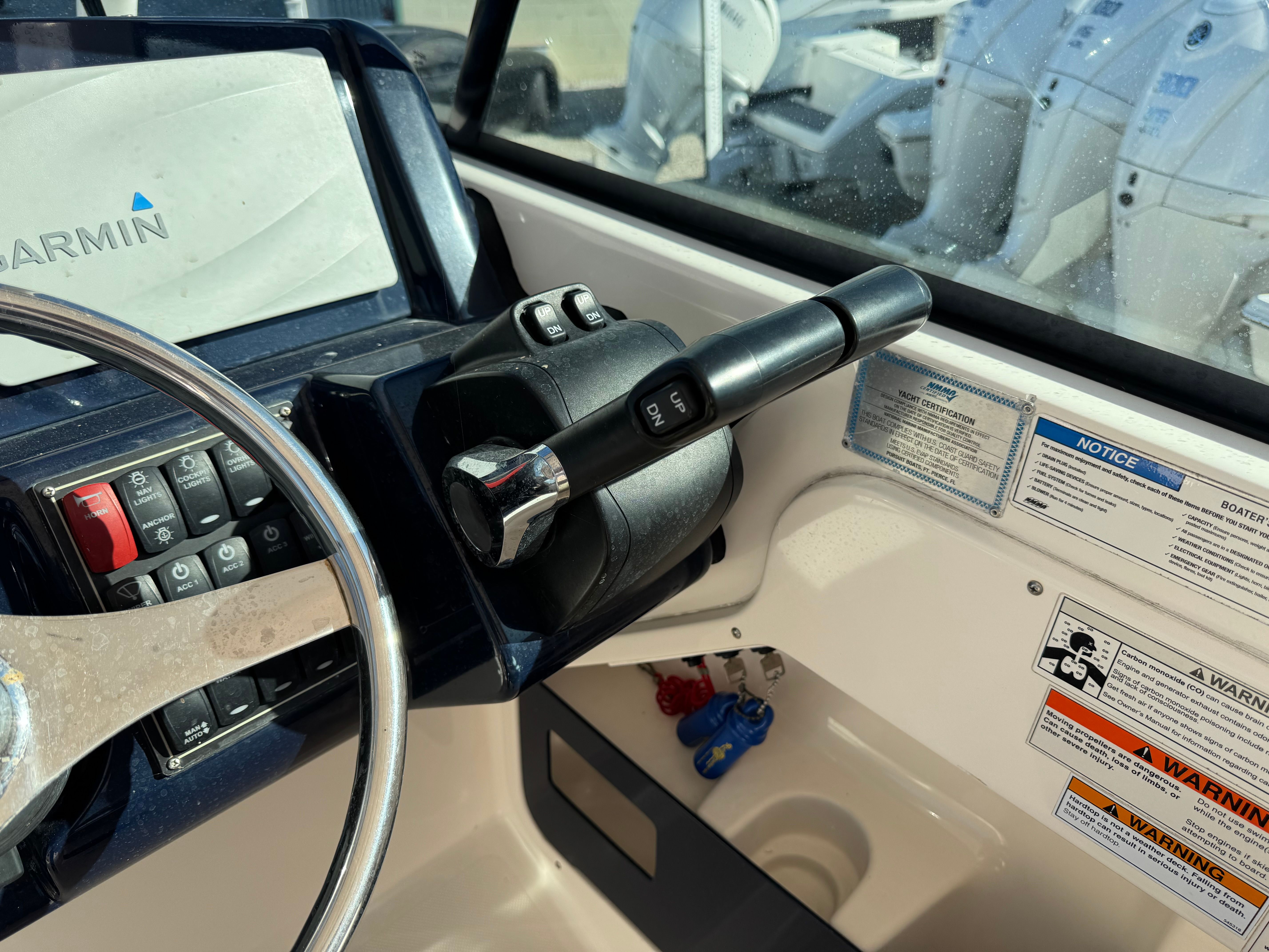 Powering the Pursuit DC 265 are two dependable engines, delivering a combined 400 horsepower for exhilarating performance and smooth handling. With dual engines, this Dual Console boat for sale offers enhanced maneuverability and stability, making it ideal for navigating coastal waters, lakes, and rivers. The engines have only 207 hours of use, ensuring plenty of life and reliability for future adventures. Whether you’re accelerating to your favorite fishing spot or cruising along the shoreline, the DC 265 provides responsive power and efficiency, allowing you to enjoy every moment on the water.