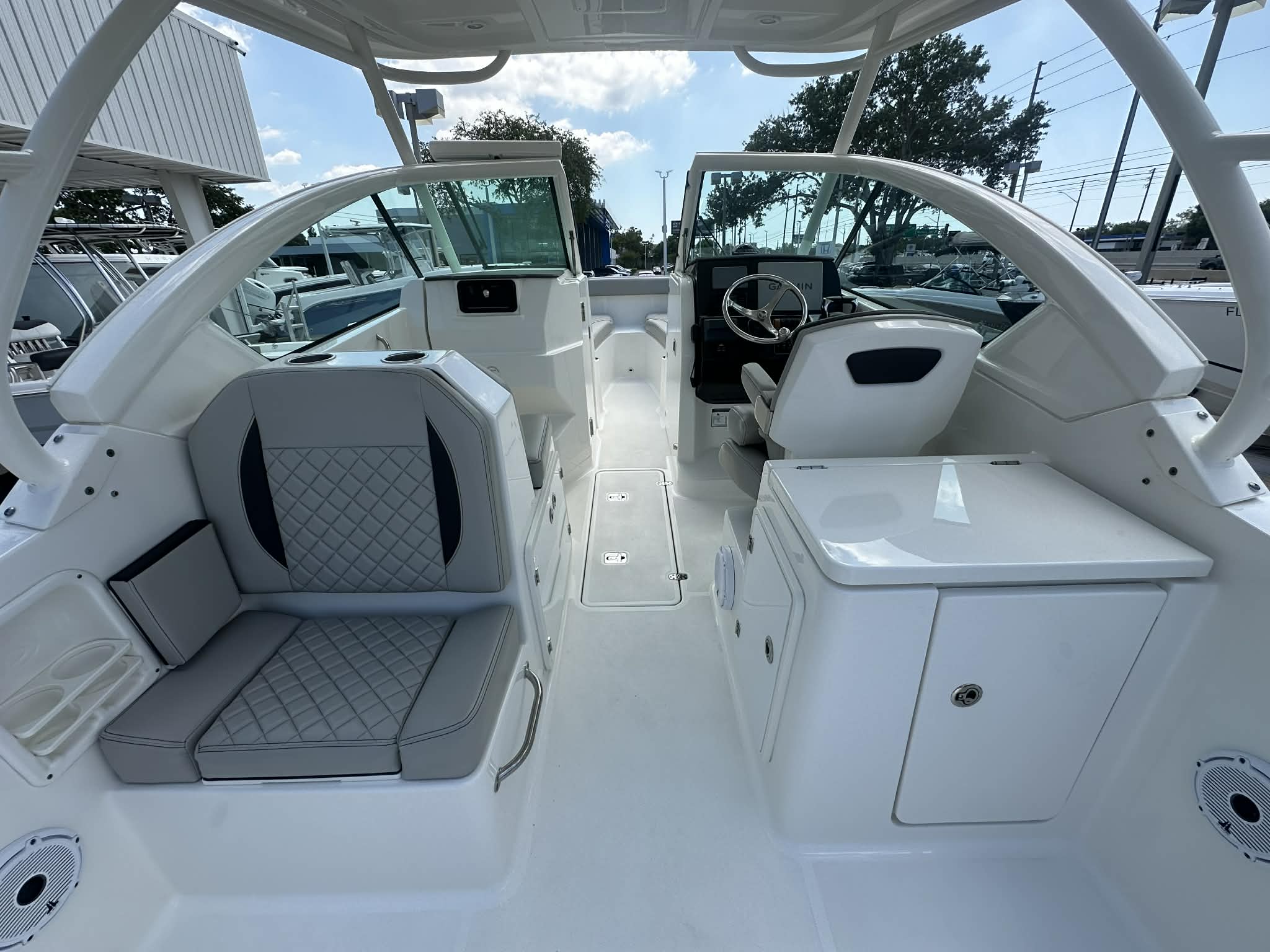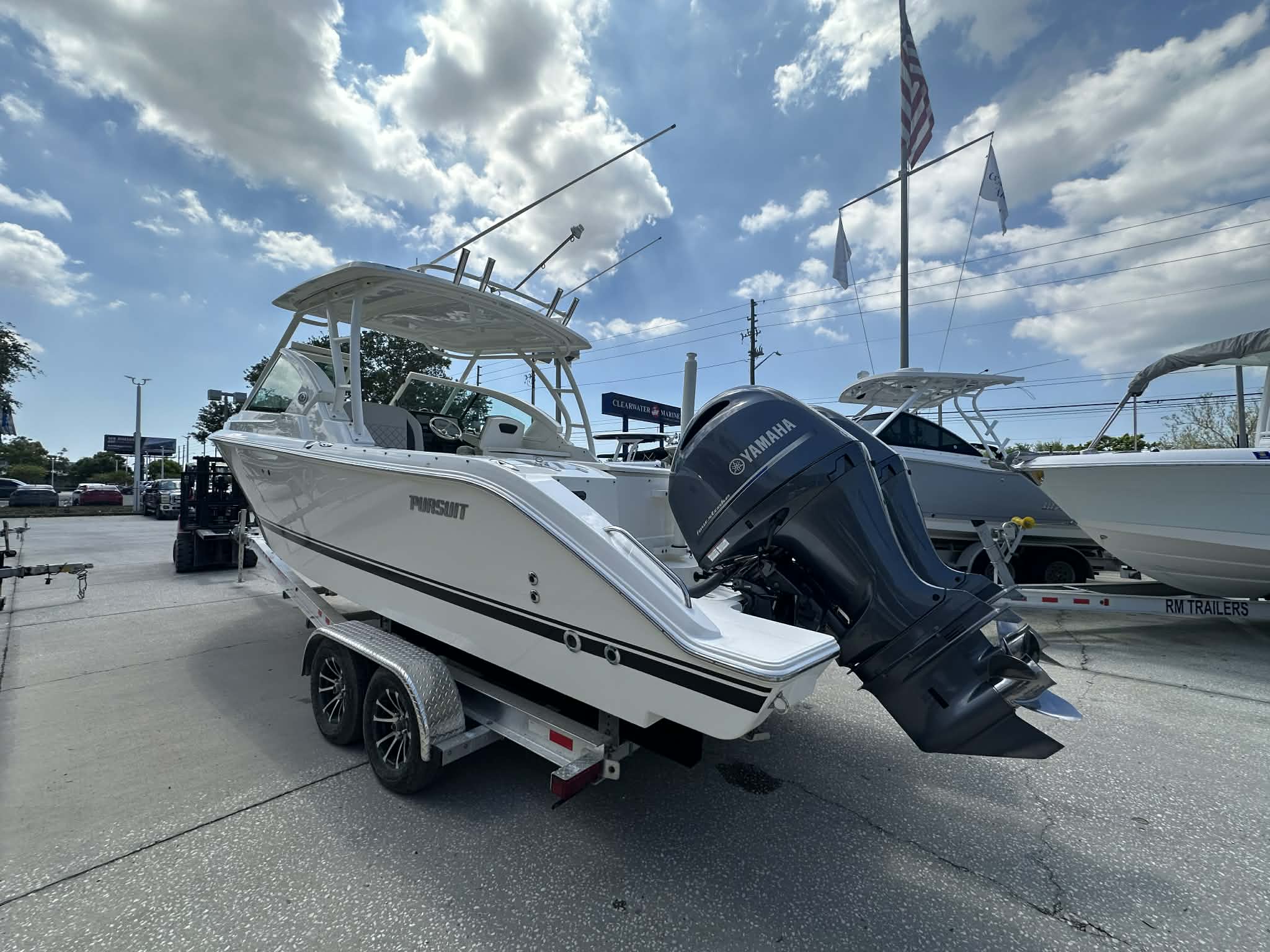 This Dual Console boat for sale is as practical as it is enjoyable. The Pursuit DC 266’s manageable size makes docking and trailering straightforward, even for those new to boating. Its efficient engines help keep fuel costs in check, allowing you to spend more time on the water and less time at the pump. The abundance of storage compartments means you can bring along everything you need for a full day of fun, from fishing rods to picnic supplies.The walk-through windshield and wide beam make boarding and disembarking safe and easy, while the sturdy construction ensures durability in a variety of conditions. Whether you are navigating busy marinas or anchoring in a secluded cove, the Pursuit DC 266 offers the versatility and reliability you need for worry-free boating.