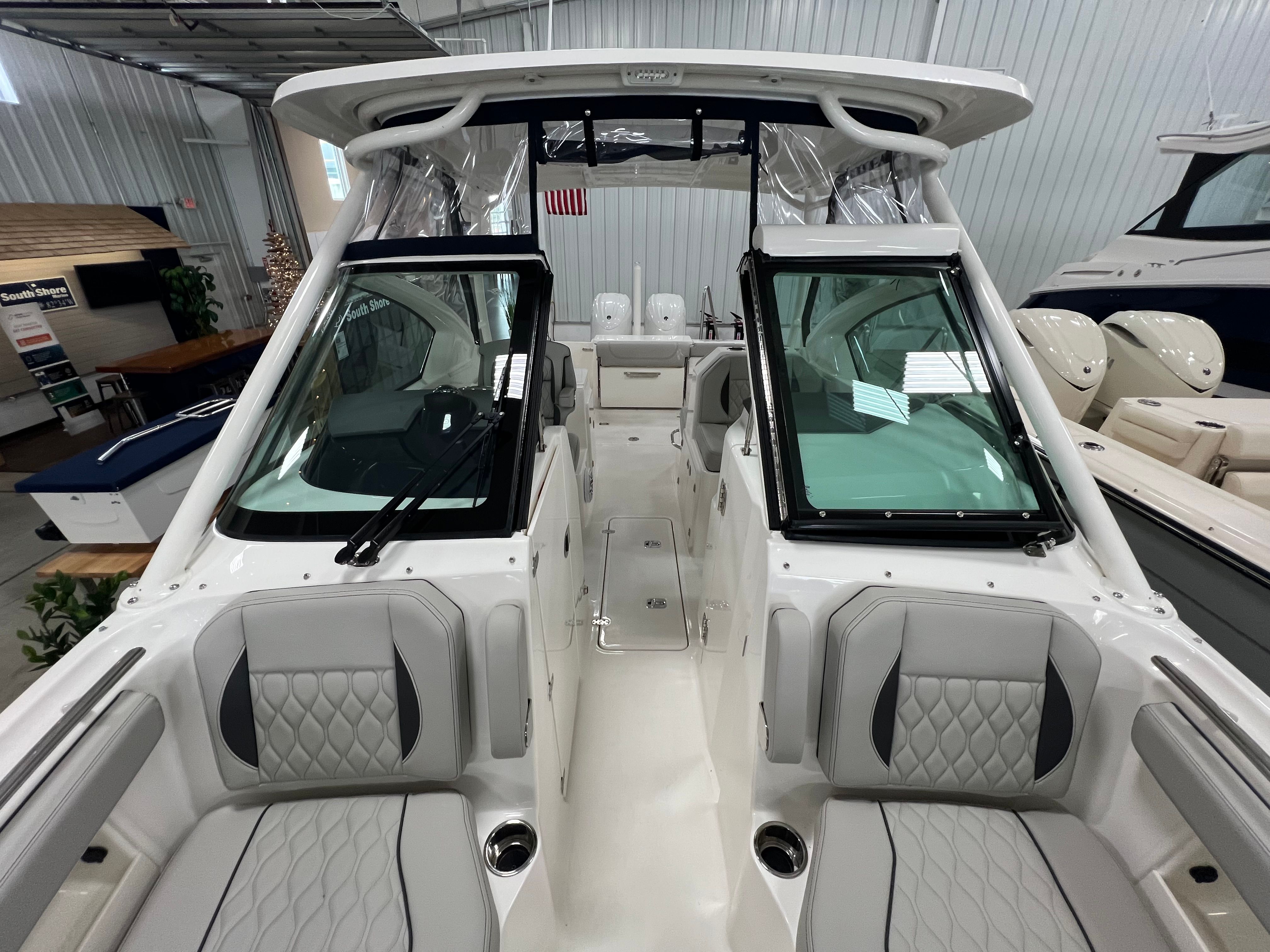 The Pursuit 266 DC is packed with features that cater to both relaxation and adventure. The dual console layout creates distinct spaces for both captain and passengers, offering ample seating and storage throughout the boat. The spacious cockpit is designed for socializing, with comfortable seating arrangements that make it easy to entertain friends and family. The bow area provides additional seating, perfect for soaking up the sun or enjoying a quiet moment on the water. Every inch of the Pursuit 266 DC is thoughtfully designed to maximize usability and enjoyment. The ergonomic helm station ensures that the captain has easy access to all controls and navigation equipment, while the wide walk-through windshield allows for seamless movement between the bow and cockpit areas. The boat’s generous beam enhances stability and provides plenty of room for everyone on board to stretch out and relax.