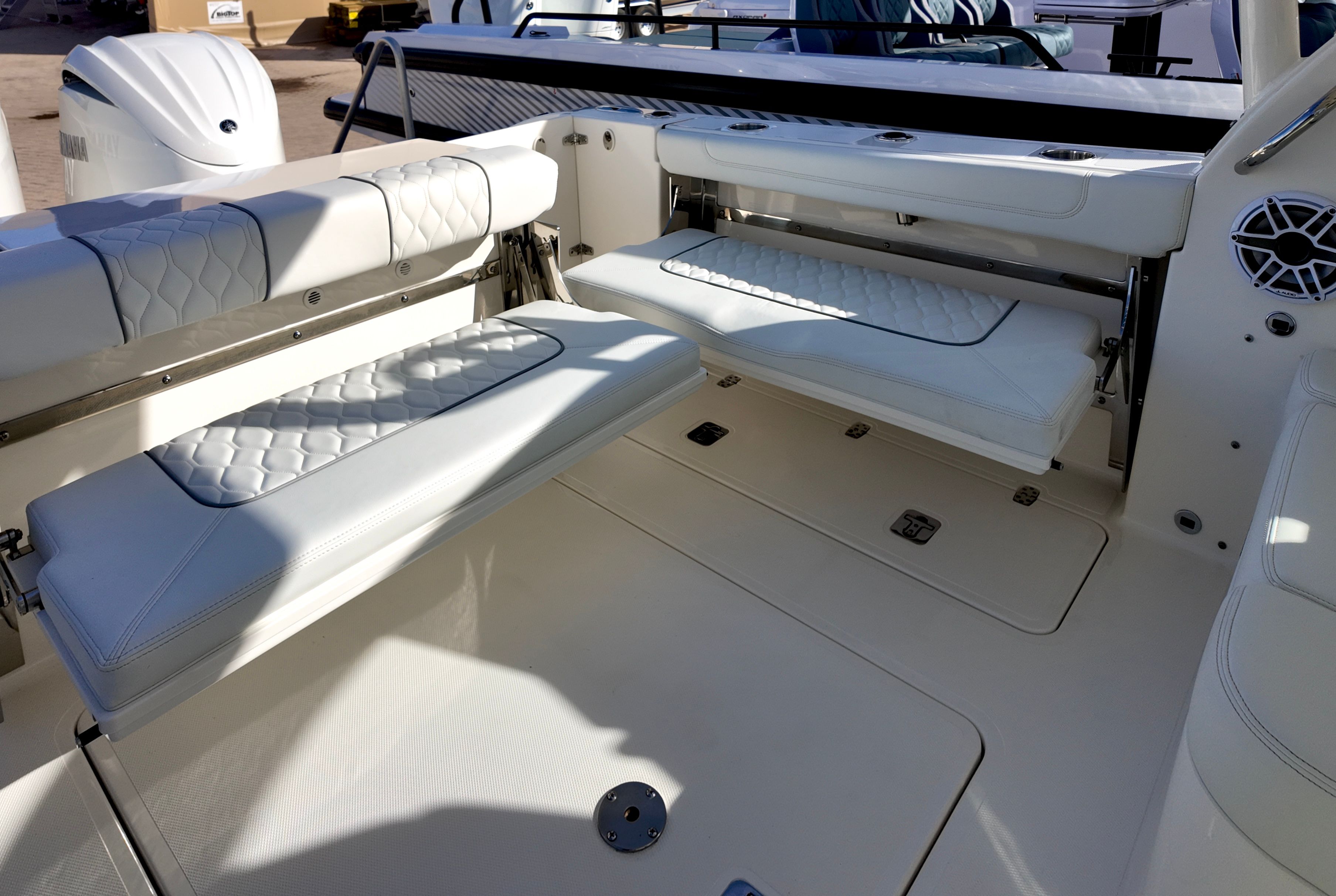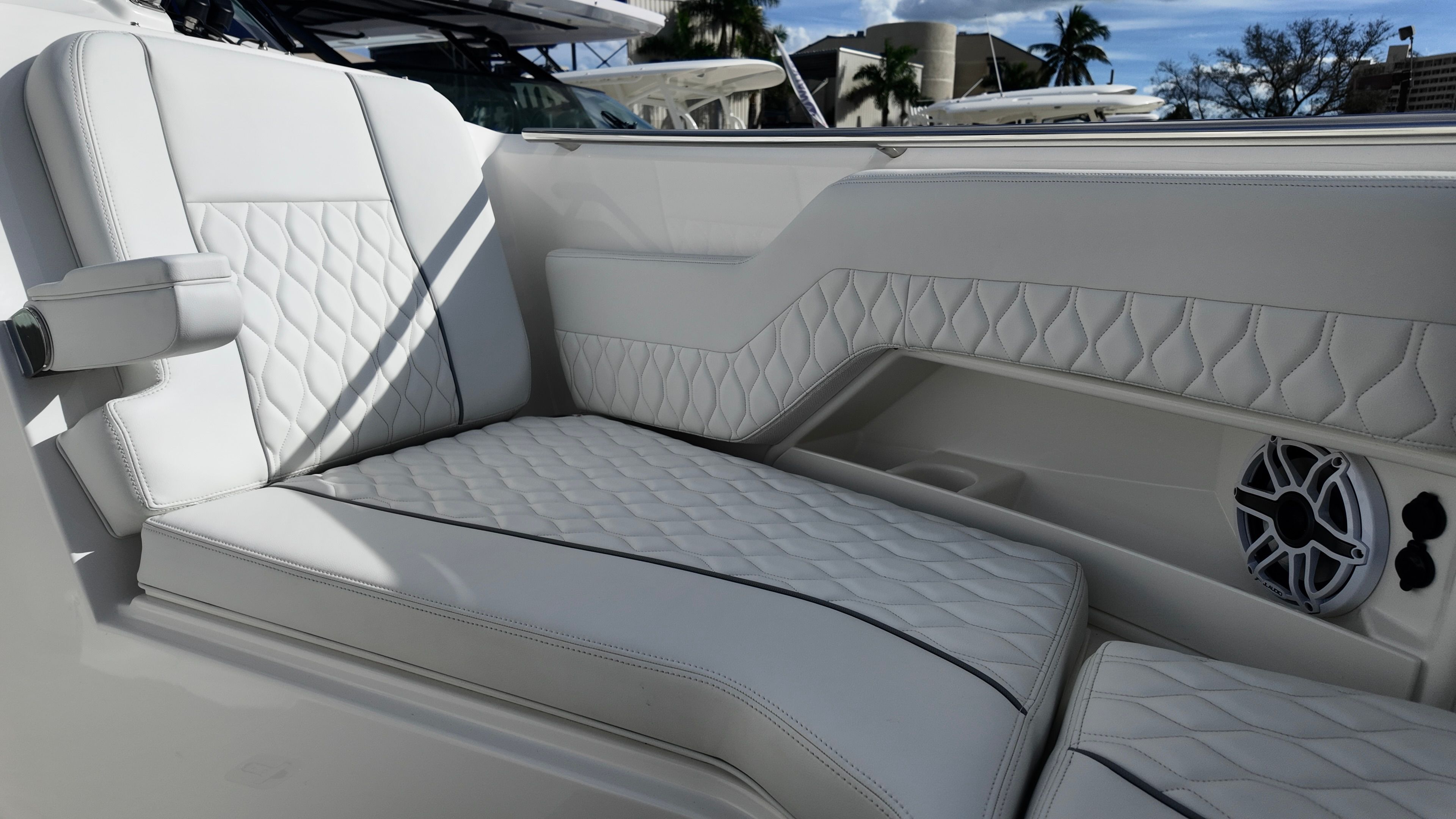 Powering the Pursuit DC 306 are twin Yamaha F300XBS2 engines, delivering a combined 600 horsepower. This impressive setup ensures exhilarating acceleration, smooth cruising, and reliable performance in a variety of conditions. The Yamaha engines are renowned for their efficiency and durability, making them a top choice for boaters who demand both power and peace of mind. With Yamaha Joystick Control featuring Full Maneuverability, Set Point, and Autopilot, docking and navigating tight spaces becomes effortless, allowing you to focus on enjoying your time on the water. Whether you are cruising along the coastline or heading offshore for a day of fishing, the DC 306 provides the performance and handling you need for a memorable experience.