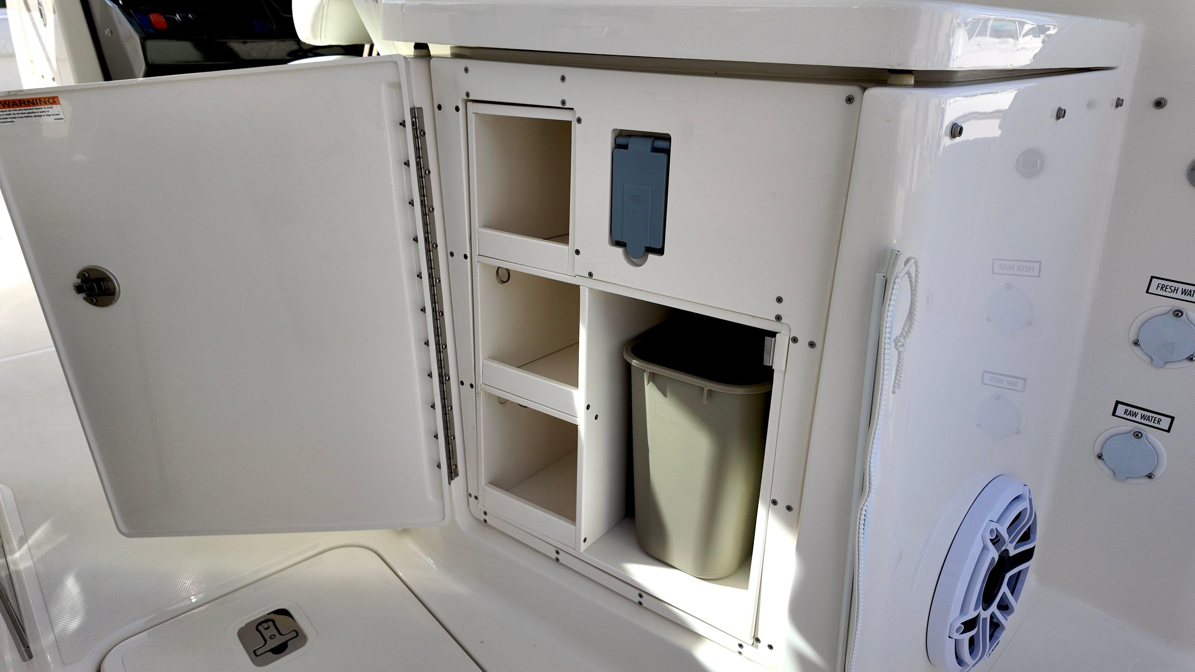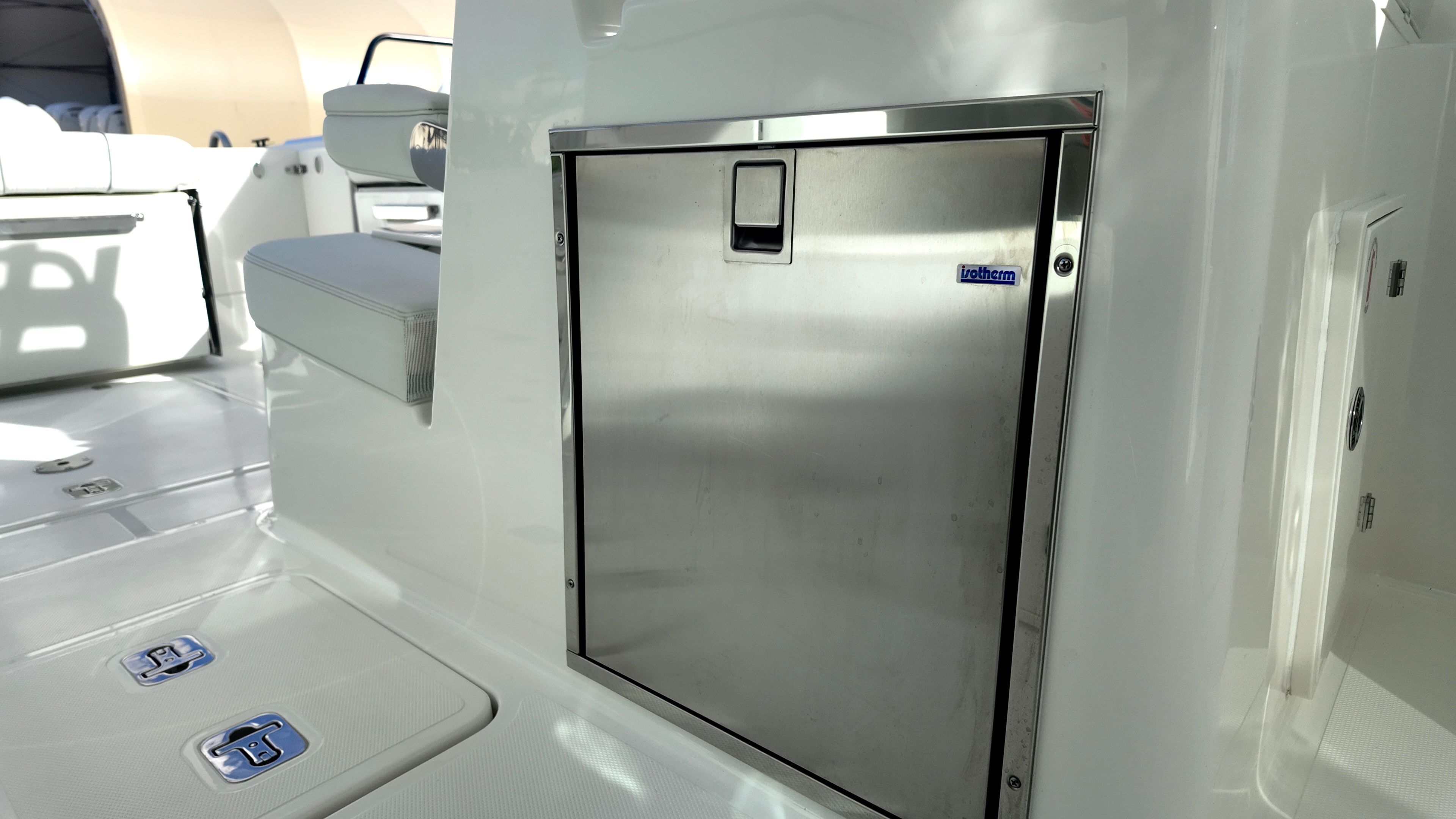 - 12v 2.3 cubic ft Refrigerator/Freezer, Stainless Steel (replaces Standard Tackle Storage) (Requires Dockside Power option)