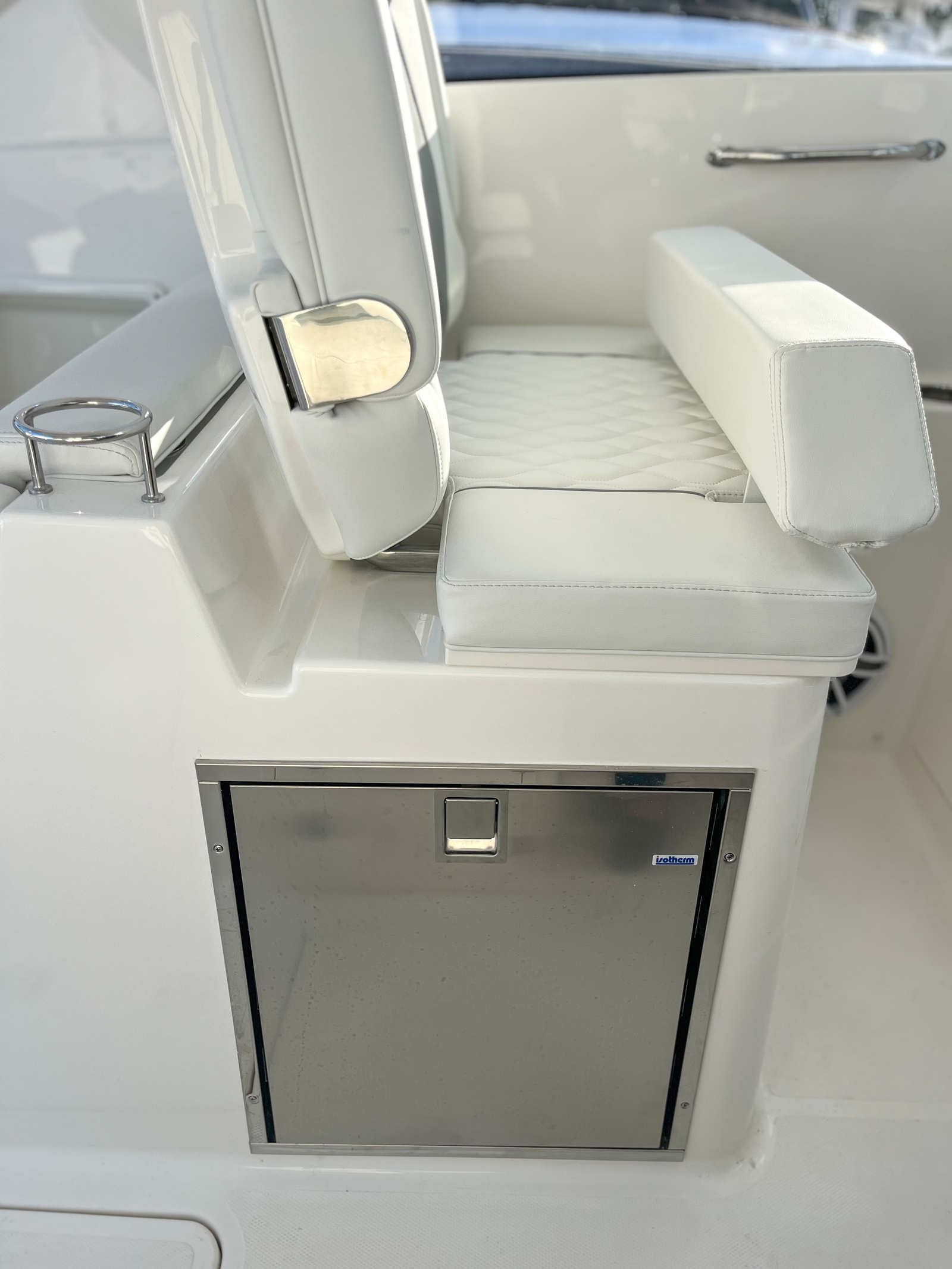 - 12v 2.3 cubic ft Refrigerator/Freezer, Stainless Steel (replaces Standard Tackle Storage) (Requires Dockside Power option)
