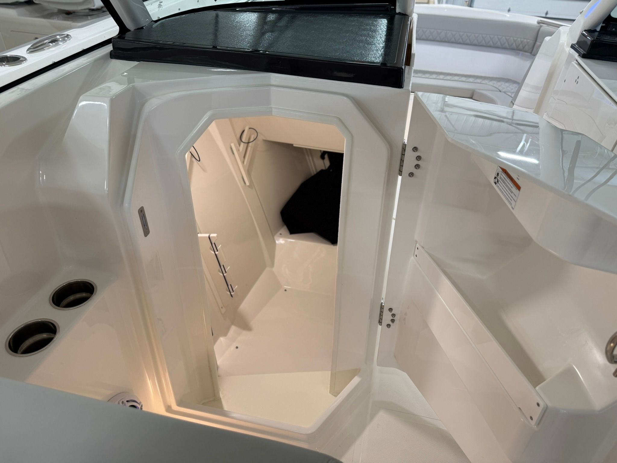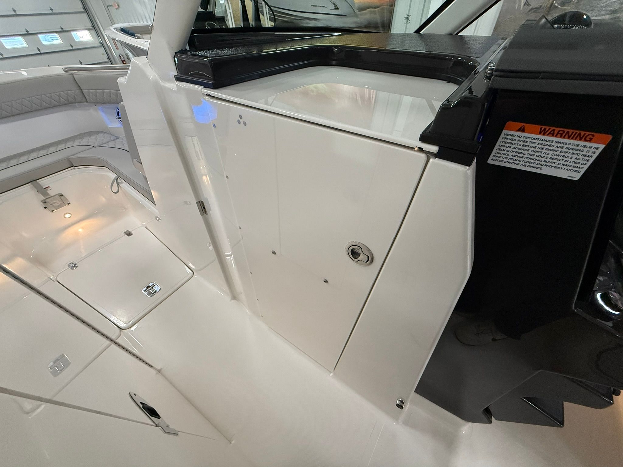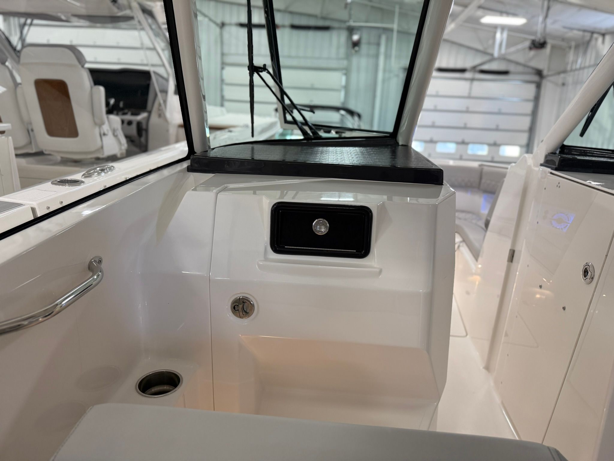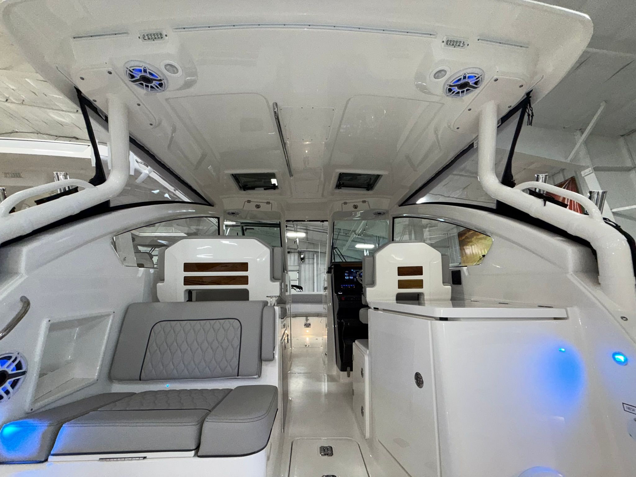 The Pursuit 326 DC is as practical as it is stylish. Thoughtful storage compartments make it easy to keep the deck clutter-free, while the intuitive layout simplifies movement around the boat. Docking is a breeze thanks to the responsive handling and well-placed cleats, making it easy to tie up at your favorite marina or waterfront restaurant. The efficient hull design contributes to fuel savings, allowing you to spend more time on the water and less time refueling. Whether you are planning a quick day trip or an extended adventure, this dual console boat for sale is equipped to meet your needs with ease and convenience.