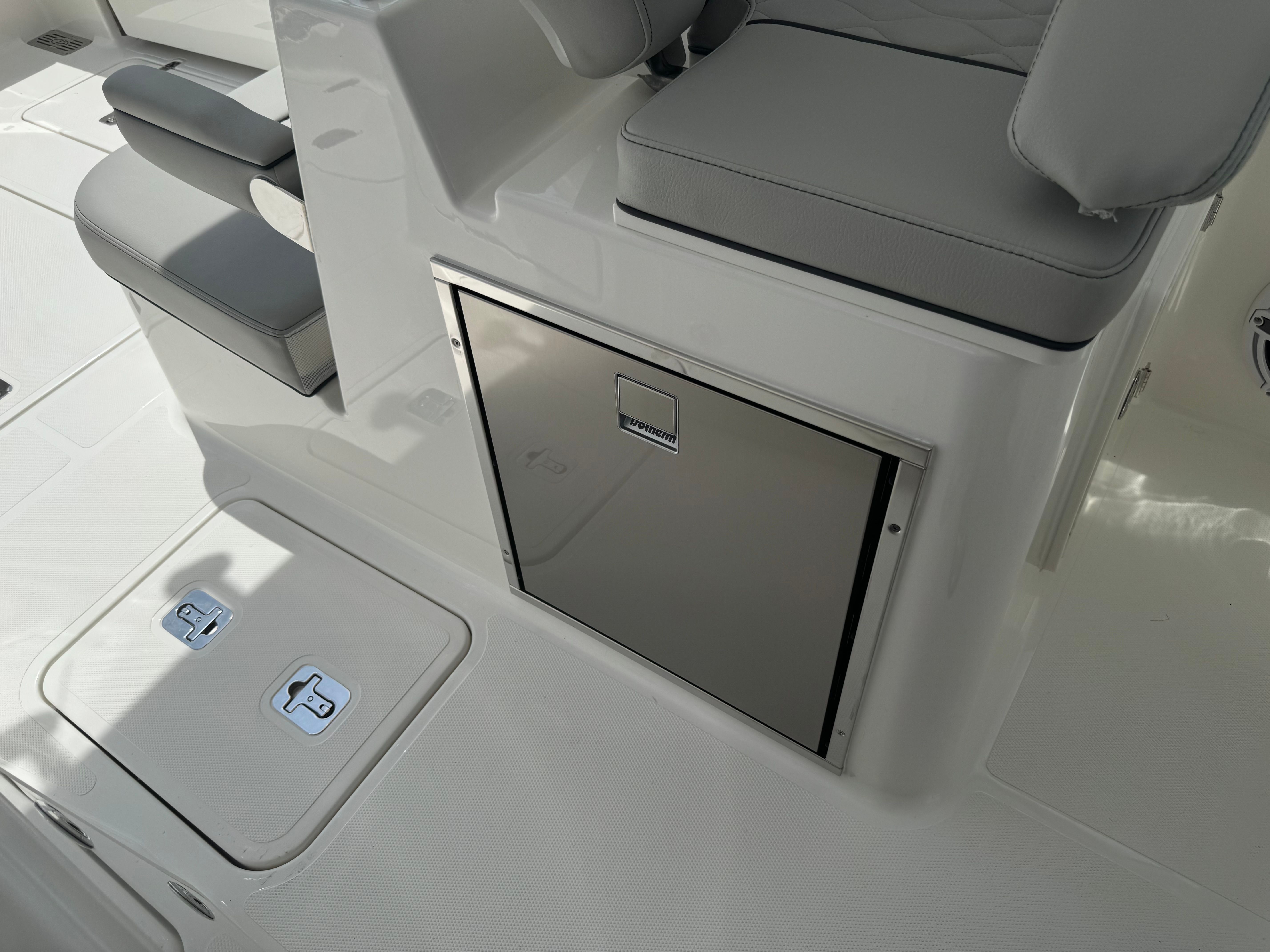 - 12v 2.3 cubic ft Refrigerator/Freezer, Stainless Steel (replaces Standard Tackle Storage) (Requires Dockside Power option)