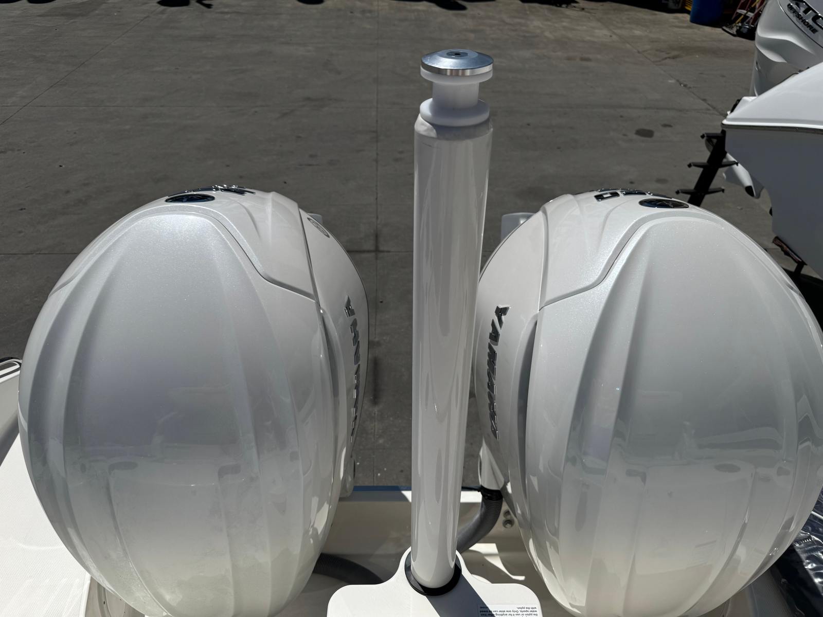 - Twin Yamaha Digital F350 V6 Offshore (Pearlescent White) w/Integrated Digital Electric Steering (DES) and Helm Master EX Digital Electronic Control (DEC) (does not include joystick control), Multifunction Display Interface and Manual Engine Flushing System
