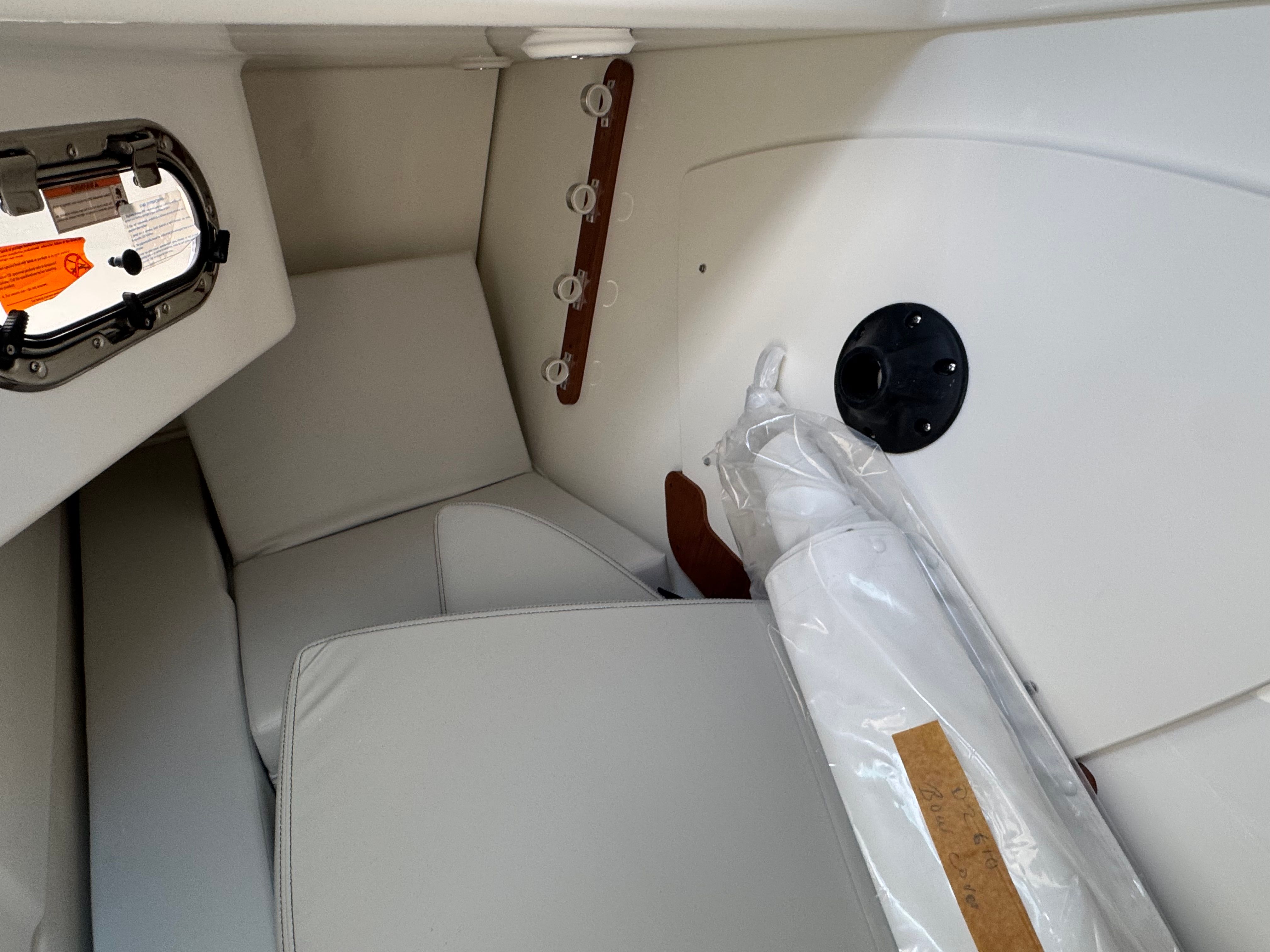 The Pursuit DC 326 is packed with special features designed to enhance your boating experience. The 110V/60Hz cockpit grill with drip pan lets you prepare delicious meals right on deck, perfect for entertaining friends and family. The 120V/60Hz generator (5.0kW Fischer Panda Genset) with a 16-gallon diesel tank provides reliable power for all your onboard systems, ensuring comfort and convenience wherever you go. The air conditioning package with reverse cycle (Cabin/Head 6,000 BTU, Cockpit 12,000 BTU) keeps the interior cool and comfortable, even on the hottest days, and is easily managed with the drop curtain. The bridge deck teak table with storage adds a touch of elegance and practicality, offering a perfect spot for dining, socializing, or simply relaxing with a view.