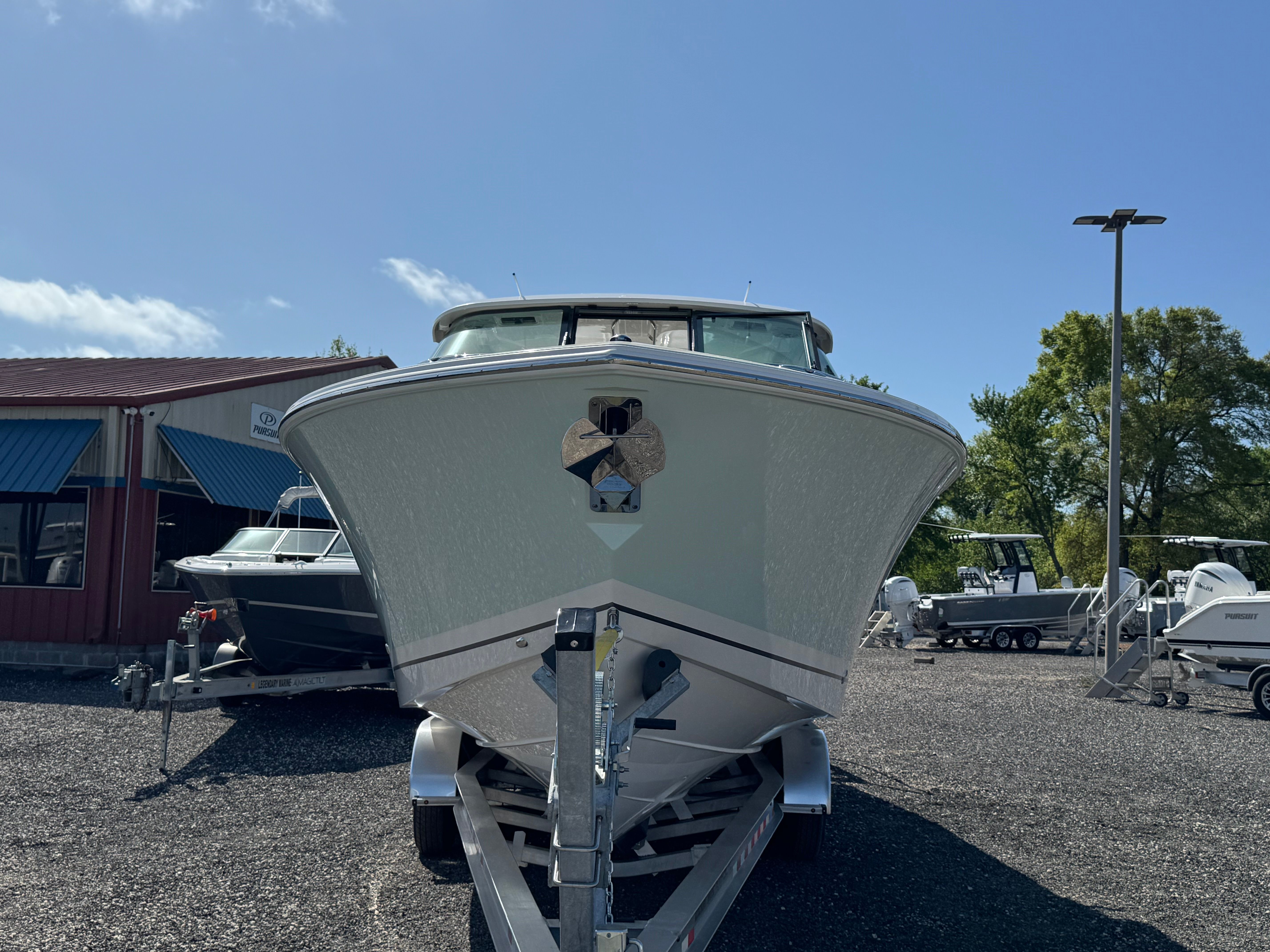 The Pursuit DC 326 is a 34.5-foot dual console boat that exemplifies modern craftsmanship and thoughtful engineering. Built for the 2026 season, this vessel showcases Pursuit’s commitment to quality, comfort, and style. The fresh white hull, accented by a sleek black bootstripe, creates a striking visual impression, while the carbon helm and Coastal Sunrise interior provide a sophisticated and inviting atmosphere. As a brand-new model, the DC 326 offers the latest advancements in marine technology, ensuring you enjoy every moment on the water with confidence and ease.