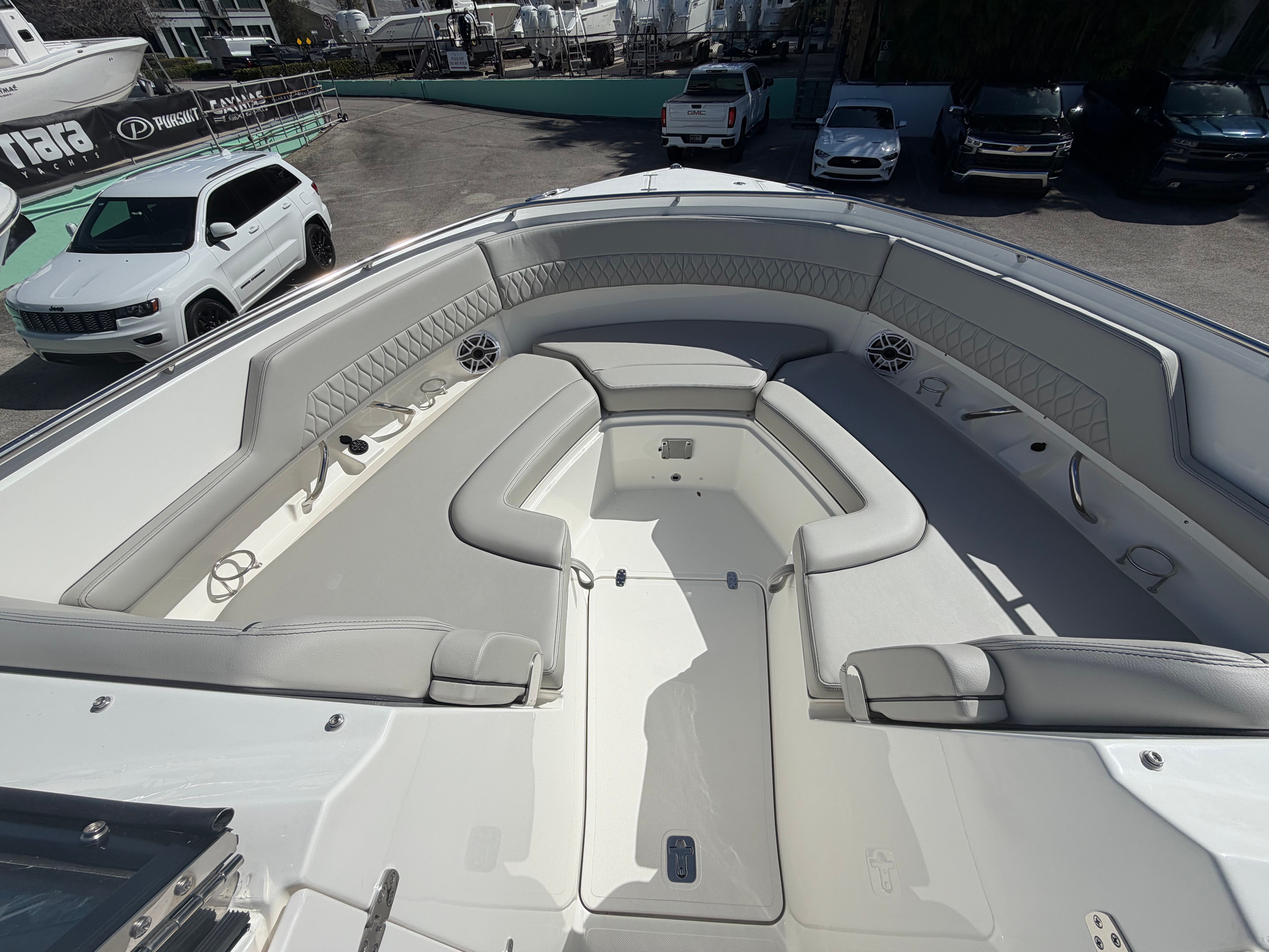 Owning the Pursuit DC 326 means embracing a lifestyle of fun, relaxation, and adventure. The spacious dual console layout offers plenty of seating and lounging areas, making it ideal for socializing with family and friends. The thoughtfully designed interior ensures everyone on board enjoys maximum comfort, whether you are sunbathing on deck or relaxing in the air-conditioned cabin. The versatile design allows for a wide range of activities, from water sports and fishing to leisurely sunset cruises. With its powerful engines and advanced maneuverability, you can explore new destinations with confidence and ease.