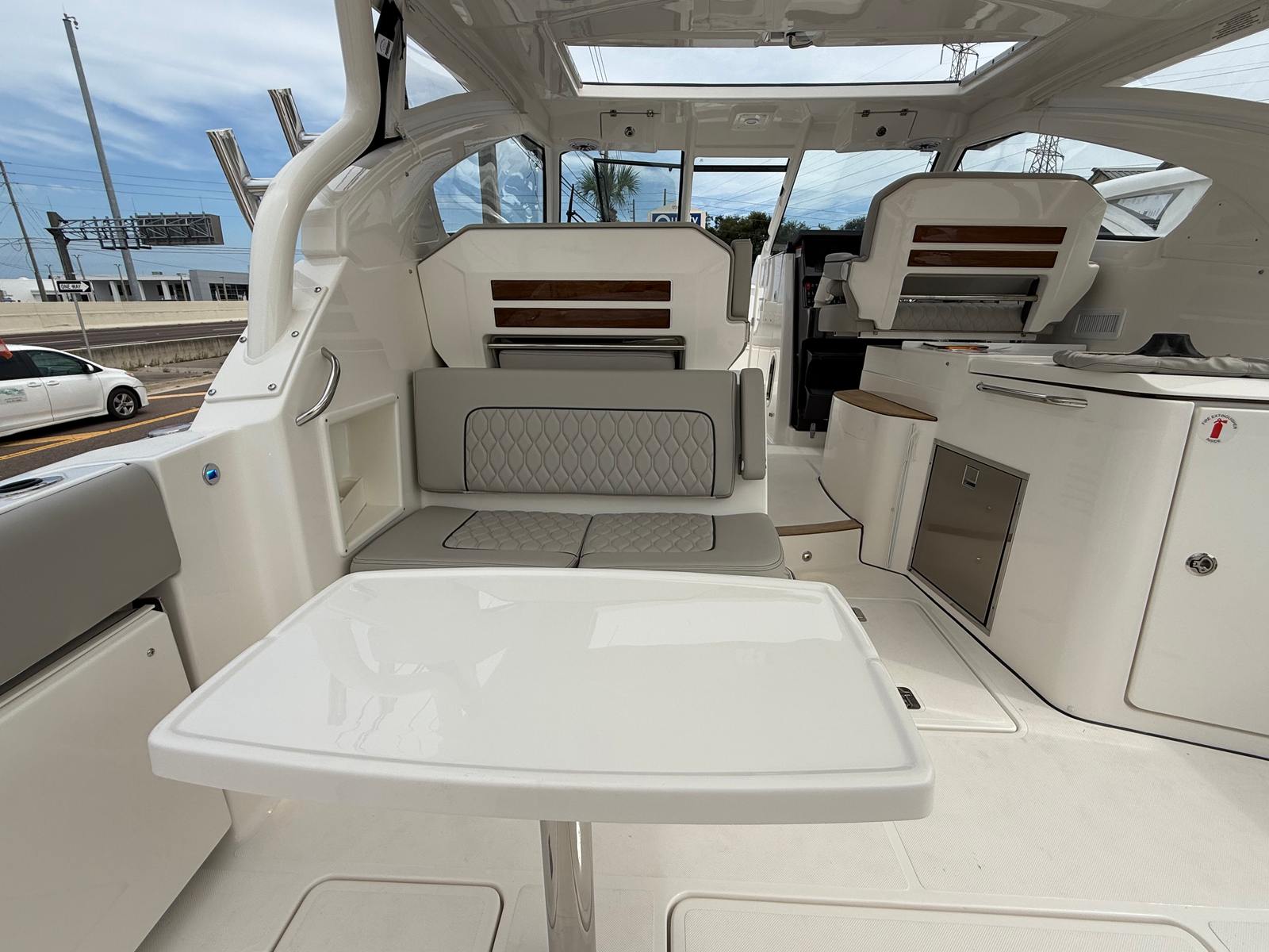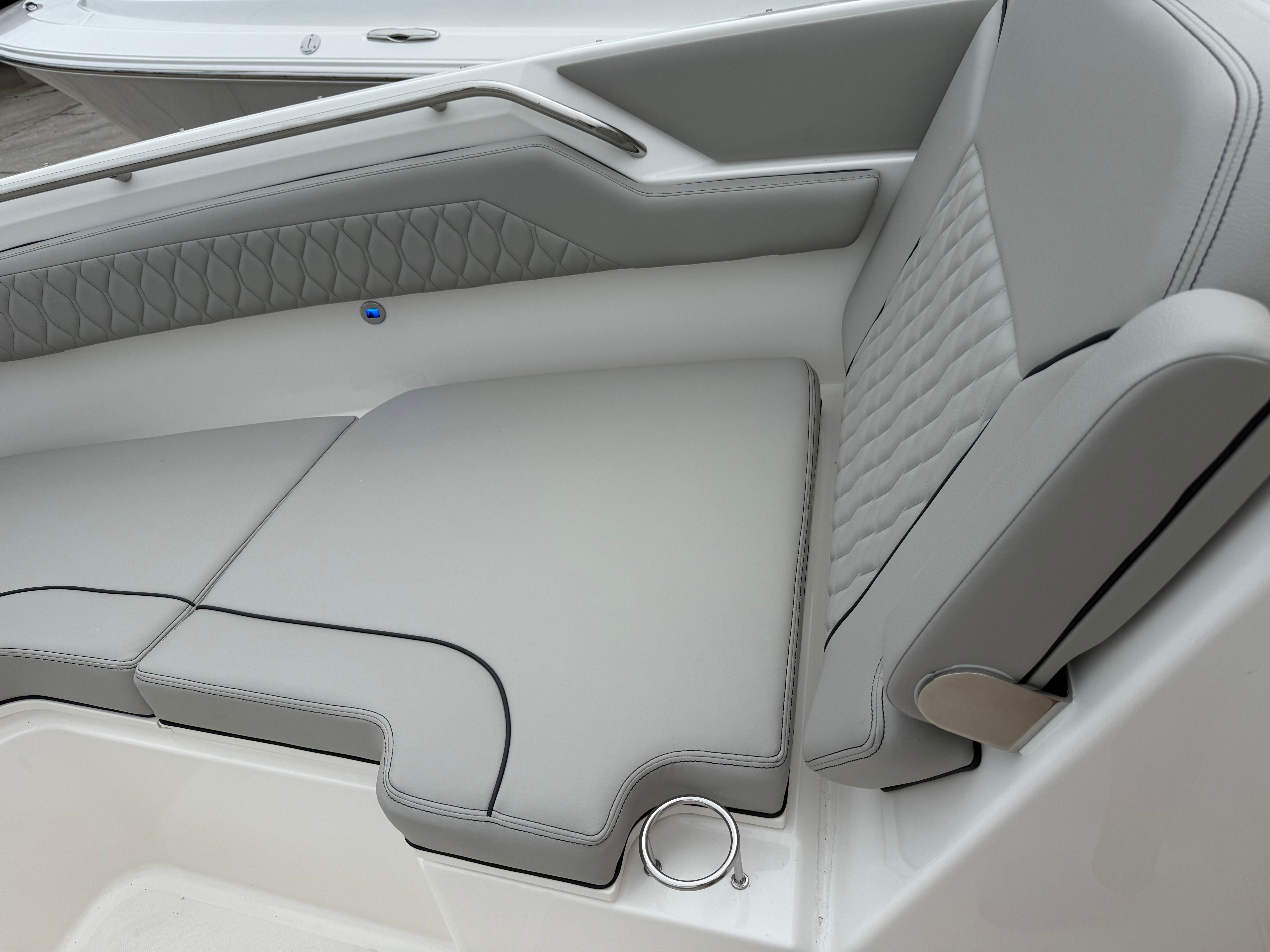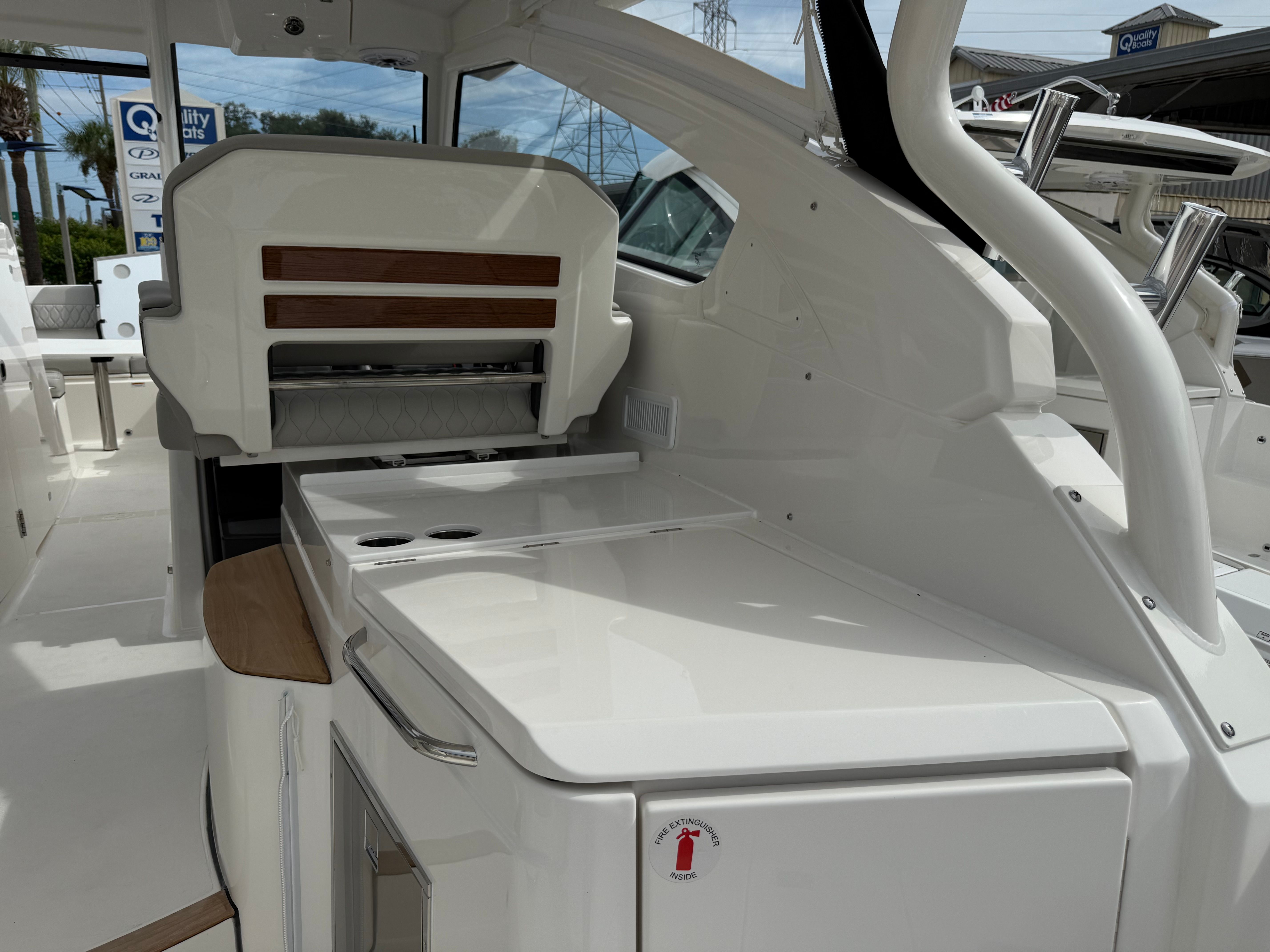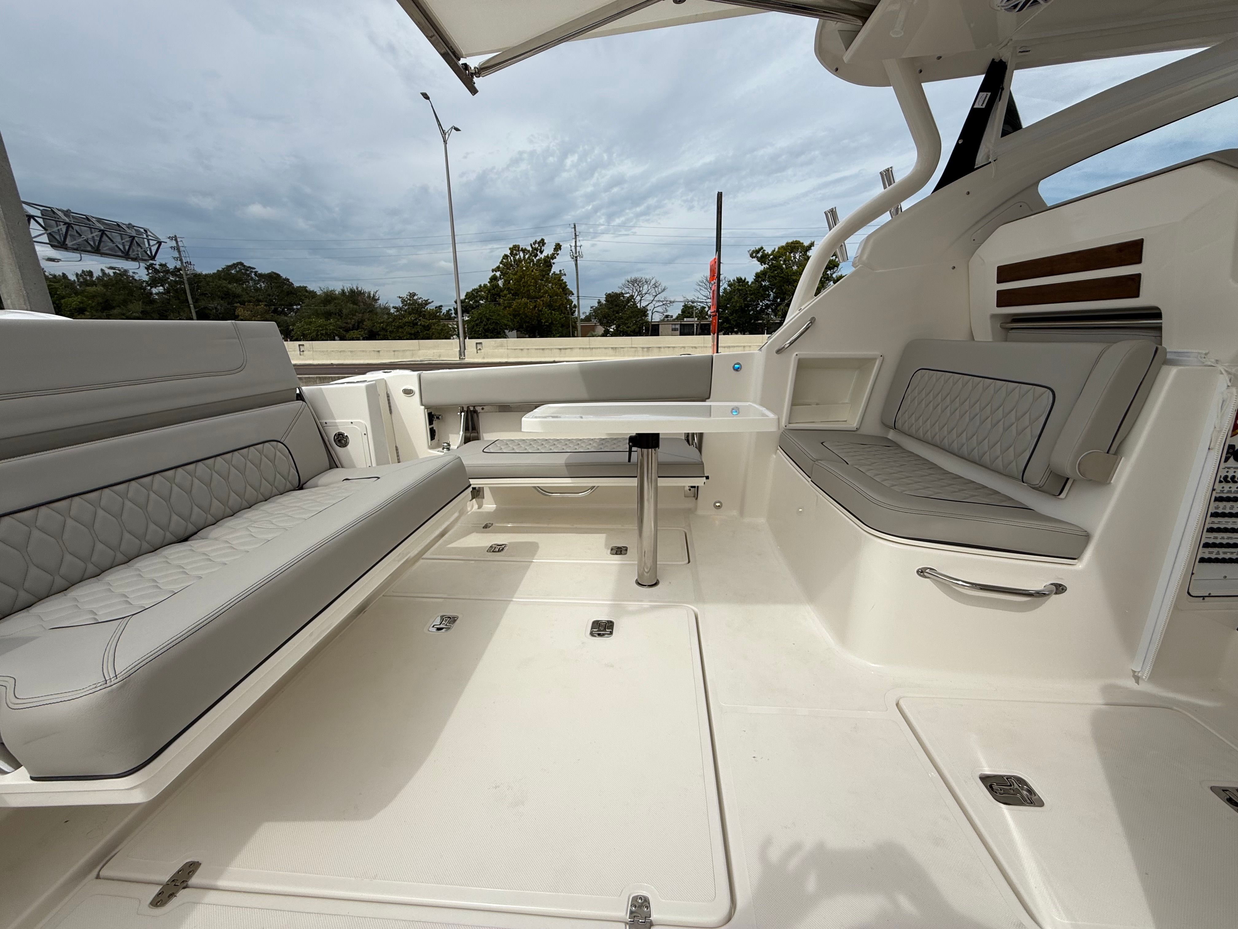 The Pursuit DC 365 is as practical as it is luxurious. Its generous length and smart layout offer ample storage for gear, supplies, and personal items, keeping the deck clutter-free and organized. Docking is simplified by the boat’s responsive handling and advanced navigation systems, making it easy to maneuver in tight spaces or busy marinas.Fuel efficiency is enhanced by the modern Yamaha engines, allowing you to spend more time on the water and less time refueling. The integrated tables and storage solutions make entertaining effortless, while the air-conditioned cockpit ensures comfort during long days at sea. Whether you’re planning a fishing trip, a family picnic, or a sunset cruise, the DC 365 adapts to your needs, providing a seamless and enjoyable boating experience.