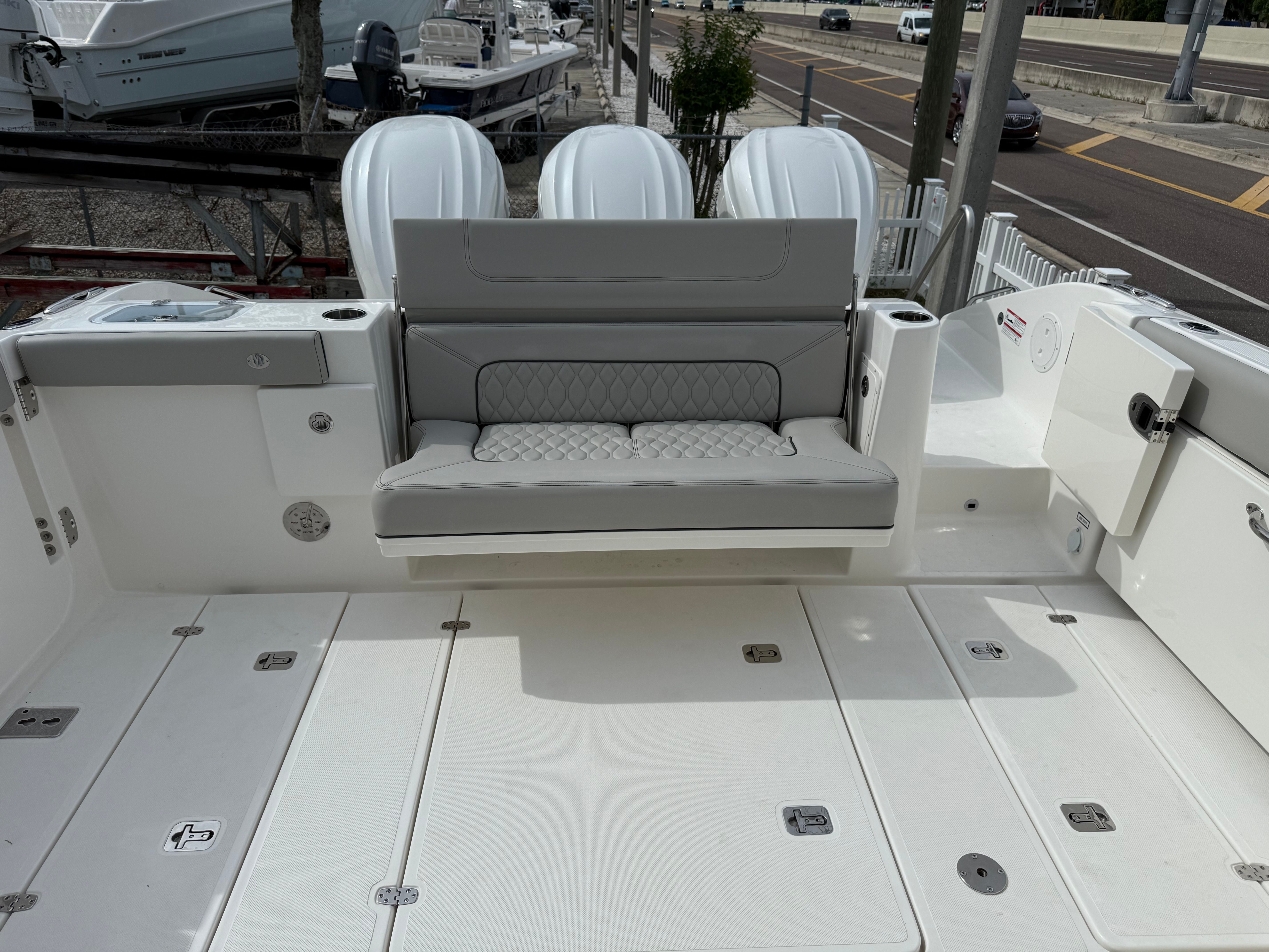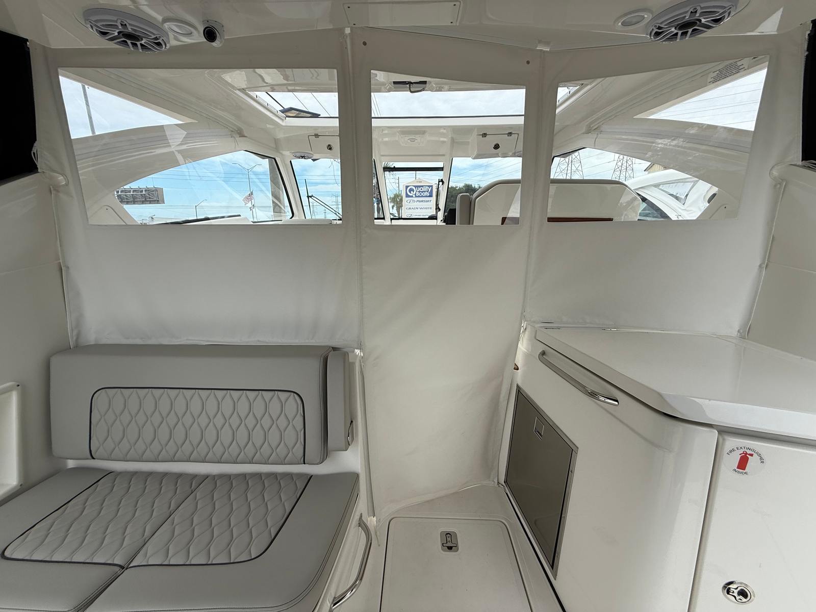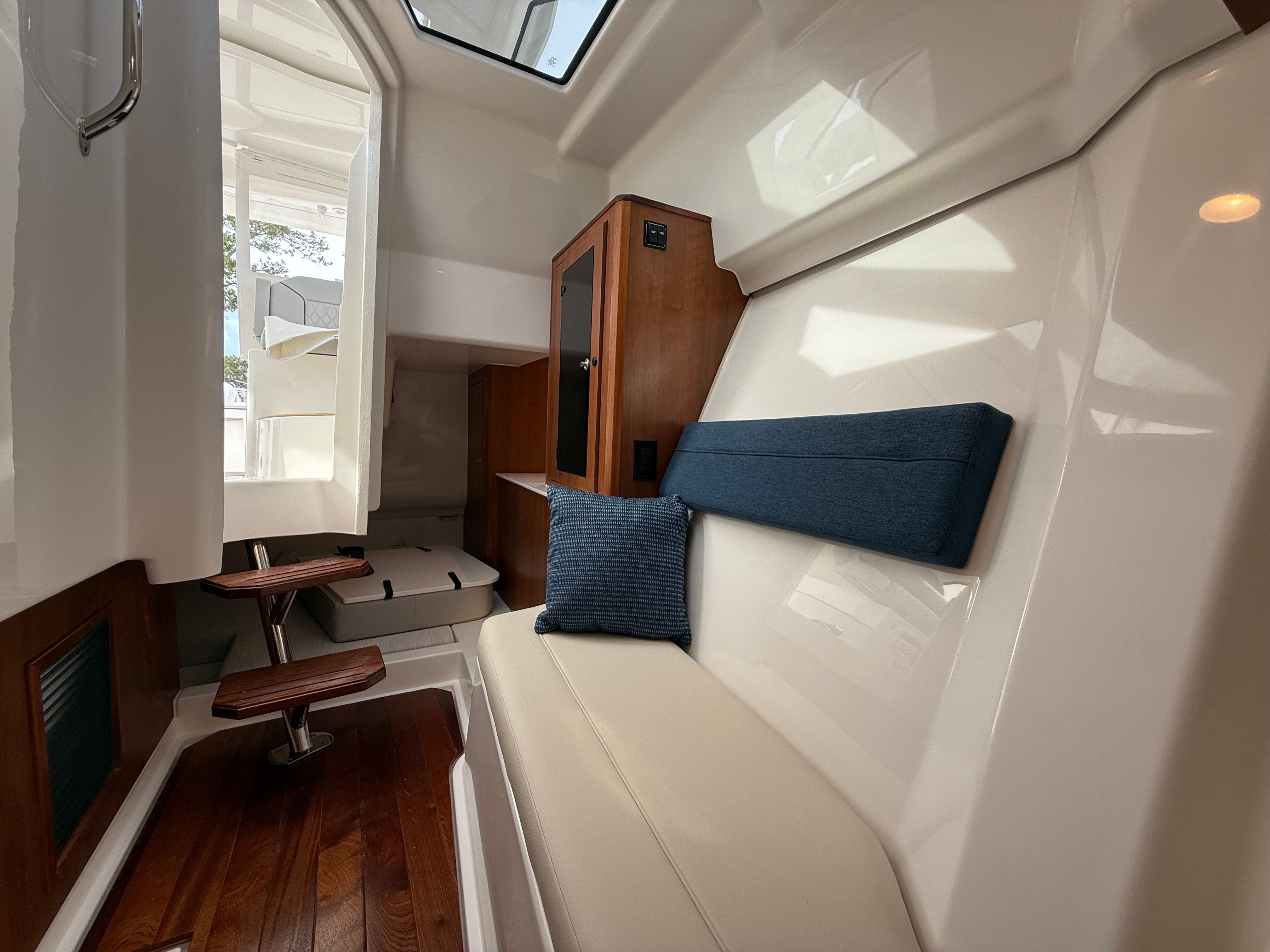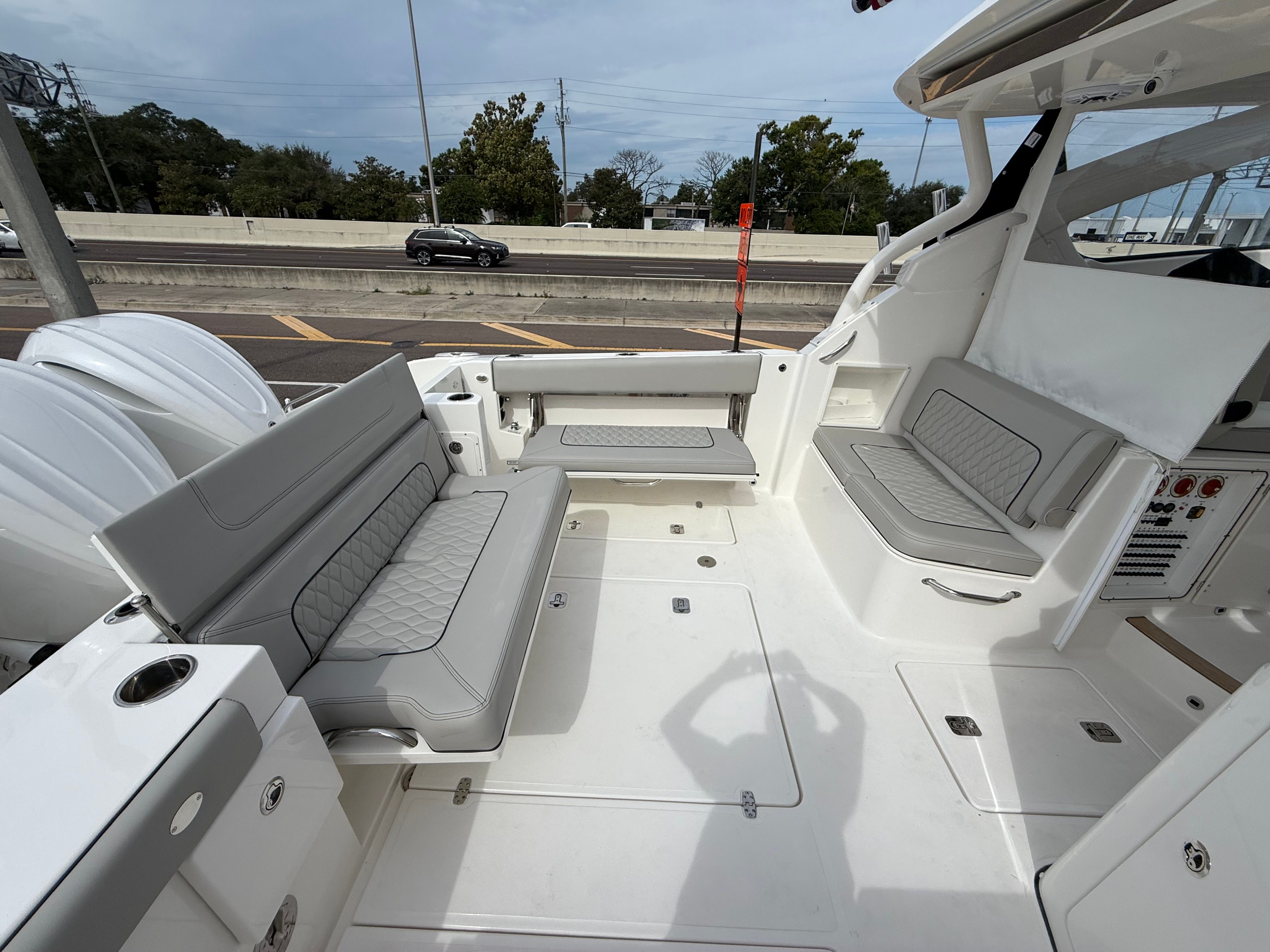 The Pursuit DC 365 is as practical as it is luxurious. Its generous length and smart layout offer ample storage for gear, supplies, and personal items, keeping the deck clutter-free and organized. Docking is simplified by the boat’s responsive handling and advanced navigation systems, making it easy to maneuver in tight spaces or busy marinas.Fuel efficiency is enhanced by the modern Yamaha engines, allowing you to spend more time on the water and less time refueling. The integrated tables and storage solutions make entertaining effortless, while the air-conditioned cockpit ensures comfort during long days at sea. Whether you’re planning a fishing trip, a family picnic, or a sunset cruise, the DC 365 adapts to your needs, providing a seamless and enjoyable boating experience.
