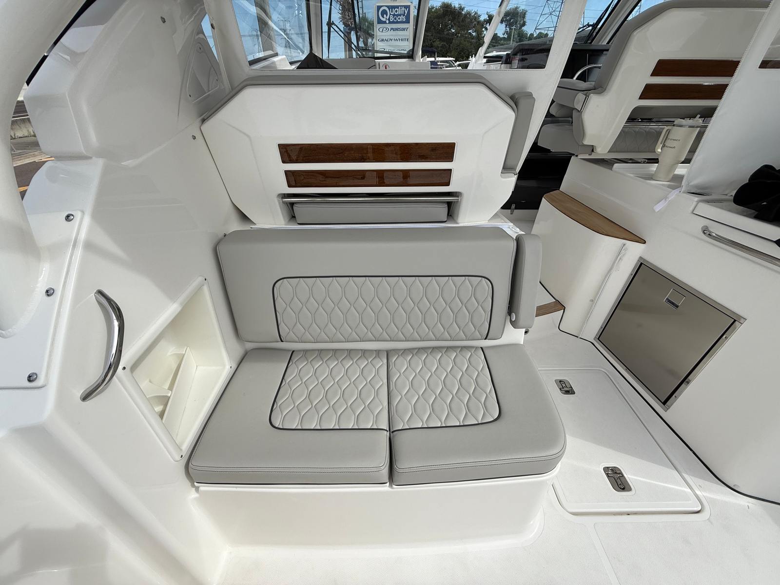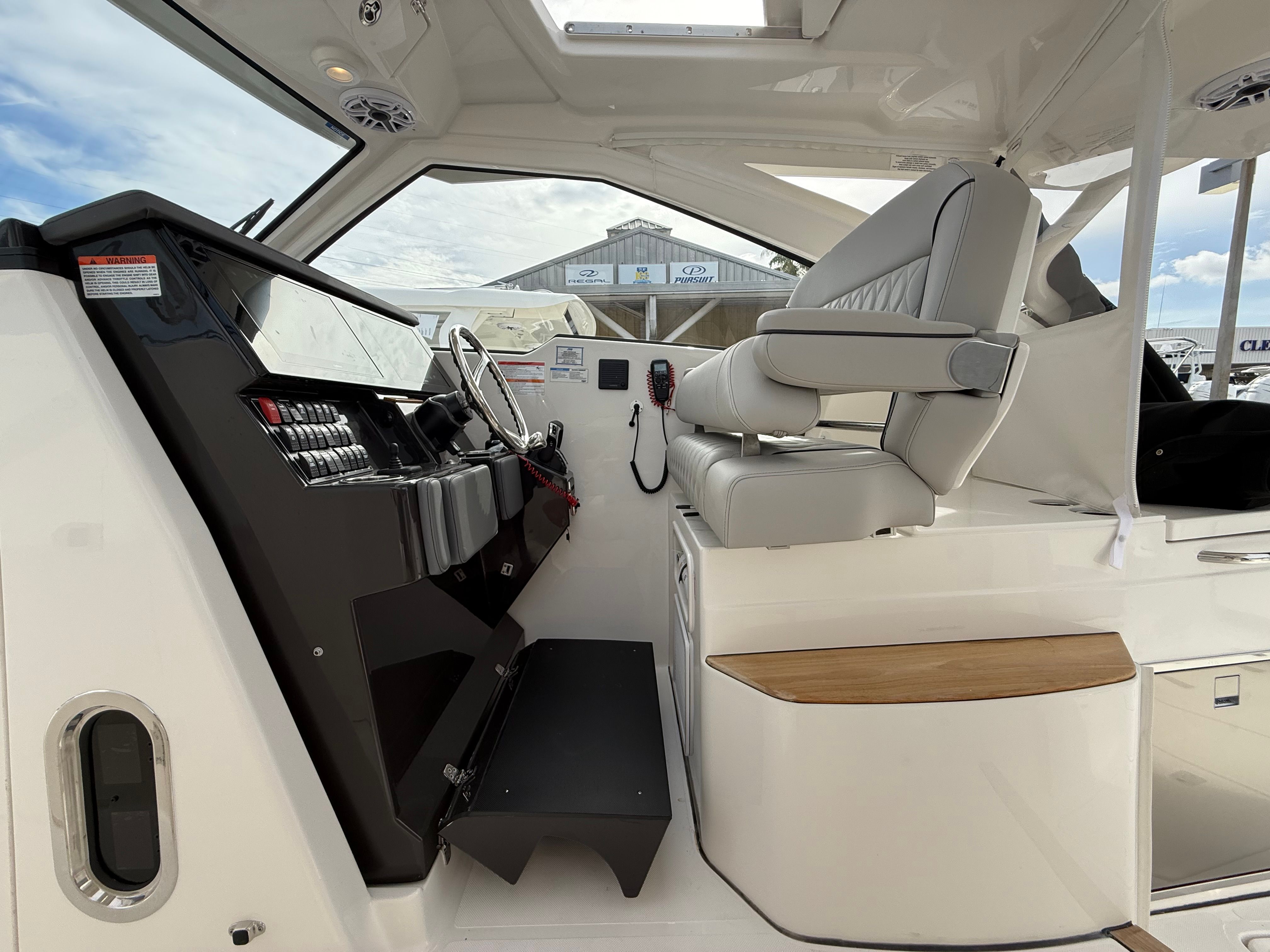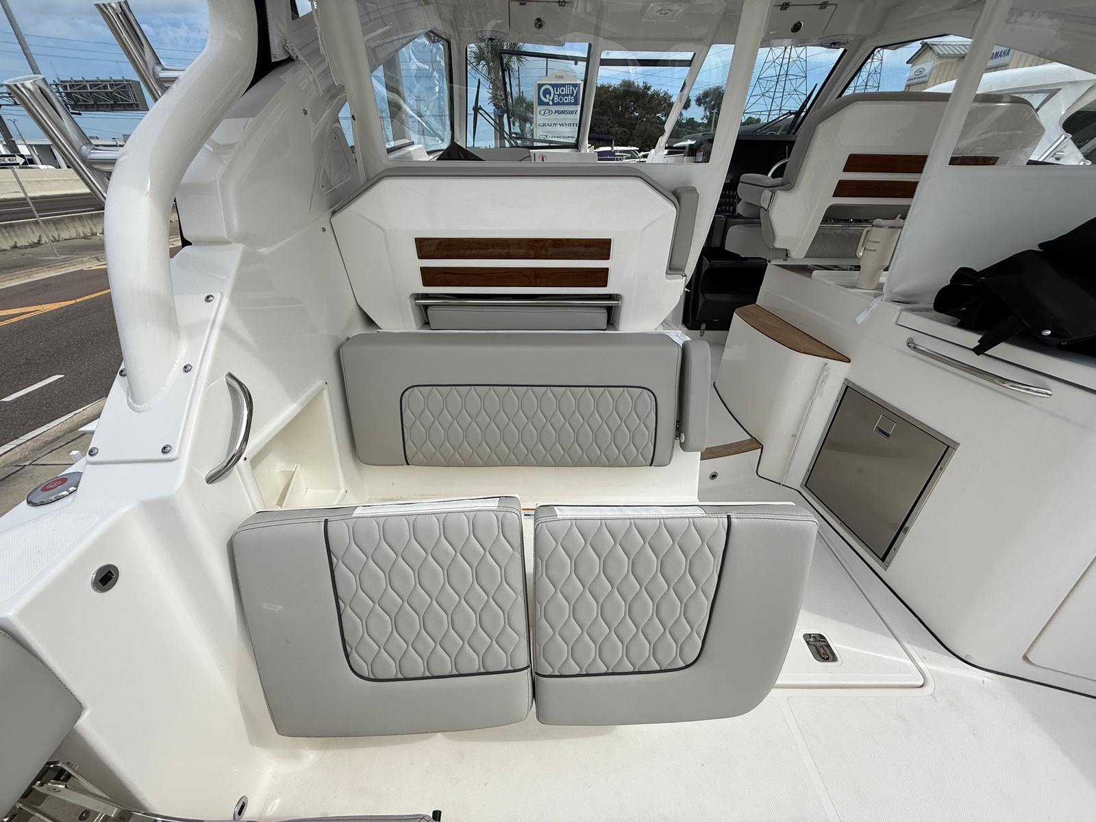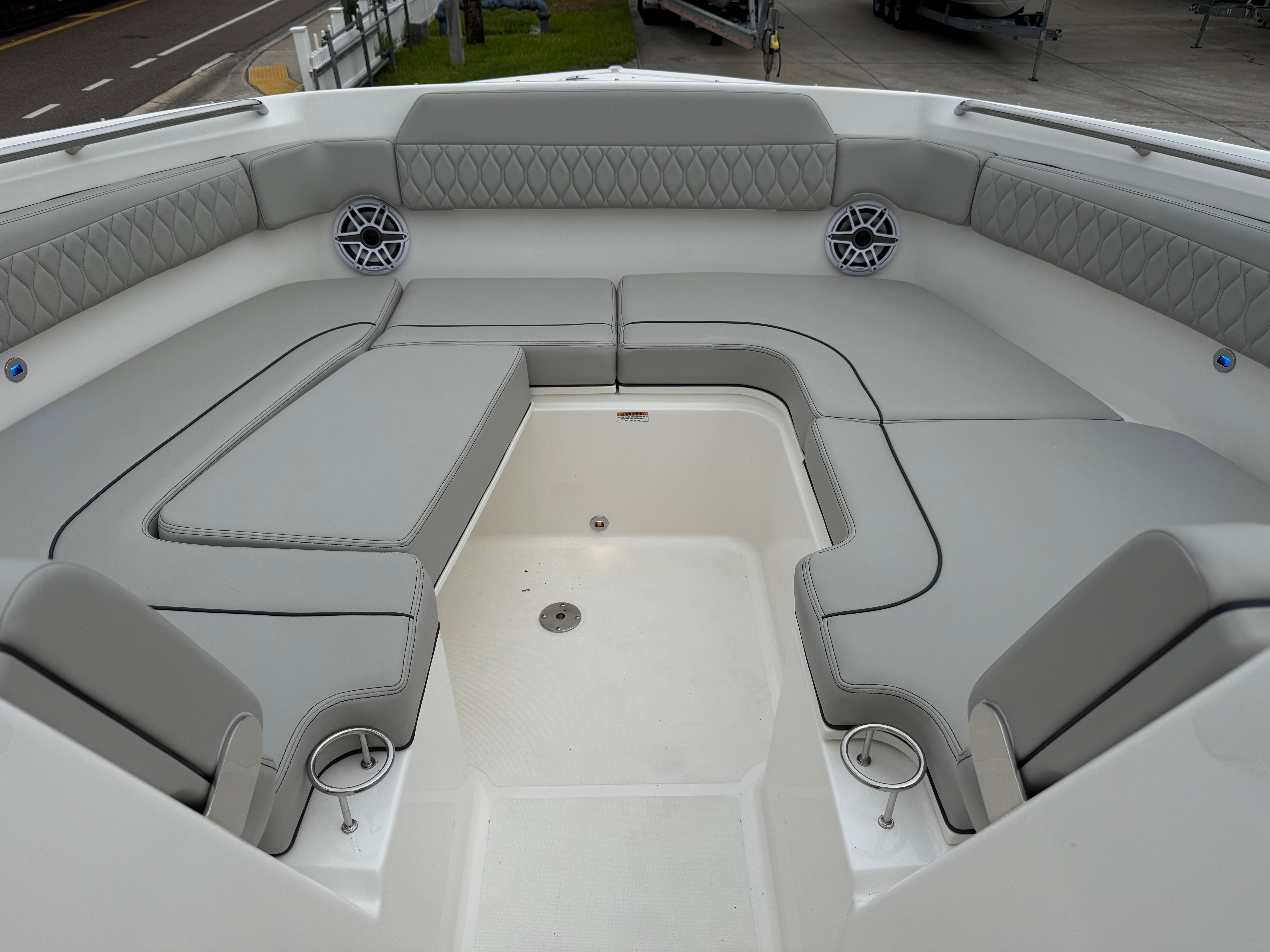 The Pursuit DC 365 is as practical as it is luxurious. Its generous length and smart layout offer ample storage for gear, supplies, and personal items, keeping the deck clutter-free and organized. Docking is simplified by the boat’s responsive handling and advanced navigation systems, making it easy to maneuver in tight spaces or busy marinas.Fuel efficiency is enhanced by the modern Yamaha engines, allowing you to spend more time on the water and less time refueling. The integrated tables and storage solutions make entertaining effortless, while the air-conditioned cockpit ensures comfort during long days at sea. Whether you’re planning a fishing trip, a family picnic, or a sunset cruise, the DC 365 adapts to your needs, providing a seamless and enjoyable boating experience.