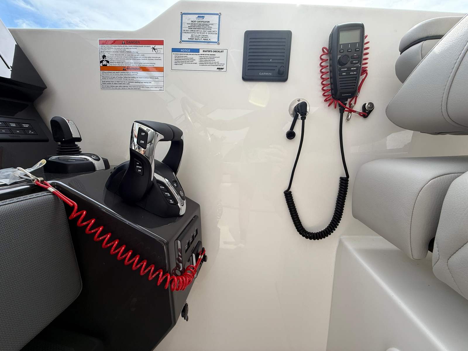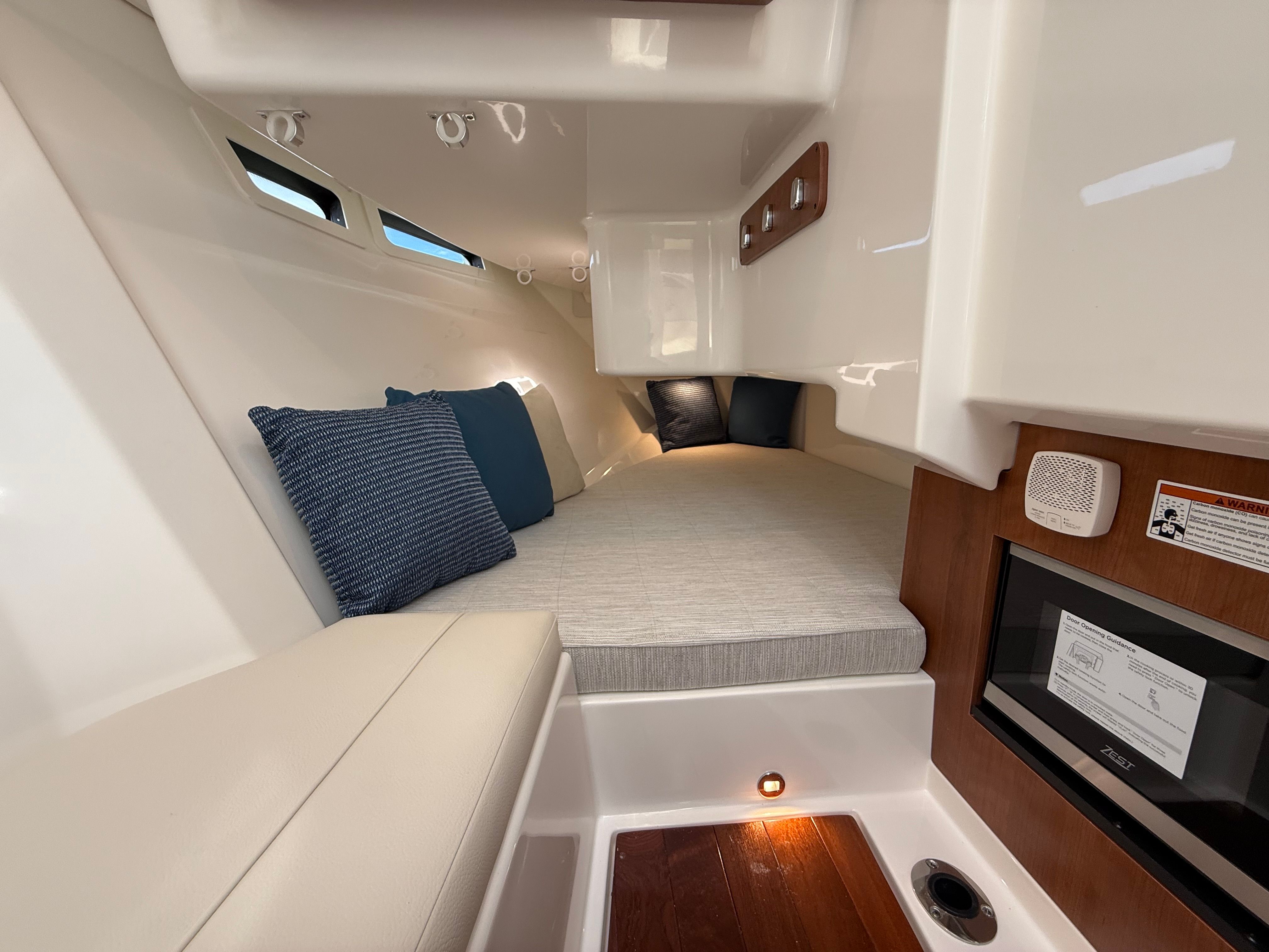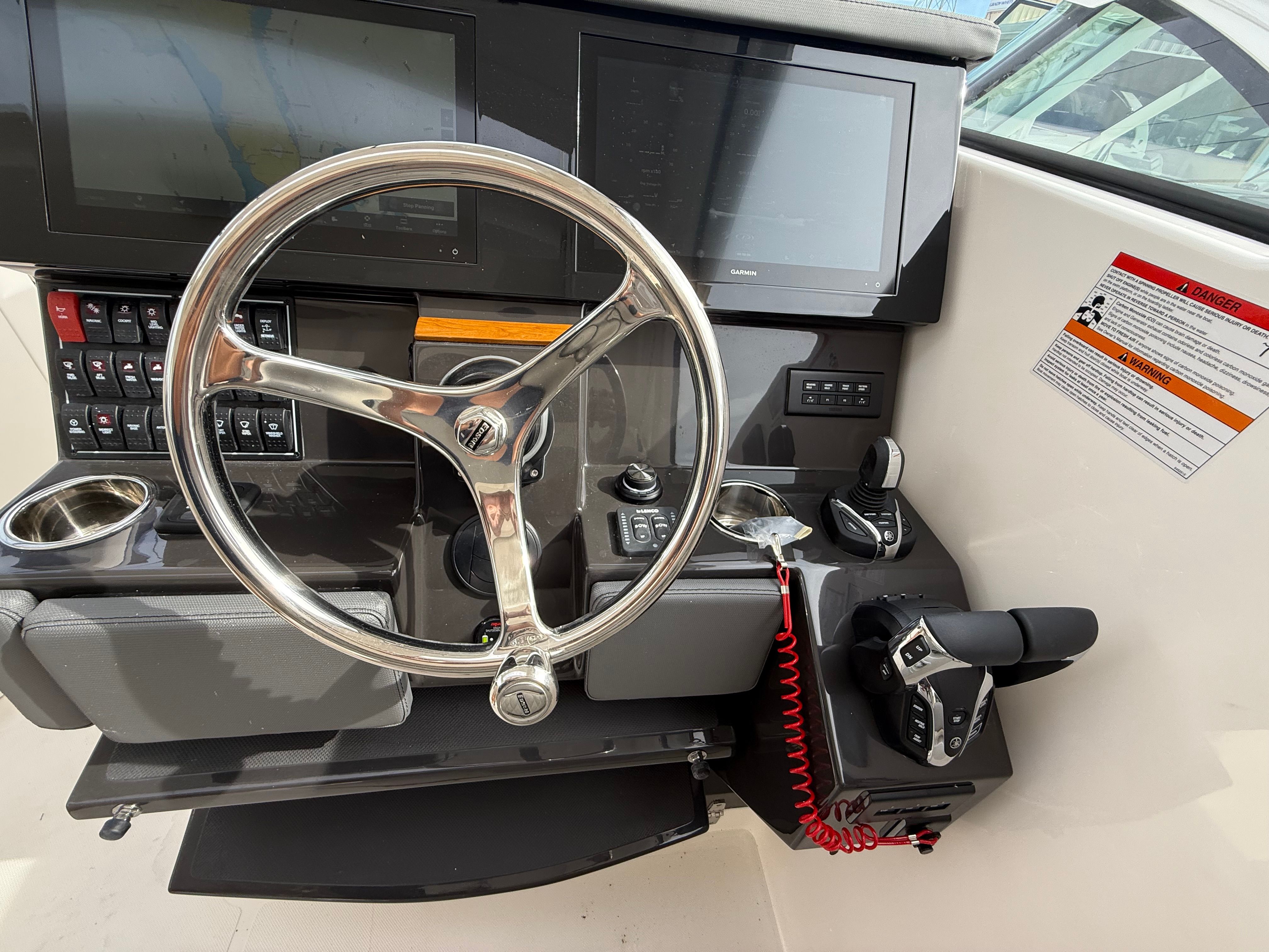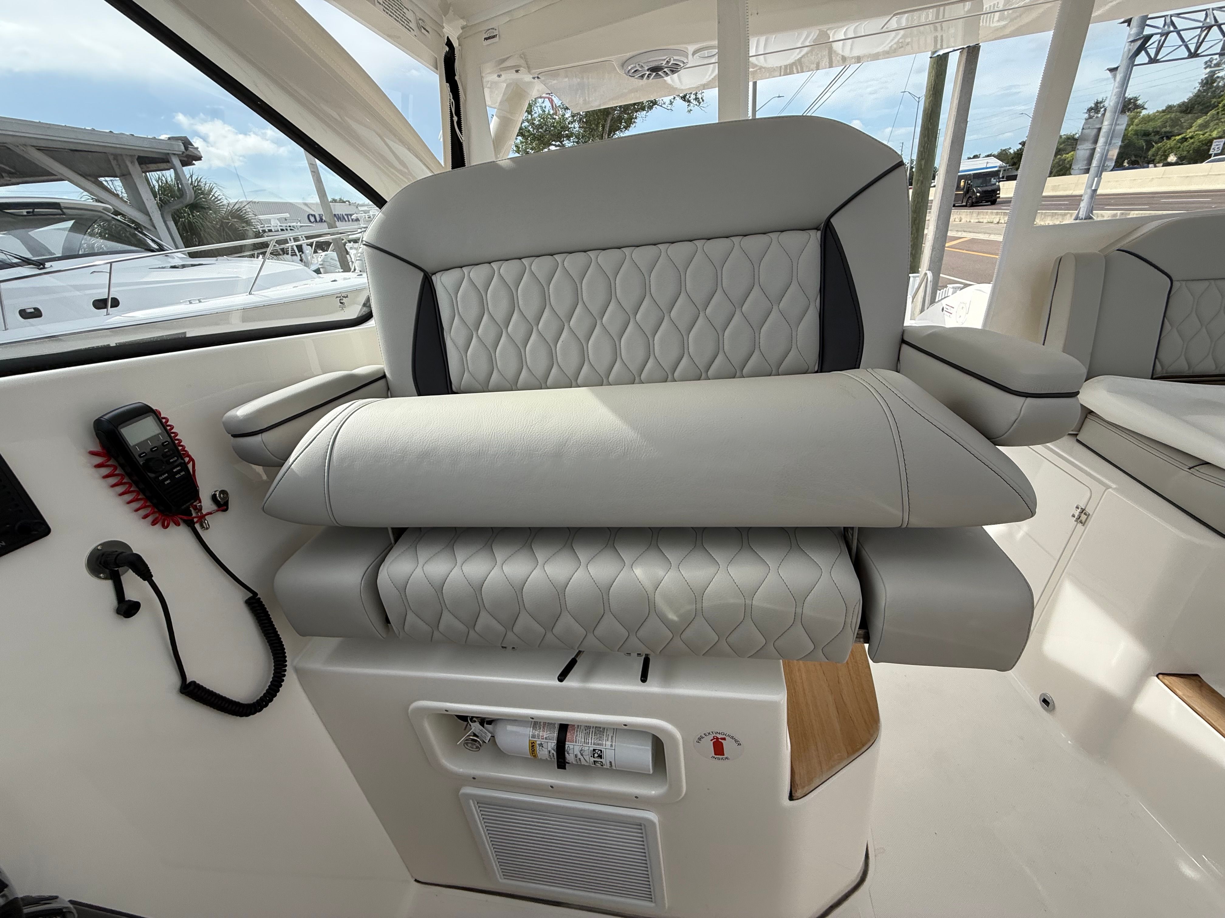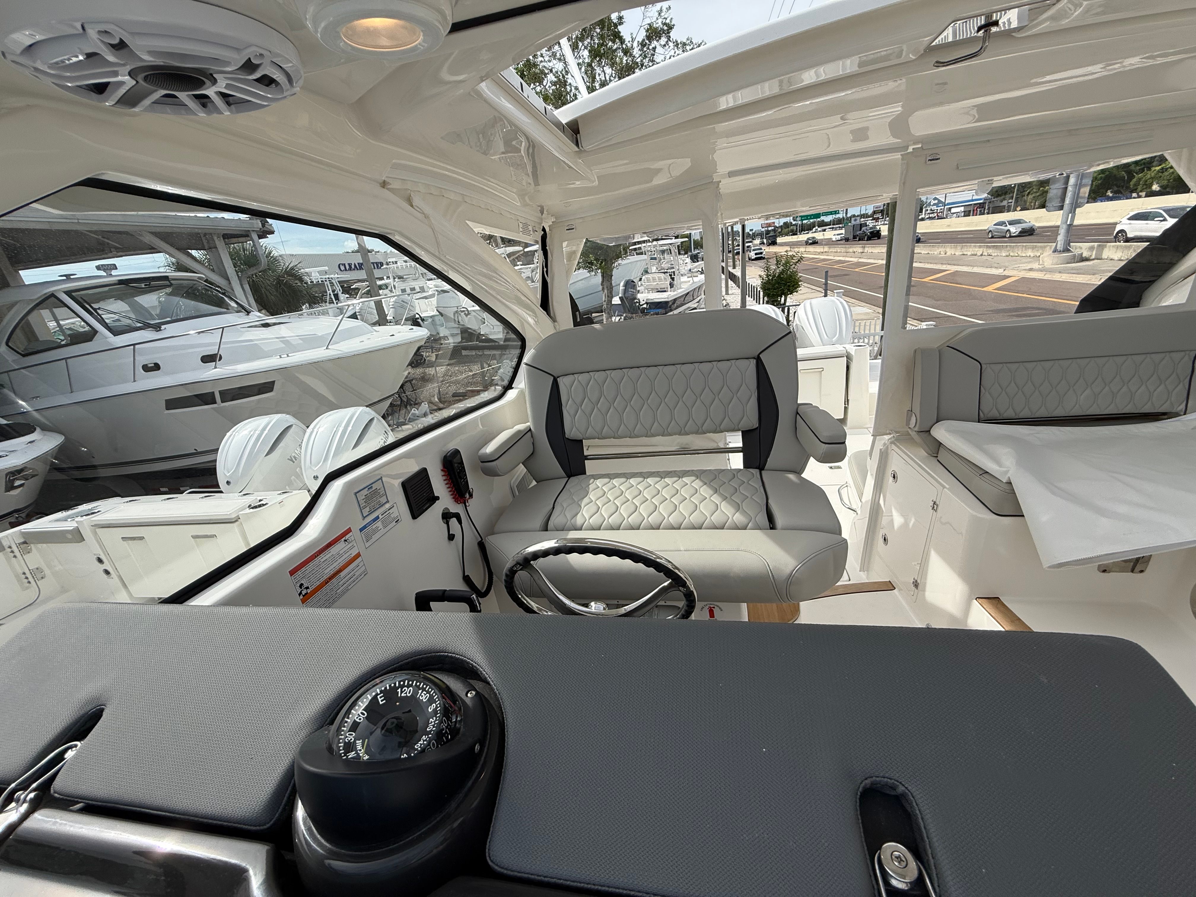 The Pursuit DC 365 is loaded with premium features designed to enhance your time on the water. The Fresh White hull with Black boot stripe and accent gives the boat a modern, elegant look, while the Carbon helm and footrest add a touch of sophistication to the command center. The interior, finished in Tranquil Sea, creates a serene atmosphere, perfect for unwinding after a day of adventure.Comfort is paramount, with a powerful 240V/60HZ 16,000 BTU air conditioning system in the cockpit, ensuring you and your guests stay cool even on the hottest days. Entertainment is elevated with an upgraded amp and speakers featuring zone control and Sirius, allowing you to set the perfect mood for any occasion. The forward poly table with sunpad filler and cushion provides a versatile space for dining, lounging, or sunbathing, while the bridgedeck teak table with storage adds a touch of luxury and practicality.Navigation and control are effortless thanks to the Garmin widescreen 16" display package, offering cutting-edge technology for chart plotting, fish finding, and system monitoring. Every feature is thoughtfully integrated to maximize convenience, safety, and enjoyment, making this Pursuit boat for sale a standout in its class.