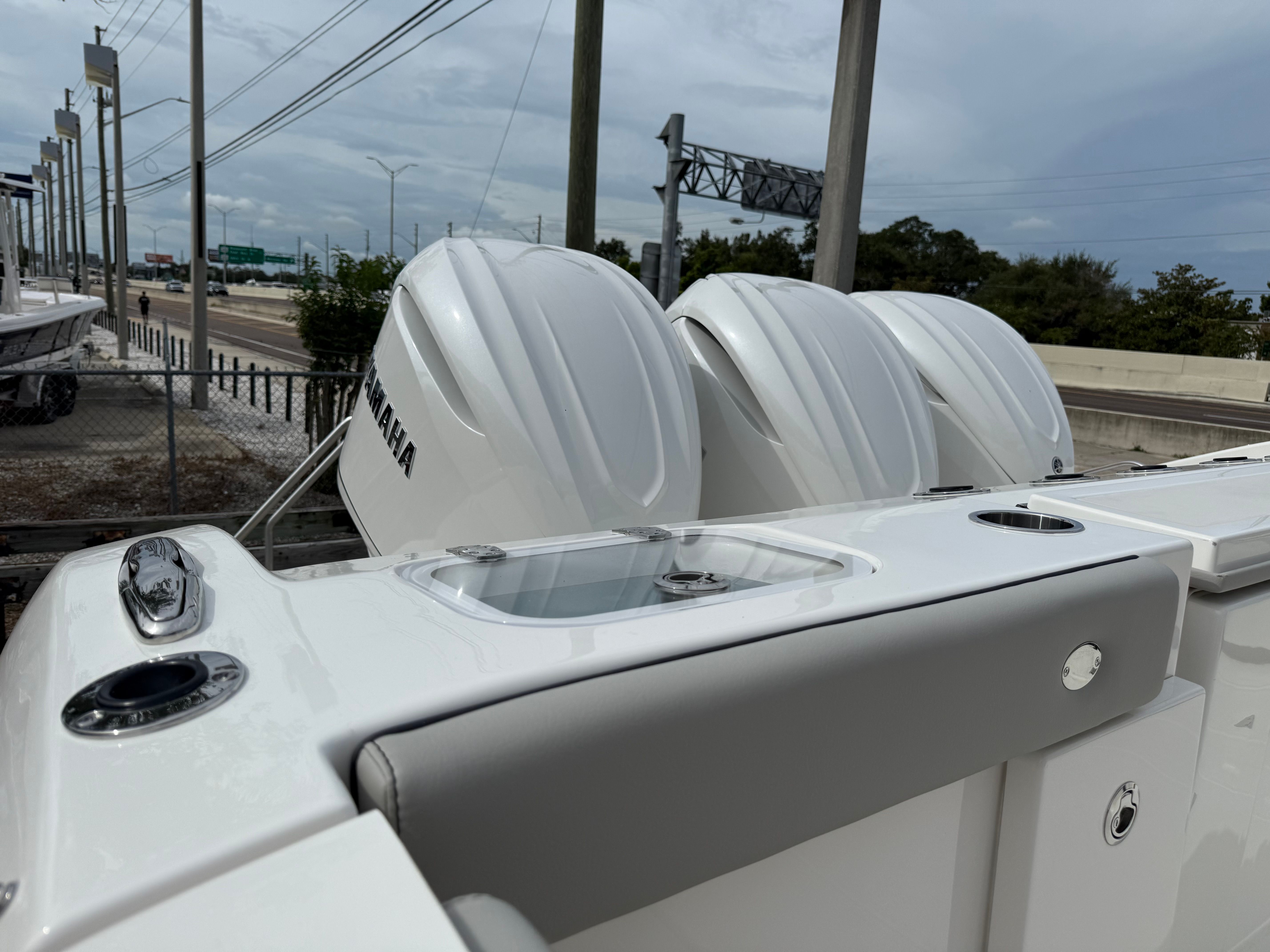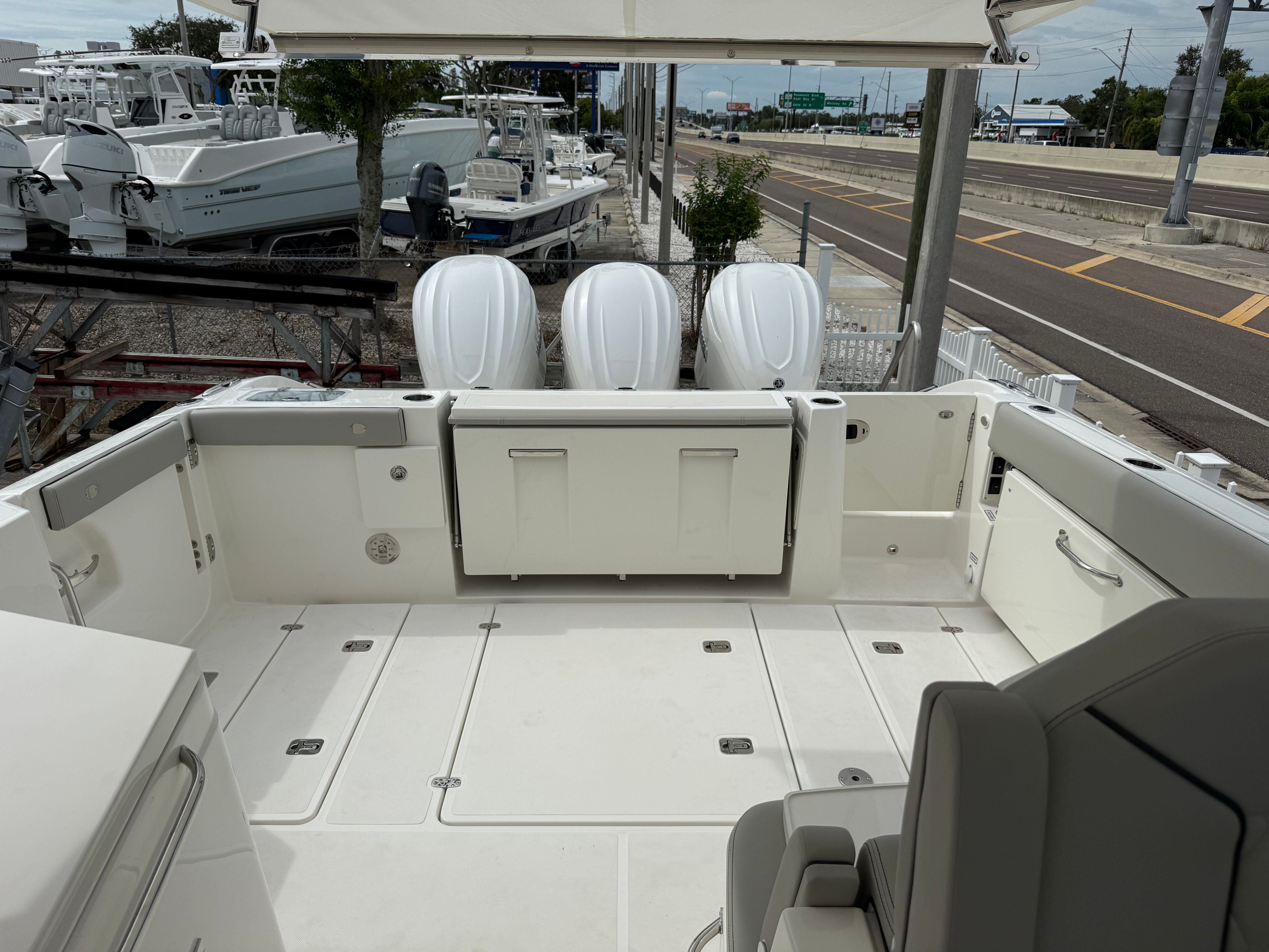 Powering the Pursuit DC 365 are three formidable Yamaha F350 engines, delivering a combined 1,050 horsepower. This triple-engine setup ensures exhilarating acceleration, smooth cruising, and reliable performance in various conditions. Whether you’re heading out for a day of fishing or planning a weekend getaway, the DC 365’s robust powertrain provides the confidence and capability to tackle open waters with ease. The advanced engineering behind the Yamaha F350 engines guarantees efficiency, durability, and low maintenance, making this Dual Console boat for sale a smart investment for those who value both power and peace of mind.