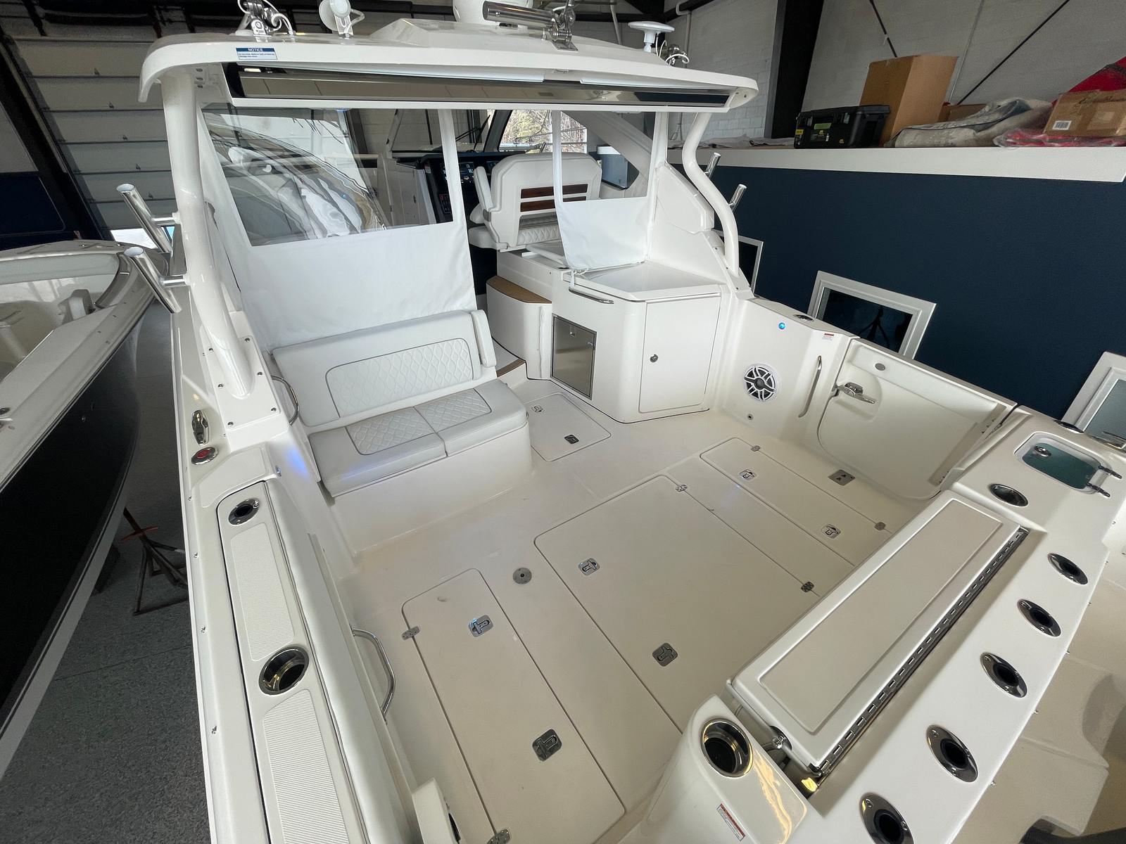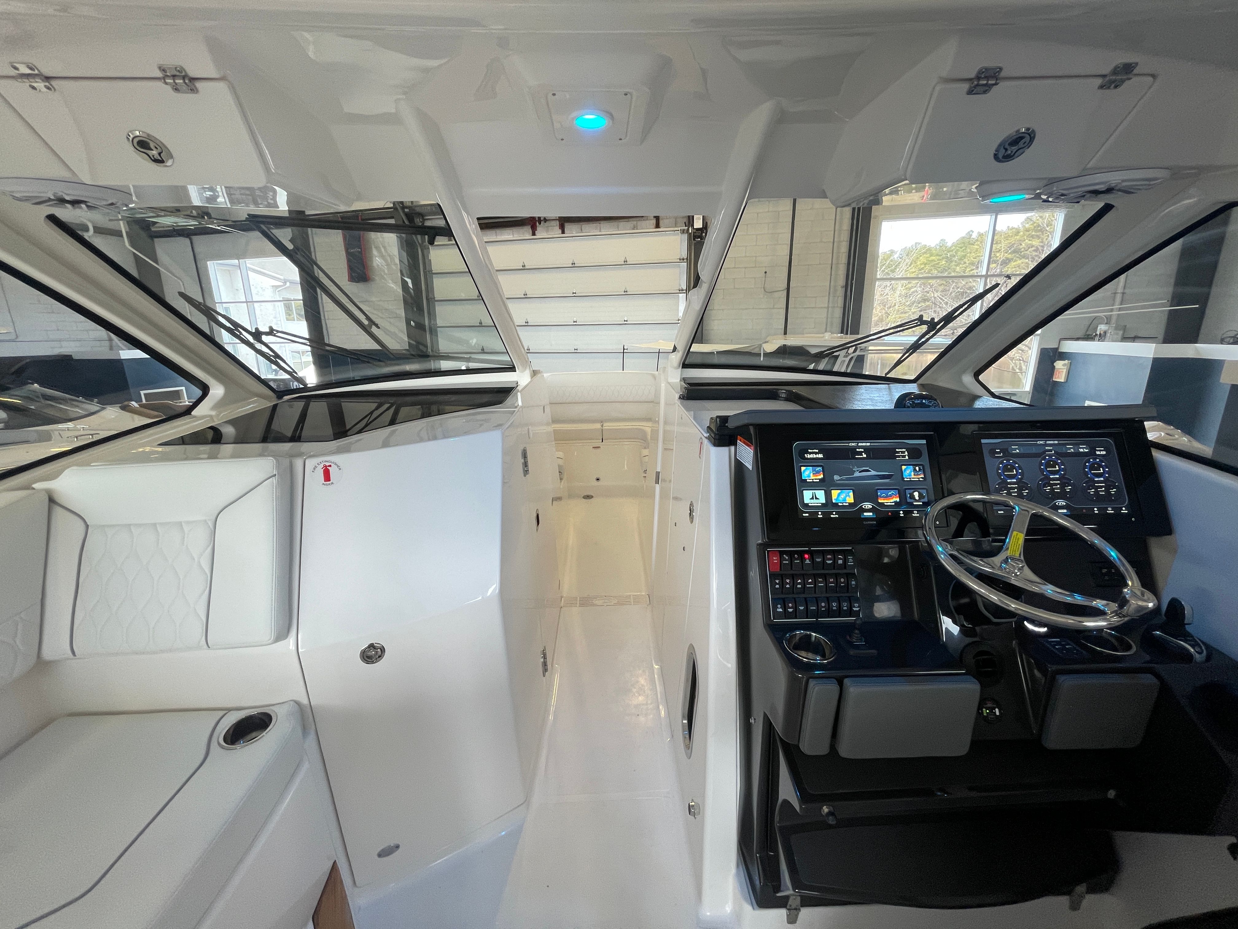 Practicality meets luxury in the Pursuit 365 DC. The boat’s generous length and smart layout provide ample storage for gear, water toys, and personal items, keeping your deck clutter-free and organized. Docking and maneuvering are simplified by the responsive triple-engine setup, allowing you to navigate marinas and tight spaces with confidence. The efficient design ensures you get the most out of every gallon of fuel, making longer trips more accessible and cost-effective.The air-conditioned cockpit extends your boating season, offering a cool retreat during summer and a cozy haven when the weather turns. The durable, easy-to-clean surfaces and protective covers help maintain the boat’s pristine appearance, reducing maintenance and preserving value over time. Whether you are planning a quick day trip or an extended adventure, the Pursuit 365 DC adapts to your needs, delivering both convenience and peace of mind.